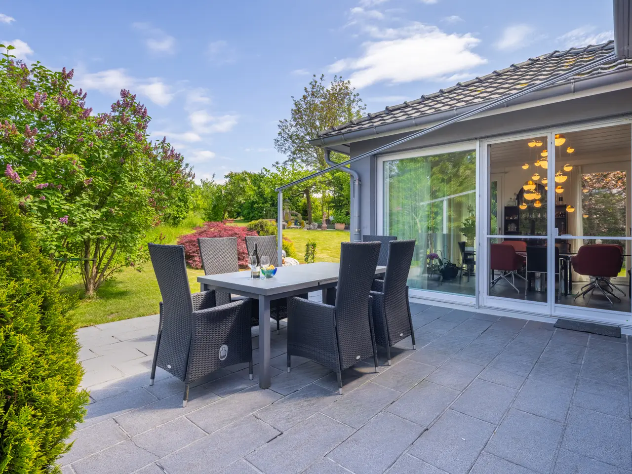 This detached house on the edge of Hochfelden’s agricultural zone combines space, home comforts and proximity to greenbelt in an appealing concept. With approx. 270 square metres of living area, 7.5 rooms and a well-configured layout, it offers plenty of room for families or couples with high expectations. The living and dining area with fireplace forms the inviting hub of the home. The open kitchen features granite surfaces as well as quality appliances and integrates seamlessly into the overall living concept. The master suite occupies the entire top floor and consists of a large bedroom, walk-in wardrobe and bathroom with whirlpool tub and shower. Three additional rooms and a capacious bathroom on the first floor provide ample space for family or guests. The garden is a true Eden with harmonious landscaping, outdoor jacuzzi, and a covered seating area. Part of the adjacent agricultural zone belongs to the property, affording an uplifting sense of openness. A highlight for enthusiasts is the garage, with space for around ten vehicles. The basement also houses a number of, well-sized ancillary rooms, including a heated hobby room. The property: - 7.5-room detached house in Hochfelden - Approx. 278 m² of living space - Approx. 280 m² of agricultural land as additional garden - Landscaped garden oasis with outdoor whirlpool and seating area - Garage for approx. 10 vehicles - Capacious utility rooms incl. heated hobby room