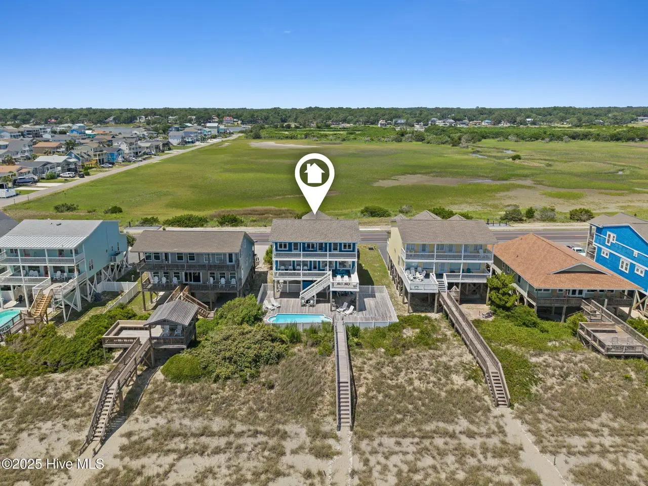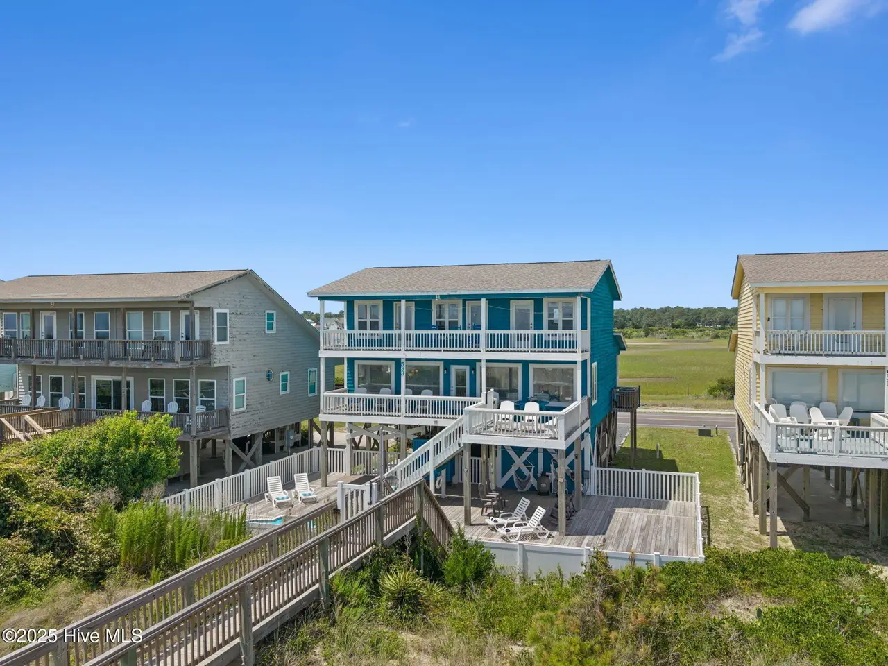 Exceptional Oceanfront Retreat with Expansive Pool Deck, Breathtaking Views & Prime Island Location Experience the ultimate in coastal living and investment opportunity with this incredible oceanfront beach house, perfectly situated in the heart of Holden Beach. Featuring 4 spacious bedrooms, 4.5 bathrooms, and amazing views of both the Atlantic Ocean and tranquil marshlands, this thoughtfully updated home offers a rare dual-waterview perspective that's increasingly hard to find. The centerpiece of the outdoor living space is a show-stopping oceanfront pool, framed by an expansive deck ideal for sunbathing, entertaining, or simply soaking in the sea breeze. Three covered decks offer multiple vantage points to enjoy sunrises over the ocean and sunsets across the marsh - an extraordinary backdrop for unforgettable coastal moments. A private dune walkover ensures direct beach access, while an enclosed outdoor shower, ground-level storage, and newly added guest parking enhance convenience. Inside, the desirable open-concept layout is flooded with natural light from picturesque windows that perfectly frame the ocean views. The updated kitchen features natural stone countertops with full-height backsplash, and flows seamlessly into the dining and living areas—perfect for gathering with friends and family. Two guest bedrooms with private bathrooms and a stylish powder room complete the main level. Upstairs, a spacious secondary living area offers flexible space for a fifth bedroom, office, or media room, along with two additional bedrooms and baths. The oceanfront primary suite is a serene sanctuary, boasting direct deck access to oceanfront deck and en suite bath. Recent upgrades include beach-ready flooring throughout, fresh interior and exterior paint, updated bathroom vanities and lighting, and enhanced guest parking. Ideally located just moments from local shops, restaurants, seafood markets, and a public boat launch, this home combines comfort, lifestyle, and income potential in one of Holden Beach's most desirable settings. Whether you're seeking a high-performing investment property or a refined personal retreat, this oceanfront gem offers the best of both worlds. Schedule your private tour today.