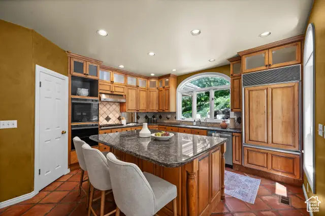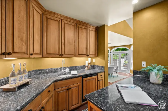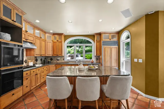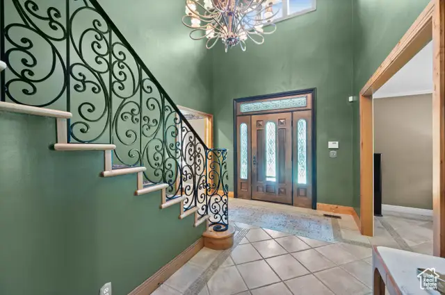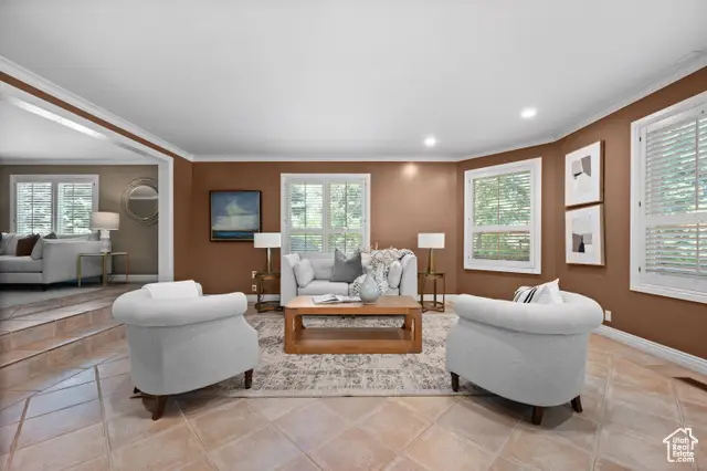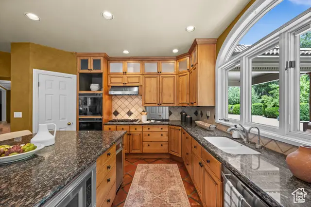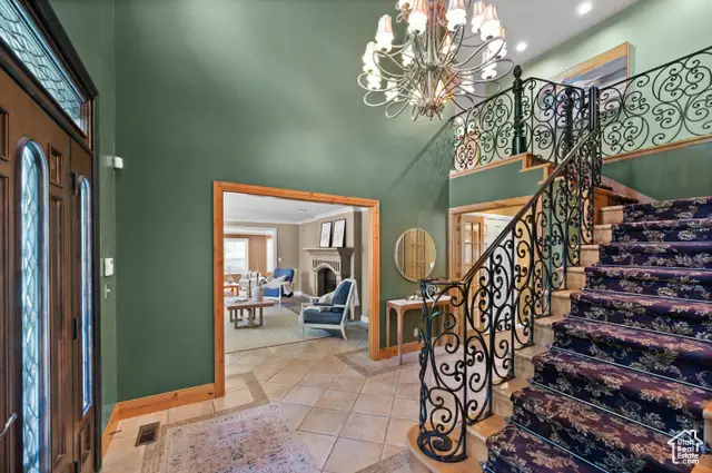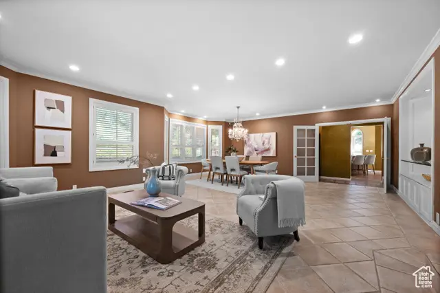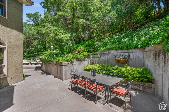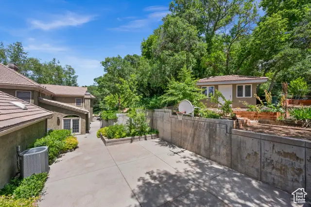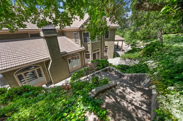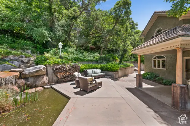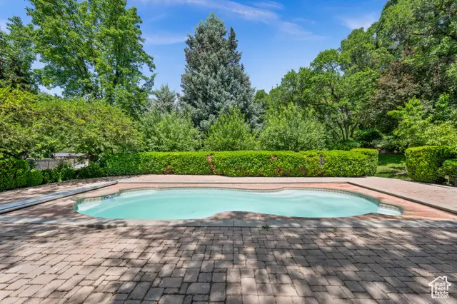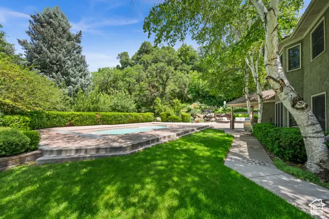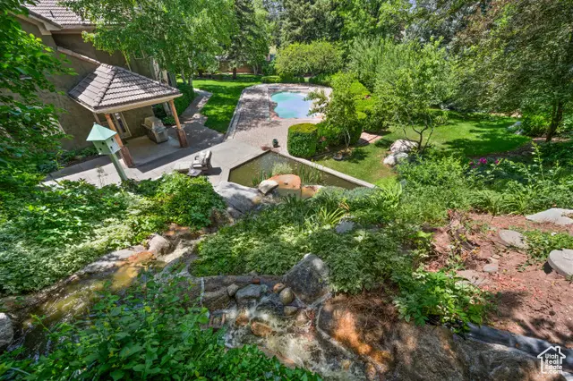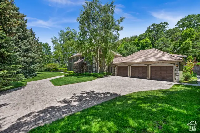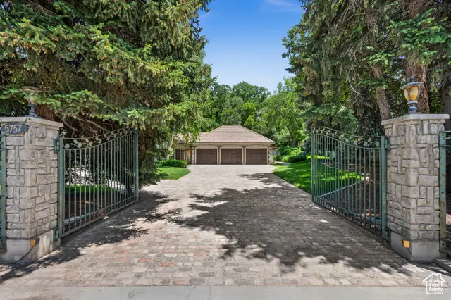 THE HOLLADAY HOUSE Exceptional European-style estate nestled in the heart of Holladay on a gated and secluded 1-acre lot. With over 5,600 square feet all above grade, this stunning residence offers 5 spacious bedrooms, 5 bathrooms, and unparalleled indoor and outdoor living spaces. Step into the grand 2-story layout where charm meets functionality. The main level spans over 3,000 square feet, showcasing a chef's kitchen with granite countertops, gas range, double wall ovens, walk-in pantry, and built-in appliances including a compactor. The spacious primary suite, located on the second floor, includes a sitting area with a cozy fireplace, vaulted ceilings, jetted tub, separate shower, and walk-in closet. The home is equipped with modern comforts like central air (electric), forced air gas heating, instant hot water, central vacuum, and built-in speakers on the main level and in the primary suite. Additional features include plantation shutters, wet bar, alarm systems (fire and security), and French doors leading to lush outdoor spaces. The landscaping is a showstopper, with fruit trees, vegetable gardens, pines, mature trees, scrub oak, terraced yard, and a waterfall and pond feature. Entertain year-round in the heated in-ground fiberglass/vinyl saltwater pool with an automatic cover and adjacent covered patio. The property also includes a garden/potting cottage, and a 3-car attached garage with overhead storage and ample guest parking. Flooring throughout includes carpet, marble, and tile. The basement is a crawl space-no unfinished areas, meaning all square footage is livable and finished above grade. Exterior features include stucco siding, bay windows, double-pane windows, and exterior lighting. Inclusions: Two sets washers & dryers, refrigerator, microwave, gas dryer hookup, ceiling fans, humidifier, and bar refrigerator. Also Included is patio furniture with a sofa, two chairs and a large dining table with six chairs. Enjoy the theatre area with an adjacent bar area. Included is seating for four. Location perks: Enjoy peace and privacy while being just minutes from Holladay Village, top-rated schools, ski resorts, shopping, dining, and freeway access. This rare Holladay gem offers the perfect blend of old-world charm and modern luxury. A must-see for the discerning buyer. You'll love the mountain views too!
