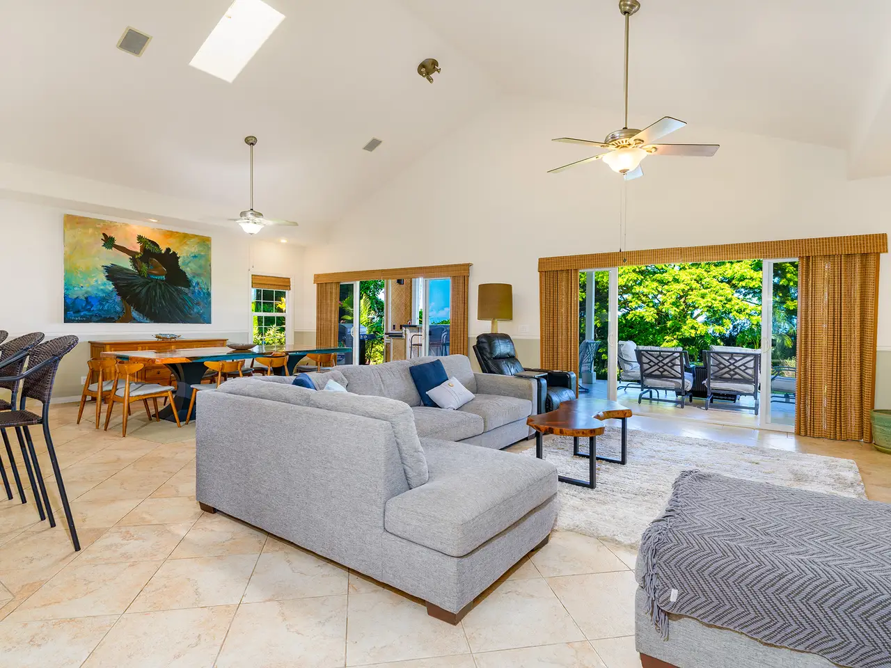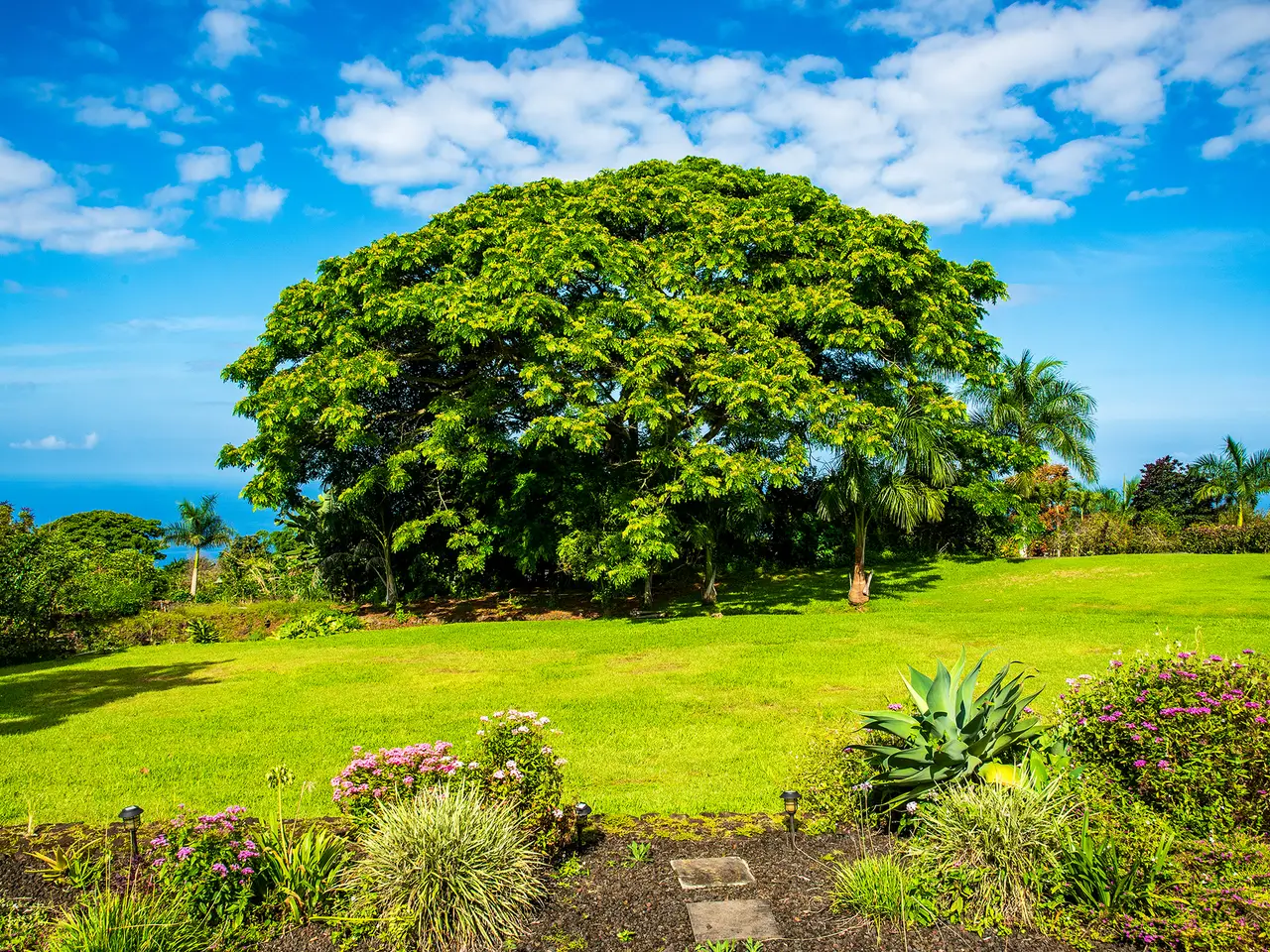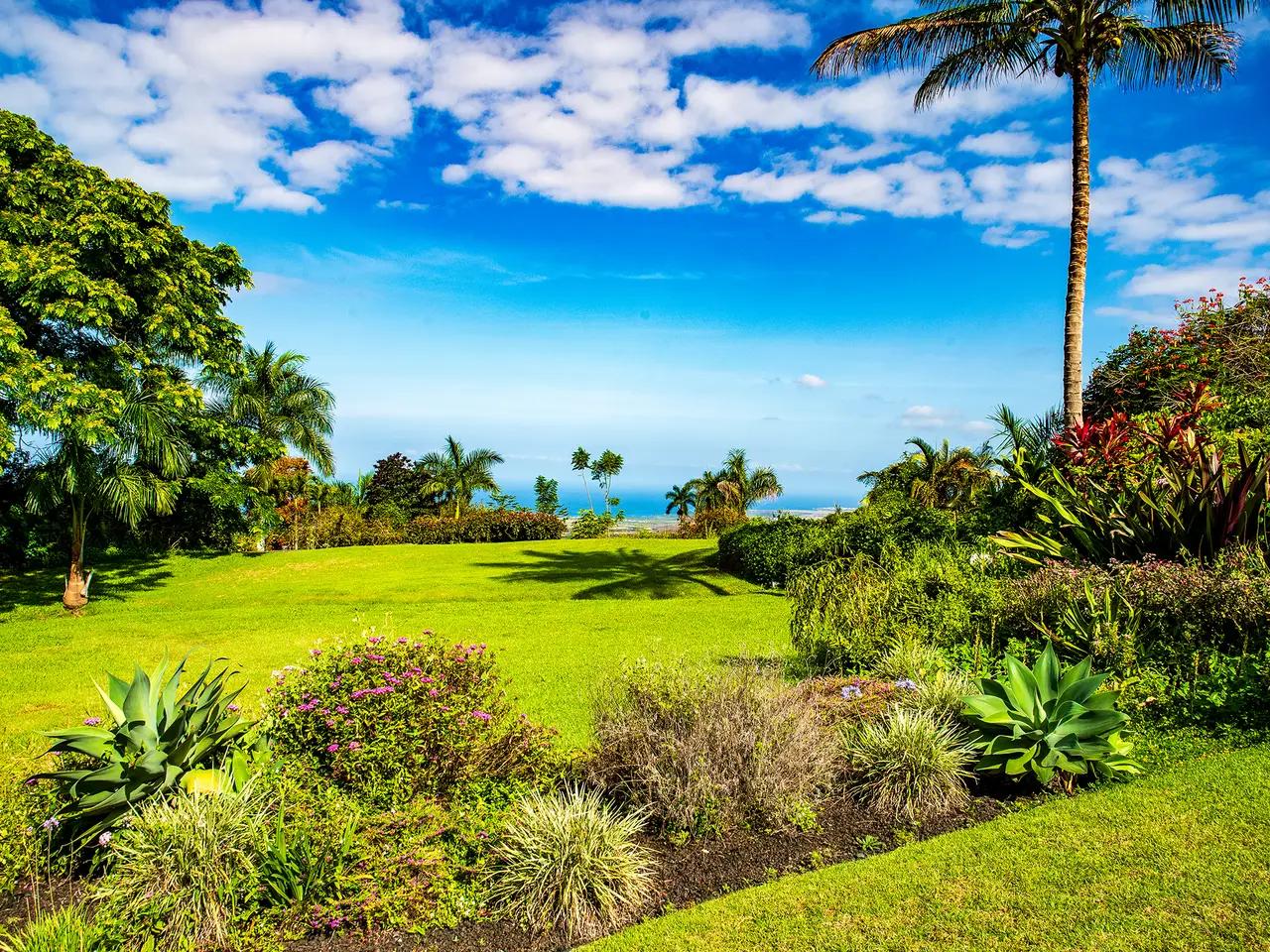 Serene Custom home on acreage with ocean views, parklike grounds, just 1 mile to Holualoa Village! This property has it all, custom home with two suites, huge covered lanai, detached garage with two extra rooms, for whatever your needs are! Located in a very small four-home subdivision, NO HOA dues, less than a mile to Holualoa Village and 10 minutes to downtown Kailua-Kona! Lush expansive grounds with Tropical flora, avocados, citrus, cacao, bananas, you name it, it will grow, super private and very quiet! Seller wants to help you buy and he giving a Buyer Concession of $25,000 at closing!