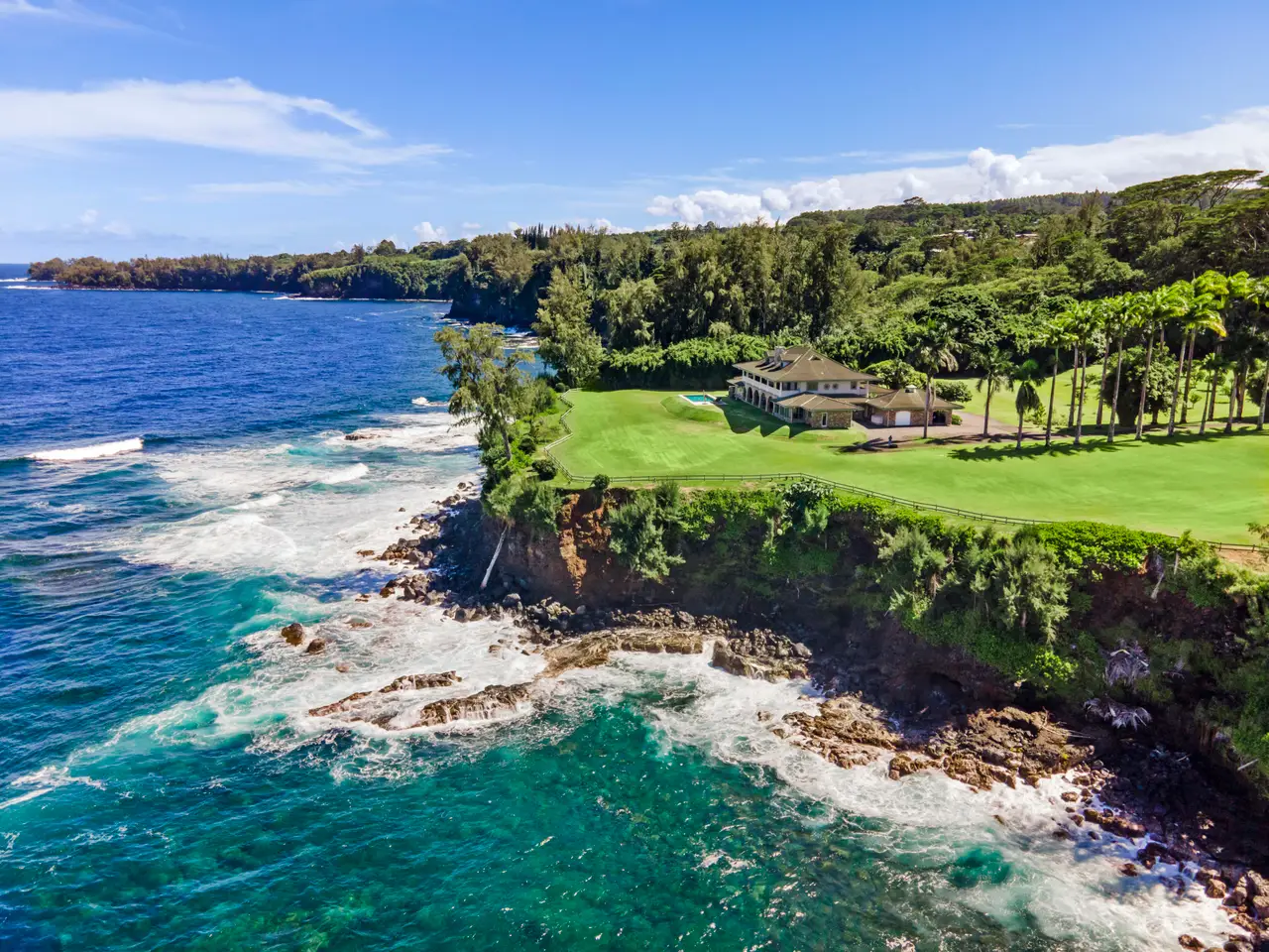 For the discriminating buyer who seeks exclusivity, luxury, privacy, and security, this 51+acre gated, fully fenced estate, with nearly a mile of oceanfront, offers a singular opportunity on the Hamakua Coast on the Big Island of Hawaii. From the moment of entry through a private gate it becomes clear that something special is about to unfold. Through Norfolk Pines transitioning to majestic Royal Palms, past 10 acres of Macadamia Nut Trees, Citrus and Avocado orchards, and acres upon acres of manicured lawns, this magnificent estate unfolds as a foreground to a mile of shoreline along the mighty Pacific. Serviced by local utilities, this estate also boasts a deep water well and a Photovoltaic array, both capable of meeting all its water and electrical needs. The residence, with 9000+ square feet of living space, includes five bedrooms, five full and 2 half baths, and a one bedroom, one bath Ohana unit. An elevator and grand staircase service the second-floor primary bedroom suite, which comprises 2800 square feet. The suite is surrounded by a covered lanai and offers never ending views of the shoreline and ocean below. The gourmet kitchen, with the latest in luxury appliances, as well as dining facilities and public living spaces, are an entertainer’s dream. The equipment barn and all the machinery and equipment necessary to care for the property are included.Proof of funds is required at least 5 days prior to showing.