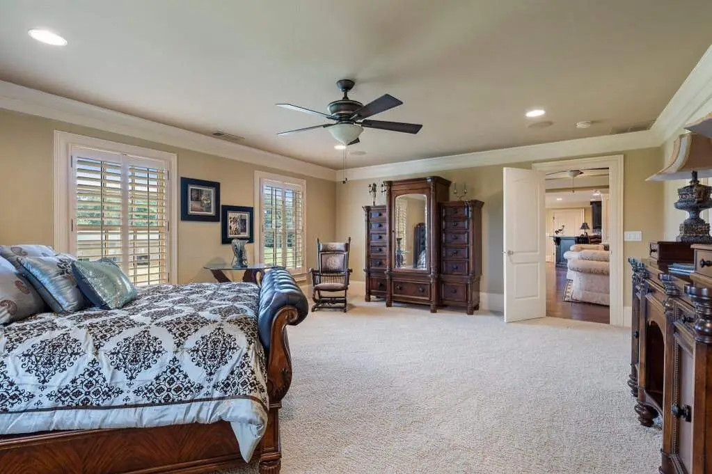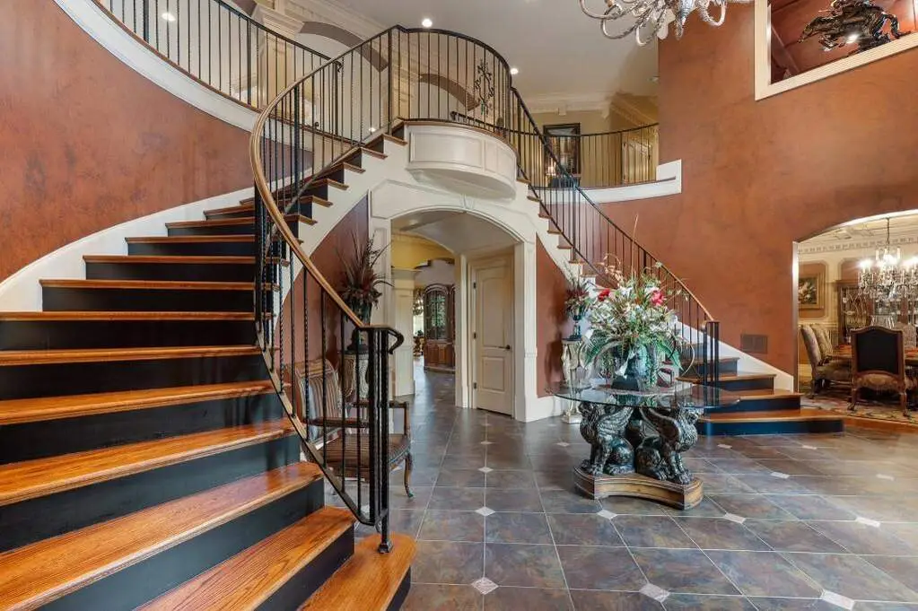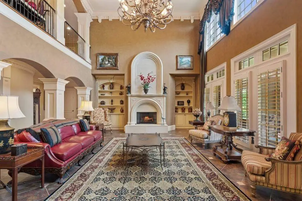 A magnificent estate where timeless architecture meets exceptional craftsmanship. Set on lush, rolling acres, this brick and stone masterpiece offers both grand entertaining spaces and serene outdoor retreats. A courtyard-style entry with a central fountain and dual staircases sets a dramatic tone. Inside, a soaring foyer with mirrored staircases leads to a formal living room featuring a stone fireplace and built-in bookcases, with direct access to a tranquil screened-in porch. The formal dining room impresses with coffered ceilings and intricate molding, ideal for elegant dinners. A hidden prep kitchen with double ovens, ice maker, and fridge adds convenience. The chef's kitchen boasts an oversized stone island with prep sink, 8-burner cooktop, double ovens, and wine storage, flowing into a sunny breakfast room and informal living area with a cozy fireplace.The main-level primary suite is a spacious, private retreat with a fireplace, morning bar, sitting area, and oversized windows. The spa-like bath features double vanities, a soaking tub, and a luxurious wraparound shower. Upstairs are four guest bedrooms with en-suite baths, connected by a dramatic open bridge hallway. A large storage closet and half bath add function. A stunning library-style study, adorned with rich wood paneling and custom murals, offers a refined escape. The terrace level is perfect for entertaining, with exposed beams, a cozy living room with fireplace, full bar and kitchenette, and lounge area with outdoor access. A half bath with mahogany paneling, large game room, and custom Georgia Bulldogs-themed home theater enhance the experience. A spacious gym and second half bath complete the level. Outside, a resort-style pool and hot tub create the ultimate retreat. The cabana features two grills, a microwave, counter space, and a fireplace. A koi pond adds tranquility. The carriage house sits above an oversized garage with space for large vehicles or a car collection. It offers a full kitchen, living and dining areas, and two private bedrooms with full baths-ideal for guests. Surrounding the home, manicured gardens and mature trees enhance the setting. A charming barn adds versatility, perfect for storage or a workshop, blending seamlessly into the estate's classic aesthetic.