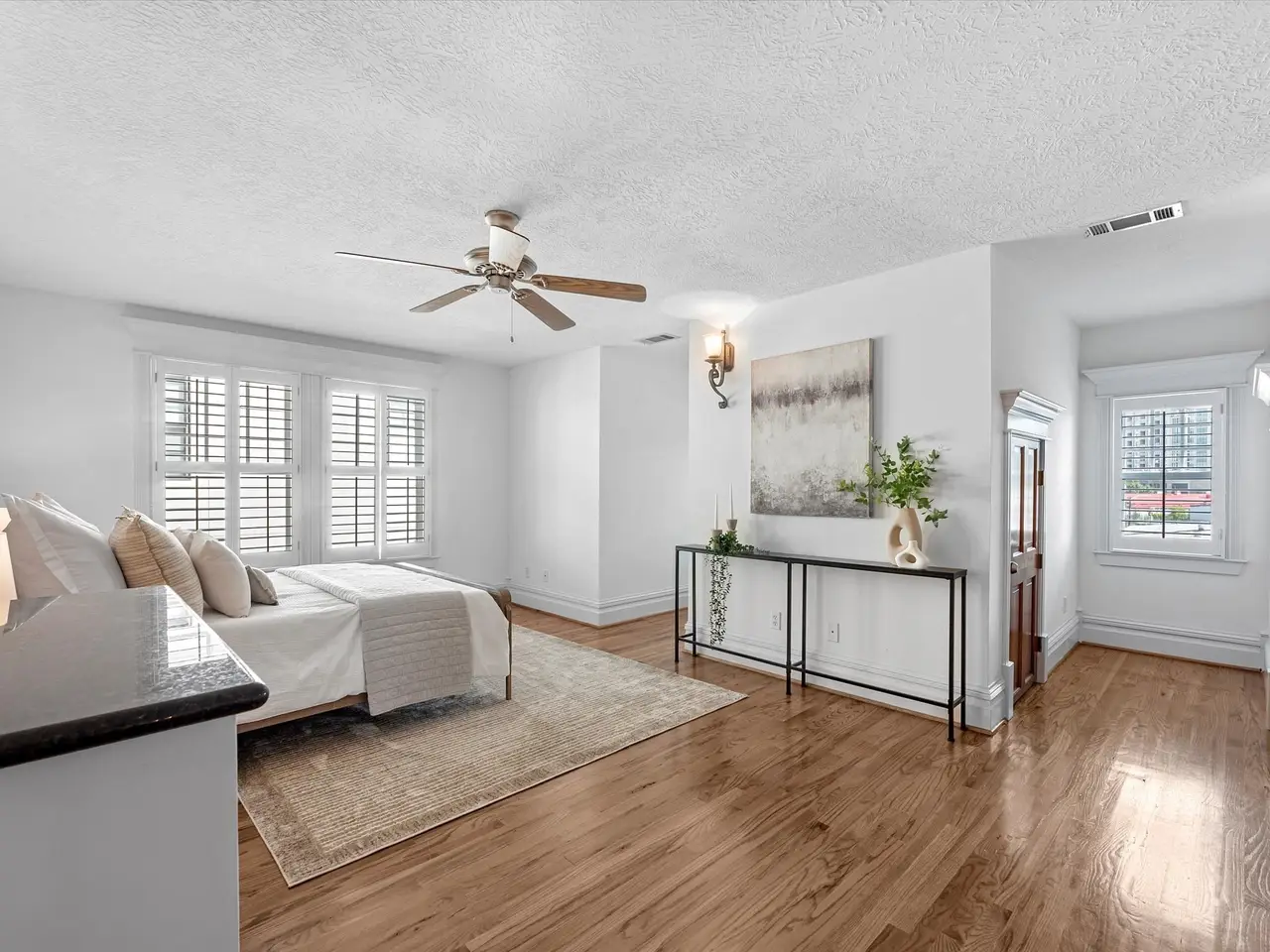 Architect-designed 4 Br home w/ rare private GARAGE APT. & coveted WALKABILITY to Memorial Park. The 3,915 sf home is complemented by a 550 sf 1Br / 1Bath garage apt. w/ full kitchen, private entrance, & off-street parking - versatility for rental income, m-i-l suite, or additional office. Main house greets with IMPORTED Italian Mosaic tile entry, custom millwork & HARDWOODS throughout. Marvin-brand windows provide superior sound & temperature control. Soaring-ceiling primary suite with granite fireplace & large his-and-hers closets. 3rd Fl.- OVERSIZED 4th bedroom brings flexibility for home gym or game room. Enjoy 1,000+ sf of fenced yard & patio, pet-ready with doggy door, kept comfortable by automatic mosquito misting system. Gated parking accommodates 3+ vehicles w/ add 3 off-street spaces in circular drive. Back yard is pre-wired and pre-plumbed for a pool. New ROOF (2022), New Marvin WINDOWS (2024), Mosquito MIST system (2022). Zoned to fantastic SCHOOLS in a great community.