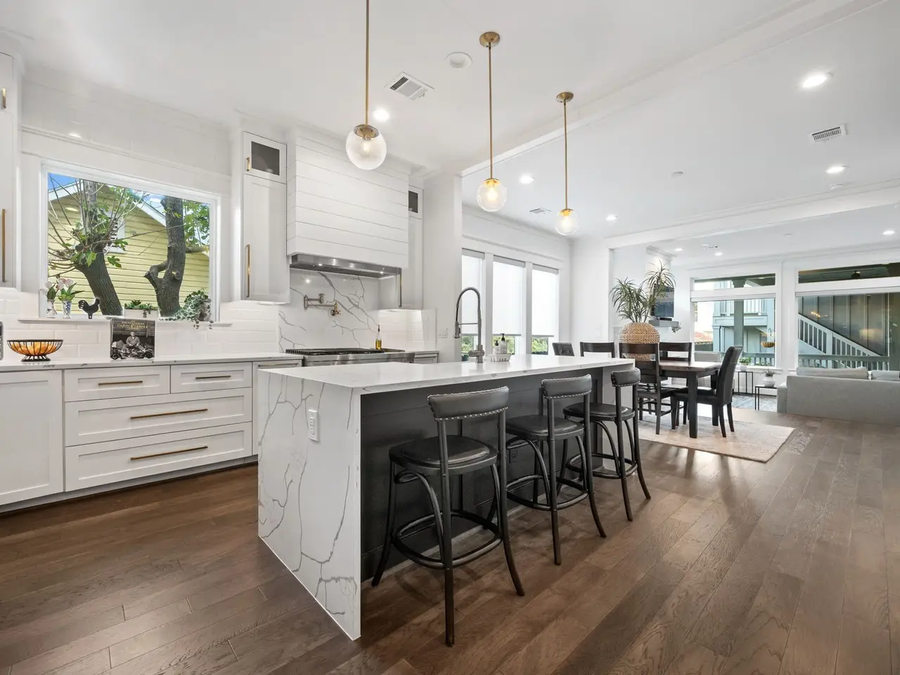 Located in the heart of the Heights, this beautifully crafted recent construction home blends modern elegance w/thoughtful functionality. Soaring ceilings, abundant natural light, & a spacious open floor plan showcase designer finishes throughtout-from custom cabinetry & hardwood flrs to sleek fixtures & carefully curated selections.The gourmet kitchen is a showpiece w/high-end appliances, an oversized island, & seamless flow into the dining & living areas,wonderful for entertaining. The primary suite offers a serene retreat w/a spa-like bath & generous walk-in closet. An attached guest suite/second primary bdrm provides incredible flexibility, ideal for multigenerational living, visiting guests, or a second home office. Step outside to a beautifully landscaped yard & public patio, creating an inviting outdoor escape.With close proximity to acclaimed Heights dining, trails, & boutiques, this home offers refined living in one of Houston's most desirable neighborhoods. All info per seller