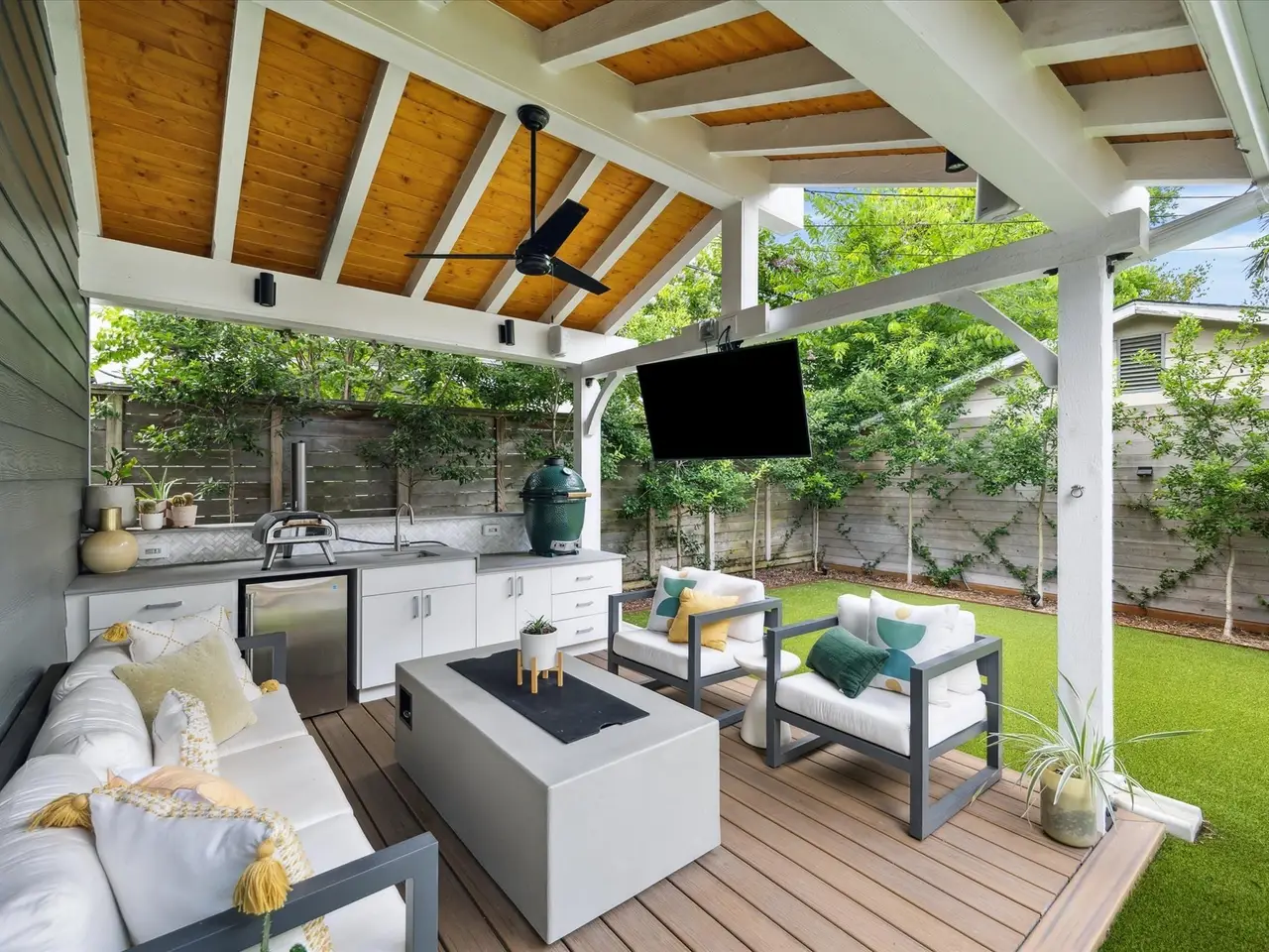 Beautifully renovated between 2021 and 2025, this Boulevard Oaks home has it all! In addition to the 3 bedrooms and 2 ½ bath, there is a playroom and two work from home office/studies and a mud room. The outdoor summer kitchen creates another entertaining room! New roof, garage/outdoor kitchen, backyard turf and trees, HVAC unit, smart thermostats and retro foam insulation was added in 2023! The primary bathroom was updated in 2025. The kitchen, west fence and gates, new main water line and a water heater were updated in 2022. In 2021 the wood floors were refinished, exterior and interior painting, pantry added, can lighting was changed to LED's and most of the lighting fixtures were changed. In 2024 a mosquito system was added. The 2-car garage was newly built in 2023 and the foundation was constructed so that an apartment could be finished out over the garage. All per Seller