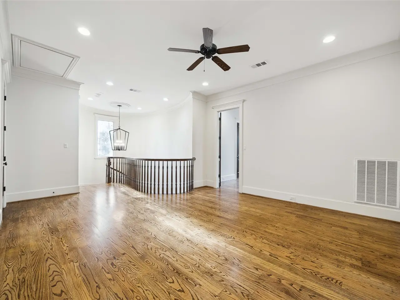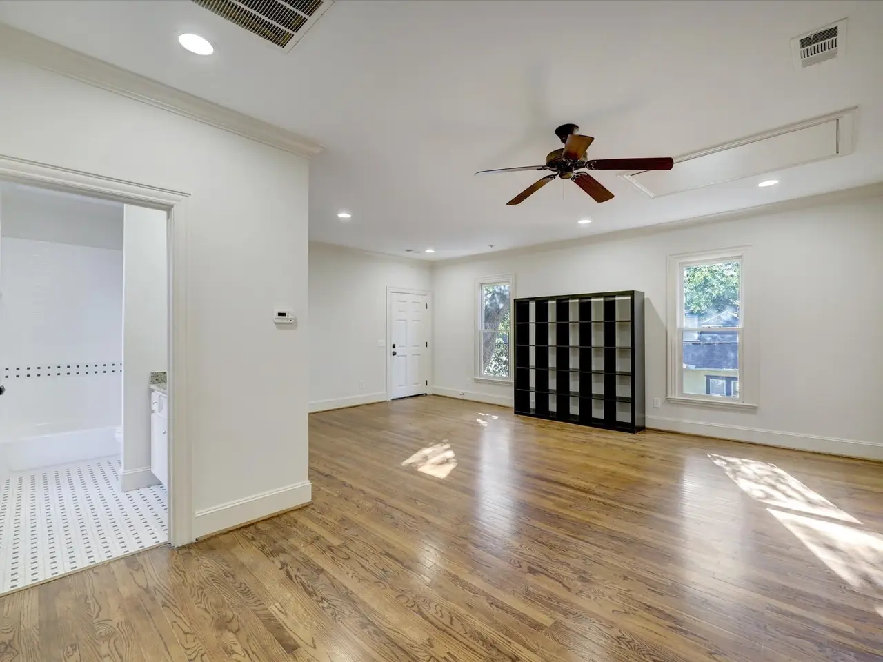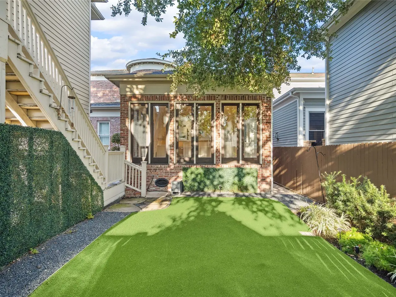 Stunning traditional brick home in a prime Houston Heights location combines timeless architecture with sophisticated updates. The gorgeous exterior features classic brick with crisp white accents and inviting porches framed by mature landscaping. Inside, discover exceptional craftsmanship with hardwoods, crown molding, and designer finishes. The formal living room showcases a fireplace flanked by custom built-ins, while the gourmet kitchen features premium appliances, quartz counters, and center island perfect for entertaining. The open kitchen/family layout creates an ideal flow for modern living. The luxurious primary offers courtyard access, well-appointed bathroom, and generous closet. A graceful, curved staircase leads to the 2nd floor featuring a spacious game room and three great bedrooms! Outdoor living spaces include a beautiful brick courtyard and low-maintenance turf yard. Garage apartment with wood floors and full bath. This pristine residence offers the perfect blend of Southern charm and modern comfort.