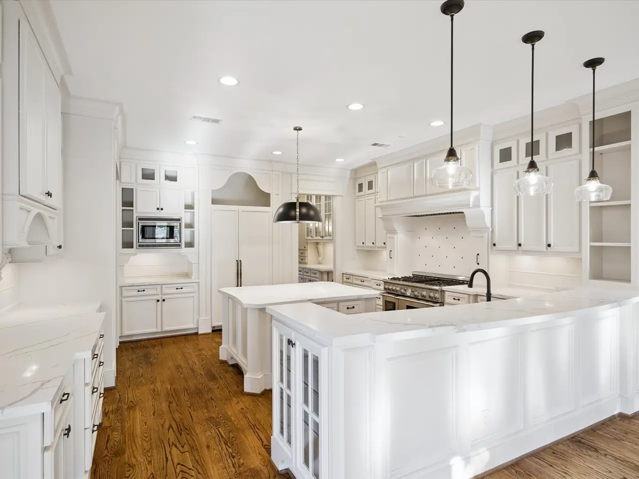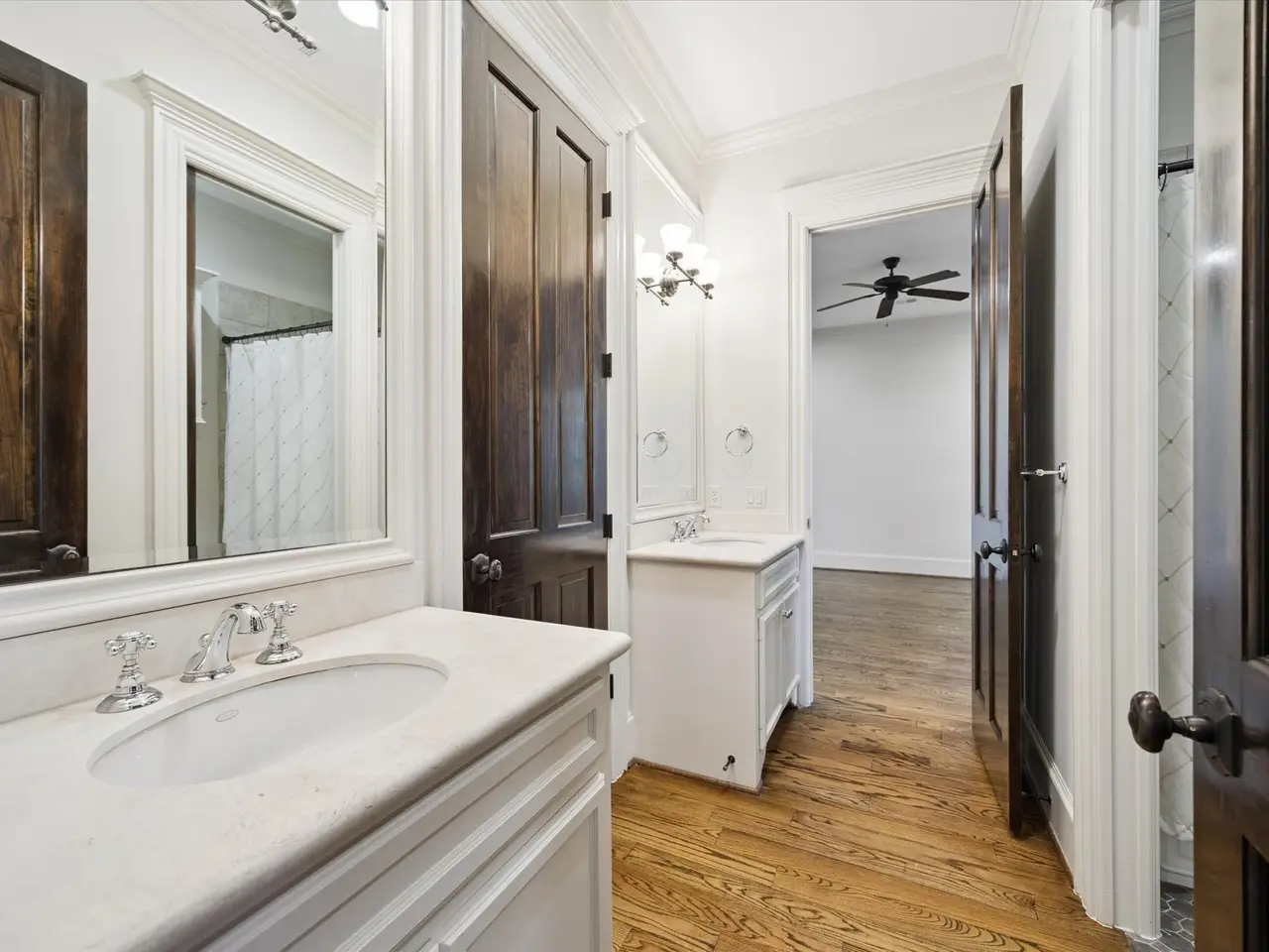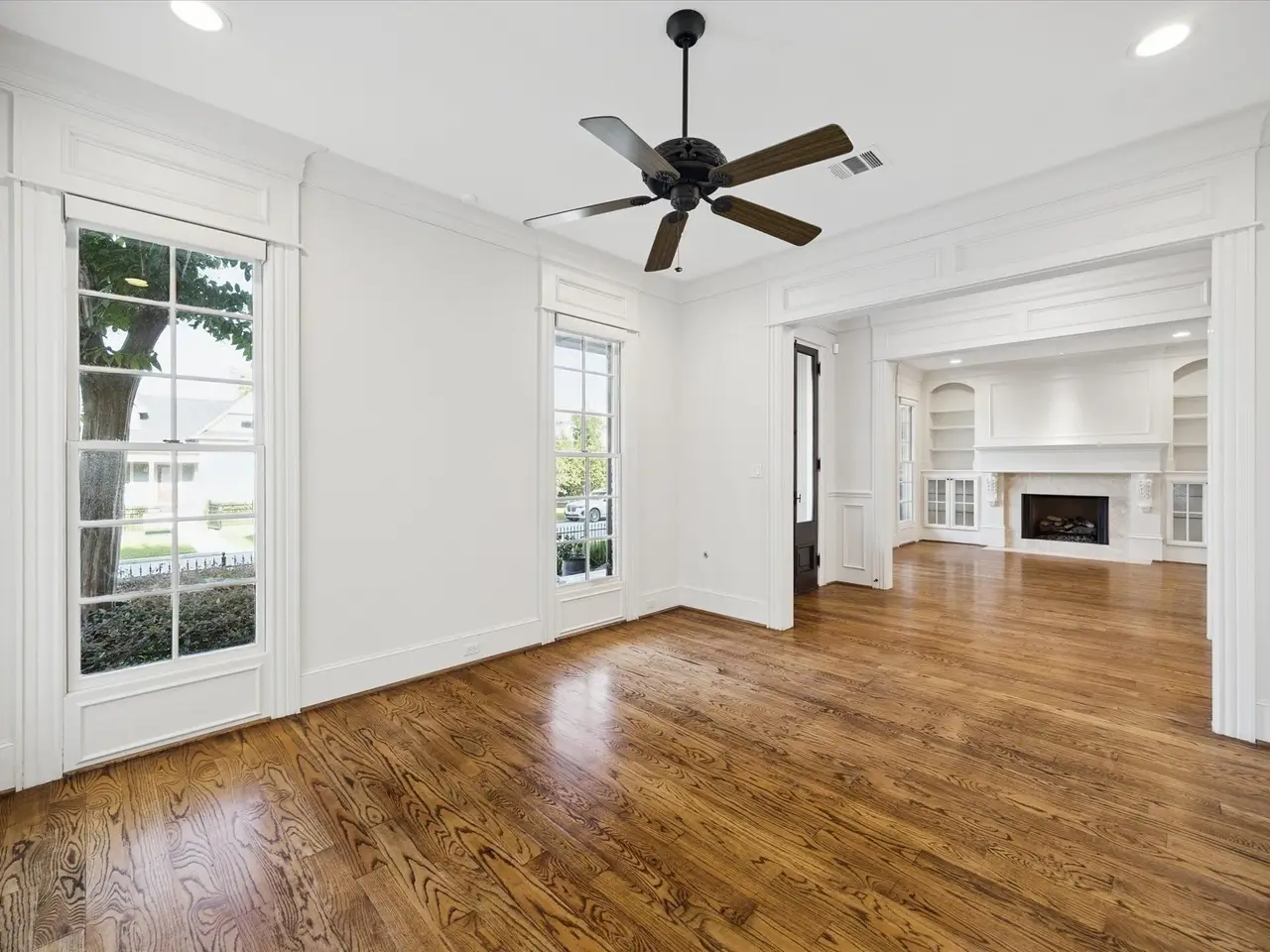 Stunning traditional brick home in a prime Houston Heights location combines timeless architecture with sophisticated updates. The gorgeous exterior features classic brick with crisp white accents and inviting porches framed by mature landscaping. Inside, discover exceptional craftsmanship with hardwoods, crown molding, and designer finishes. The formal living room showcases a fireplace flanked by custom built-ins, while the gourmet kitchen features premium appliances, quartz counters, and center island perfect for entertaining. The open kitchen/family layout creates an ideal flow for modern living. The luxurious primary offers courtyard access, well-appointed bathroom, and generous closet. A graceful, curved staircase leads to the 2nd floor featuring a spacious game room and three great bedrooms! Outdoor living spaces include a beautiful brick courtyard and low-maintenance turf yard. Garage apartment with wood floors and full bath. This pristine residence offers the perfect blend of Southern charm and modern comfort.