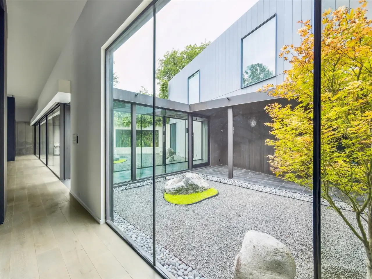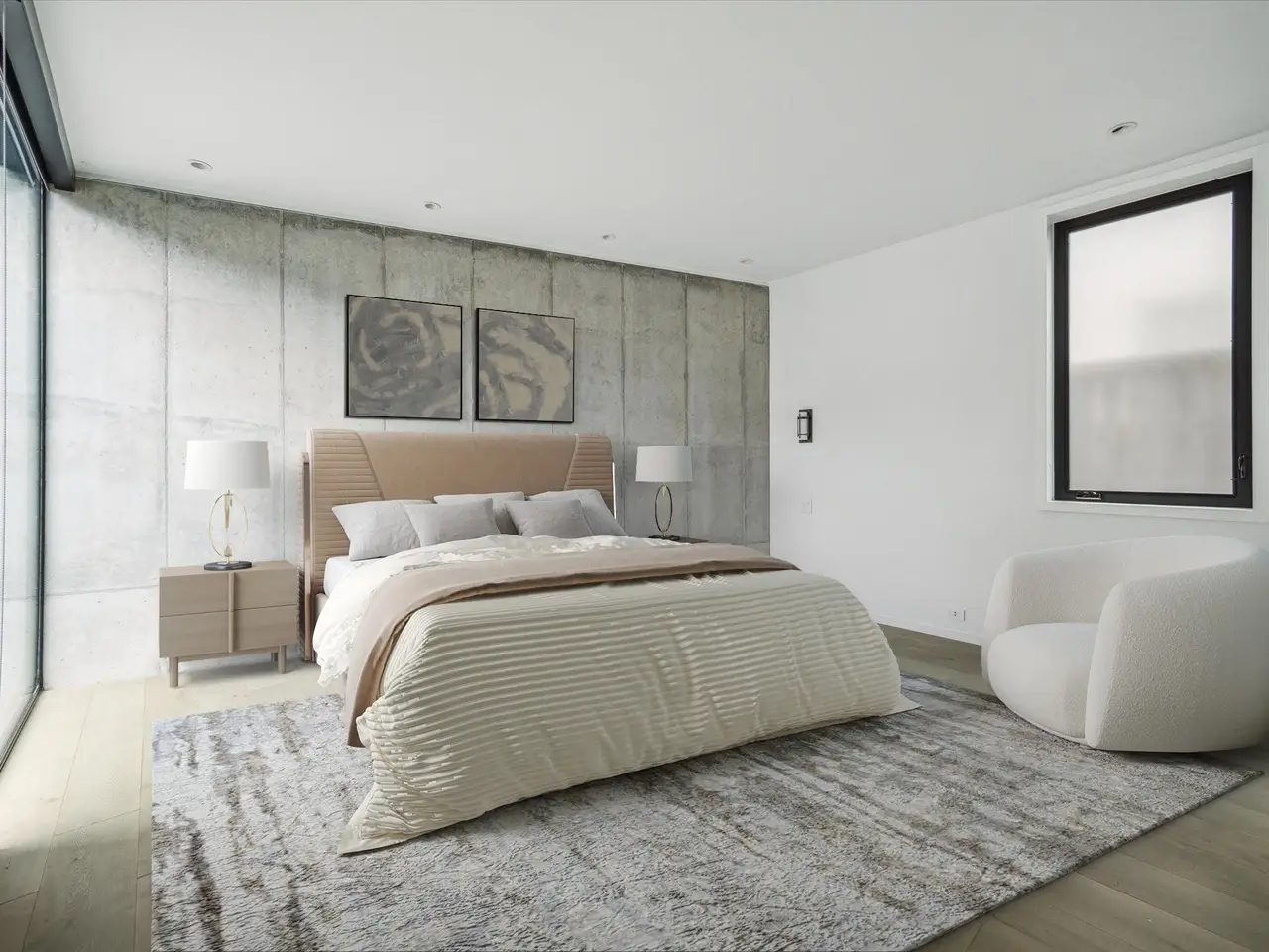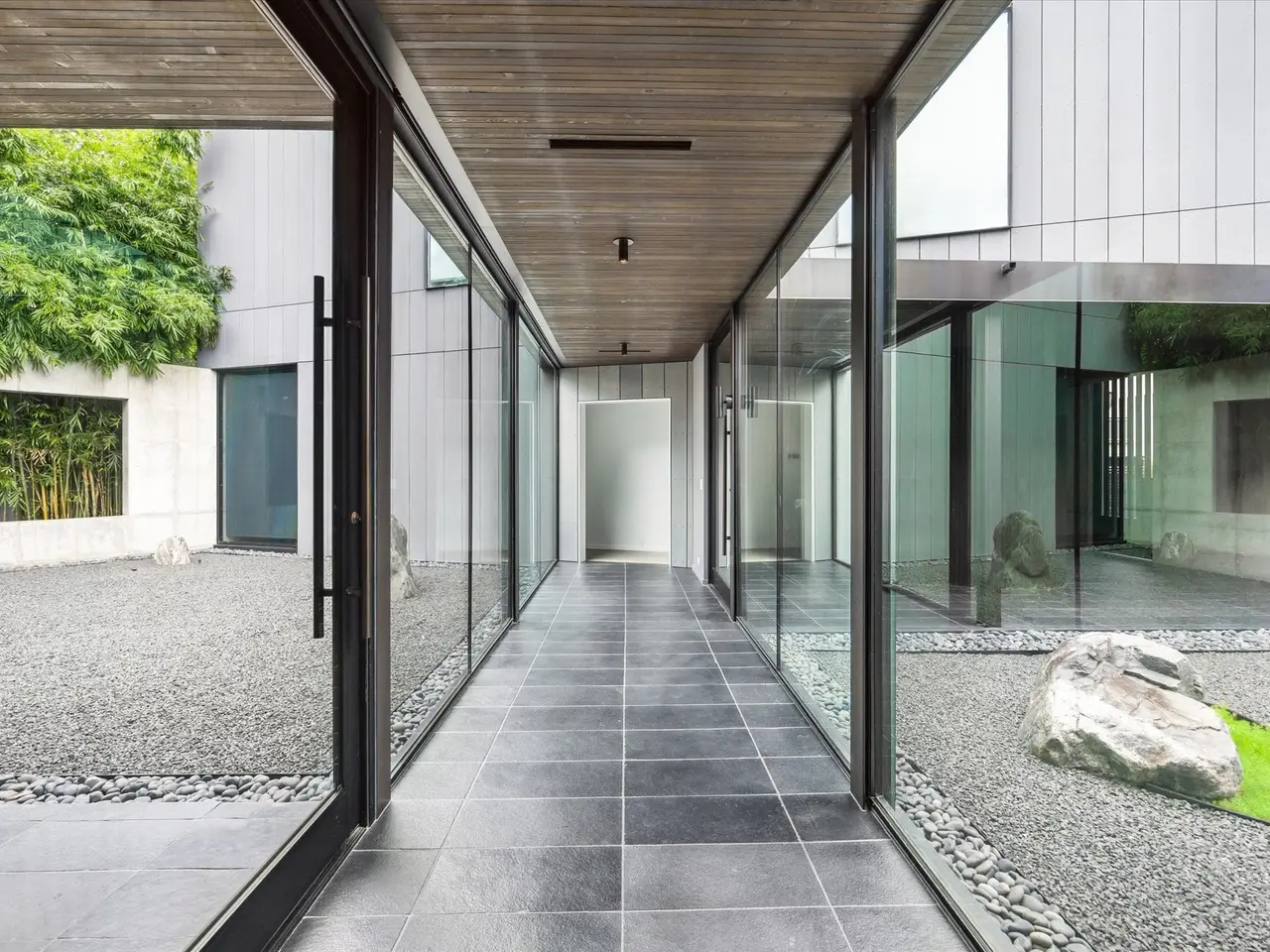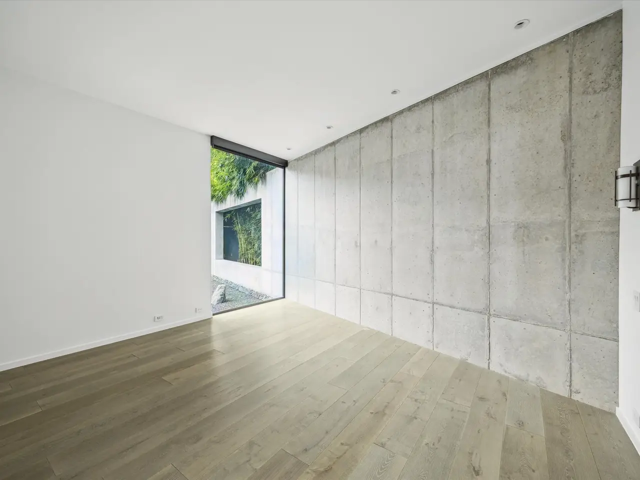 This chic home was created by Robertson Design with clean lines, 14-foot ceilings, an abundance of natural light, open floor plan, and floor-to-ceiling windows with views to a Zen-like courtyard. In addition to a stunning living/dining room the home includes three bedrooms, 3.5 baths, with two primary suites. Both of the primary suites have spa-like bathrooms and large walk-in closets. Additional rooms include an office, gym and a guest bedroom with an en-suite bath. The kitchen has Miele appliances, built-in refrigerator/freezer, with breakfast bar opening to the living area. Other special features include an elevator and a generator. Per Seller.