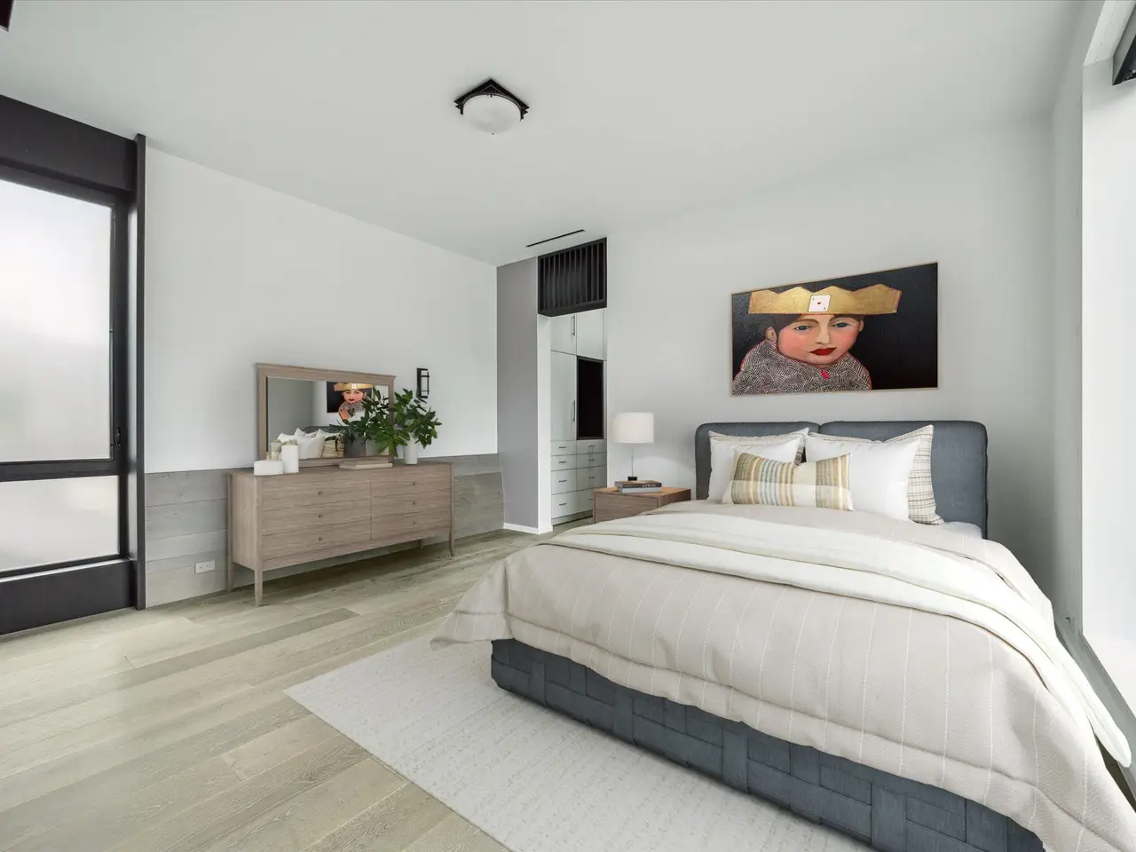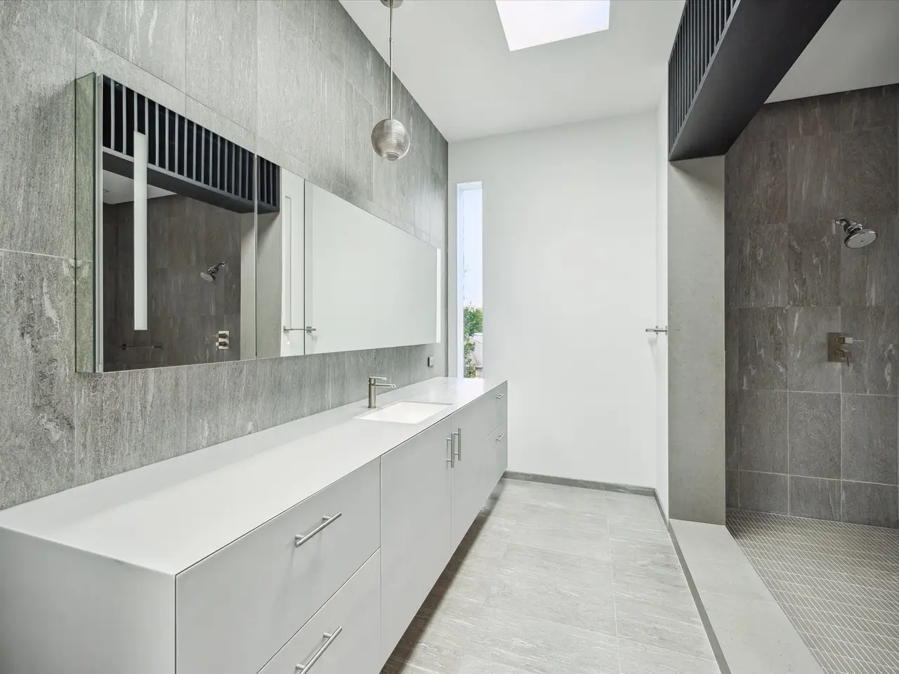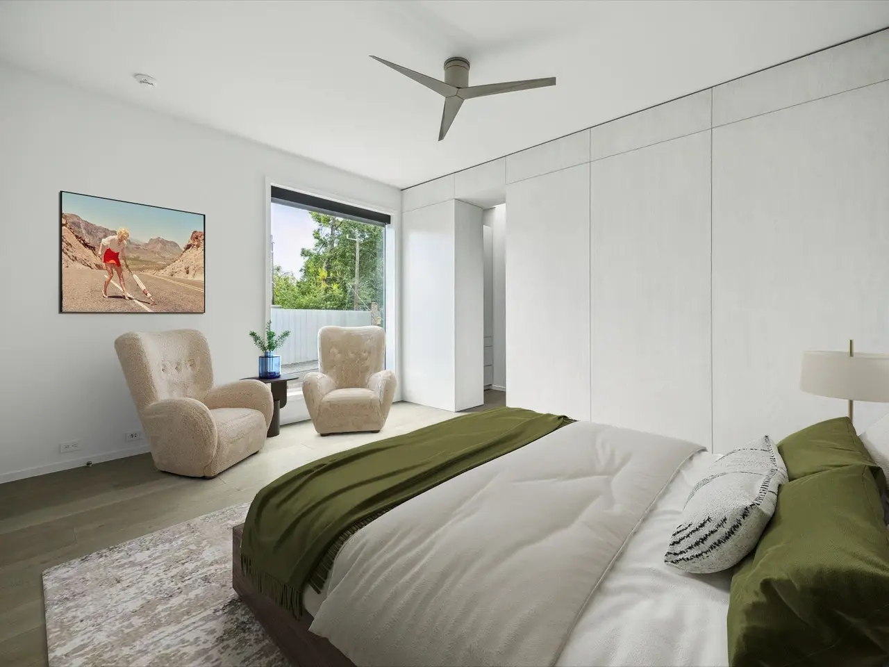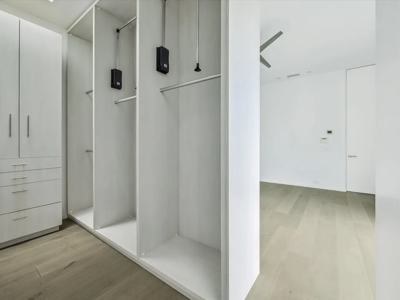 This chic home was created by Robertson Design with clean lines, 14-foot ceilings, an abundance of natural light, open floor plan, and floor-to-ceiling windows with views to a Zen-like courtyard. In addition to a stunning living/dining room the home includes three bedrooms, 3.5 baths, with two primary suites. Both of the primary suites have spa-like bathrooms and large walk-in closets. Additional rooms include an office, gym and a guest bedroom with an en-suite bath. The kitchen has Miele appliances, built-in refrigerator/freezer, with breakfast bar opening to the living area. Other special features include an elevator and a generator. Per Seller.