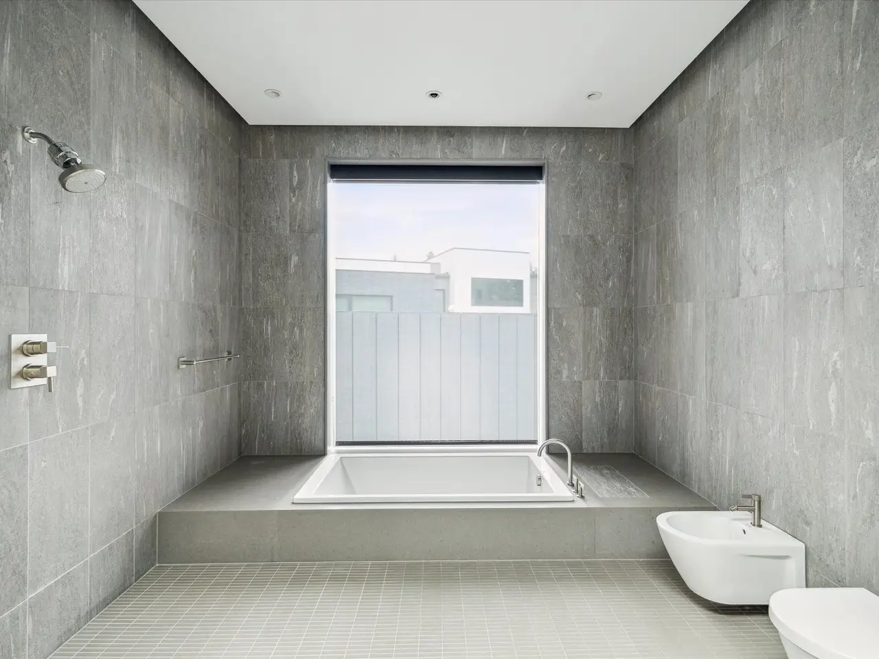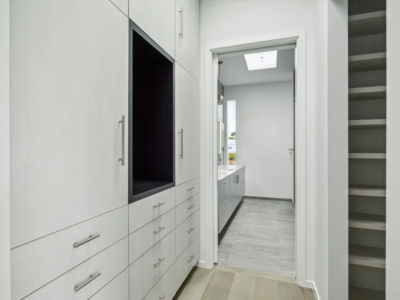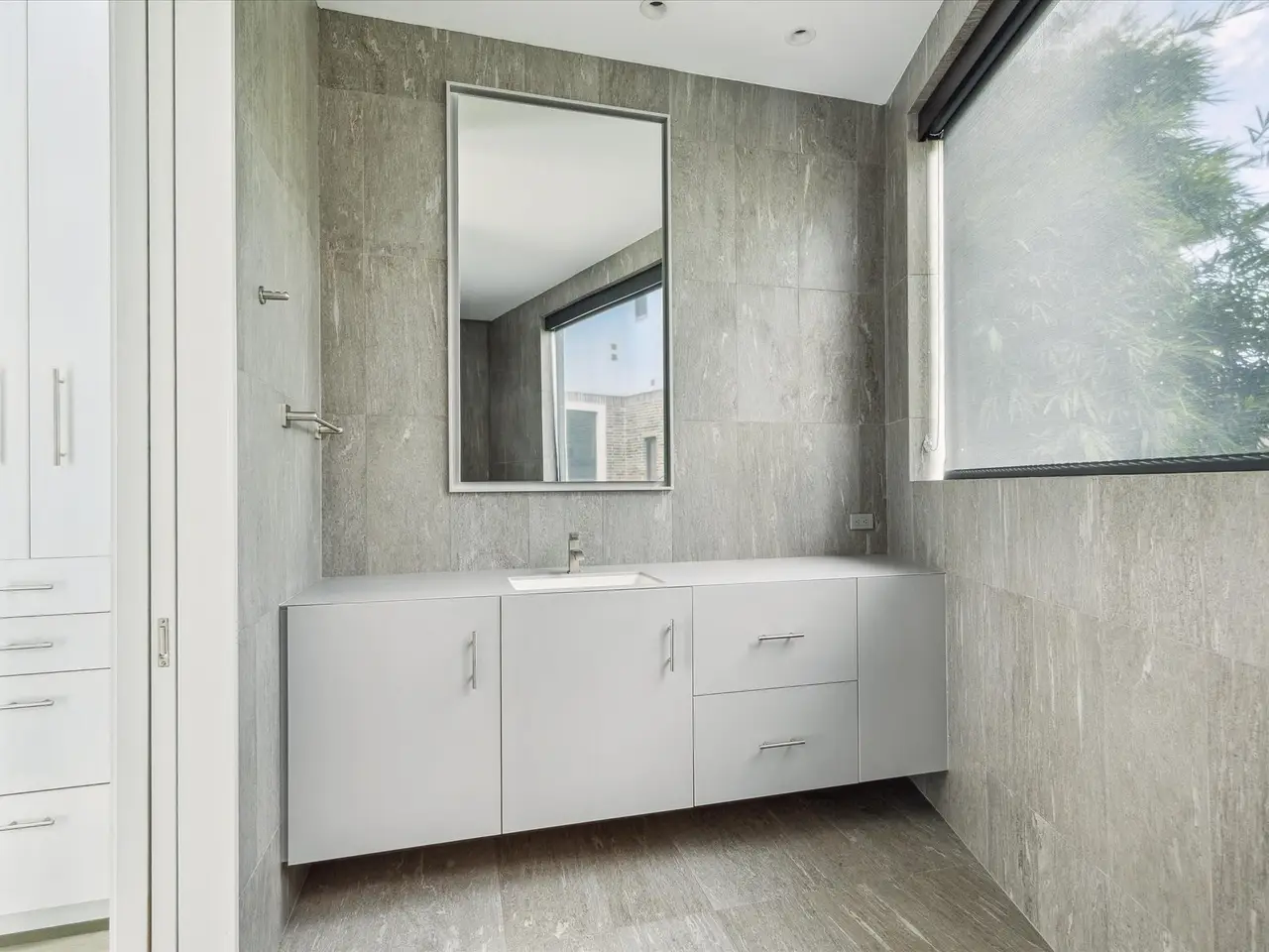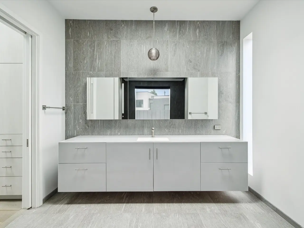 This chic home was created by Robertson Design with clean lines, 14-foot ceilings, an abundance of natural light, open floor plan, and floor-to-ceiling windows with views to a Zen-like courtyard. In addition to a stunning living/dining room the home includes three bedrooms, 3.5 baths, with two primary suites. Both of the primary suites have spa-like bathrooms and large walk-in closets. Additional rooms include an office, gym and a guest bedroom with an en-suite bath. The kitchen has Miele appliances, built-in refrigerator/freezer, with breakfast bar opening to the living area. Other special features include an elevator and a generator. Per Seller.