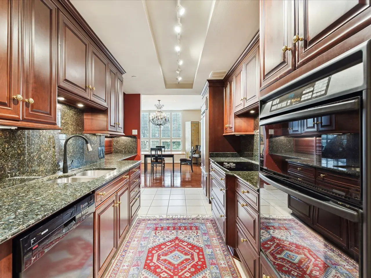 This elegant home features 4 spacious BRs incl 2 primaries, ensuite baths, large closets & extensive storage. Featuring a chef’s kitchen, Brookhaven wood cabinets, granite countertops, top appliances, walk-in pantry & sep butler’s pantry, this home is perfect for family & guests. The large utility room w/full sized washer & dryer plus a stacked washer/dryer render laundry a breeze! Wood plantation shutters, custom paints, wood floors create an elegant space overlooking treetops with spectacular sunrise & sunset views. Private garage w 2 assigned parking spaces, 2 add storage units, 24 hr maintenance, valet & concierge. Party room, lounge, heated pool, gym, sauna, tennis courts, dog park, picnic area w fenced grounds. Welcome home!