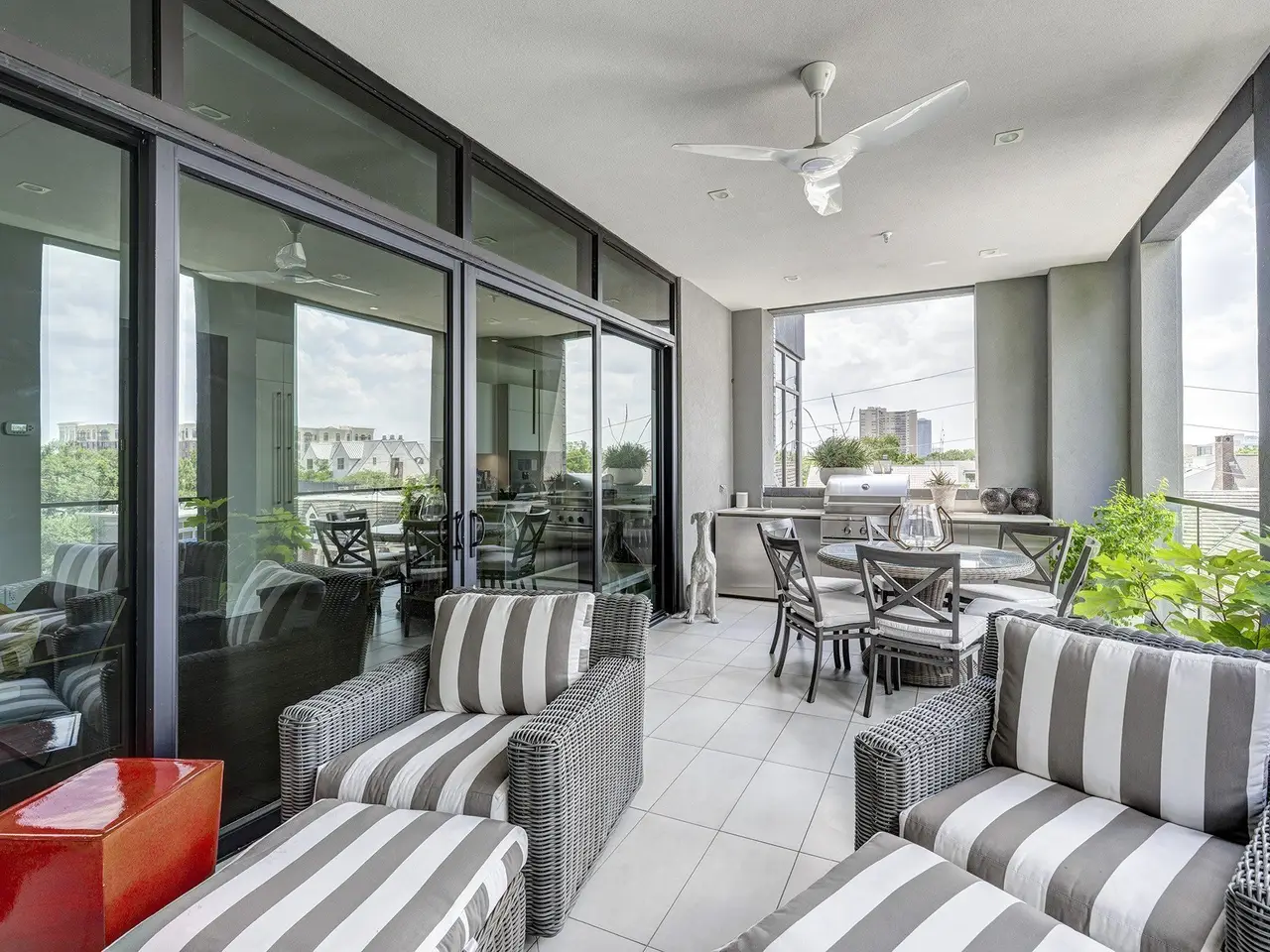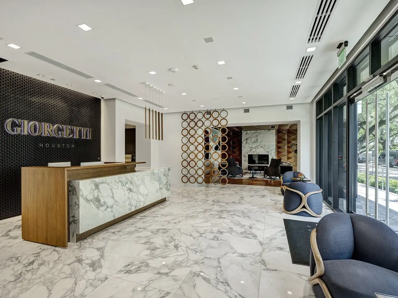 Located in the heart of Upper Kirby, the Giorgetti Houston offers an unparalleled lifestyle surrounded by luxury retail, acclaimed restaurants, and world-class art galleries. With only 32 exclusive residences and concierge service, this boutique building ensures comfort, and sophistication. Amenities include hot and cold plunge pools, dog park and pet washing station, well-equipped fitness center, beautiful landscaping, and private sitting areas. Unit #402 is a spacious corner residence with 3 bedrooms and 3.5 baths, designed with an open-concept layout that flows into a private loggia featuring an outdoor kitchen and double-sided fireplace. Premium finishes include Listone Giordano hardwood flooring, sleek Giorgetti cabinetry, Quartz Italiana countertops, and Gaggenau appliances. Expansive windows, high ceilings, stunning chef’s kitchen, spa-like primary bath, 2 reserved parking spaces, and a private storage unit complete this exceptional residence. All per seller.