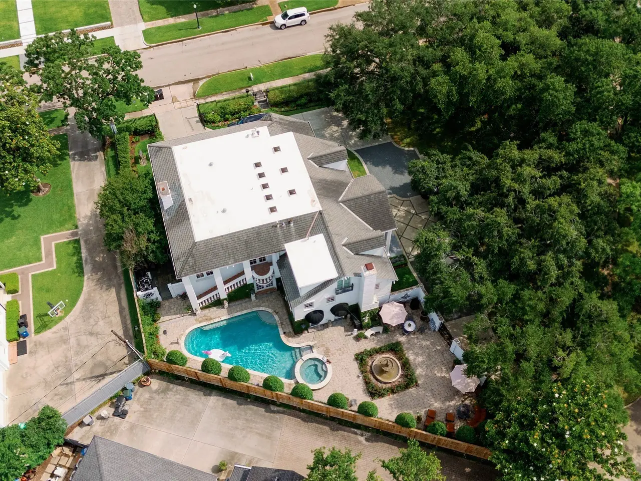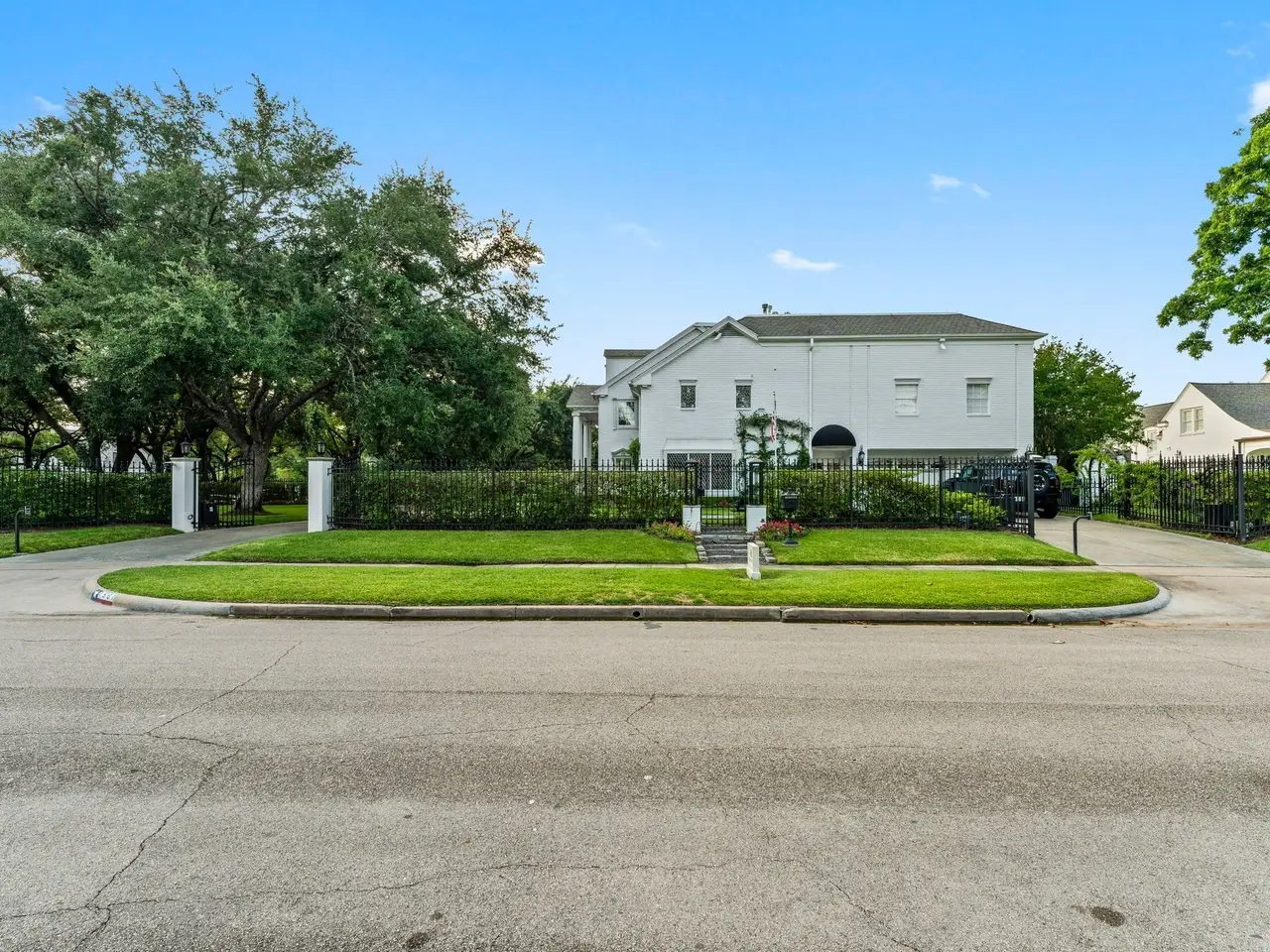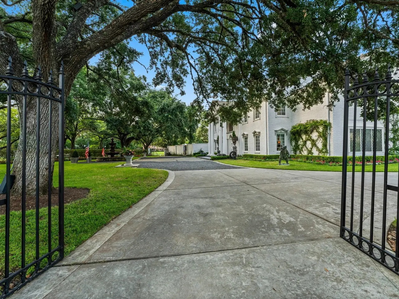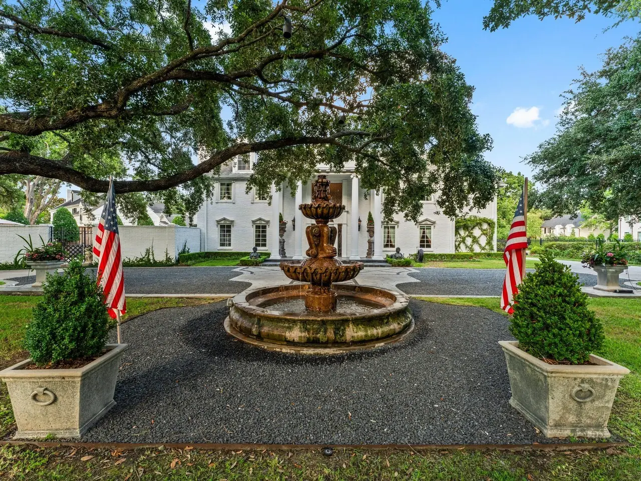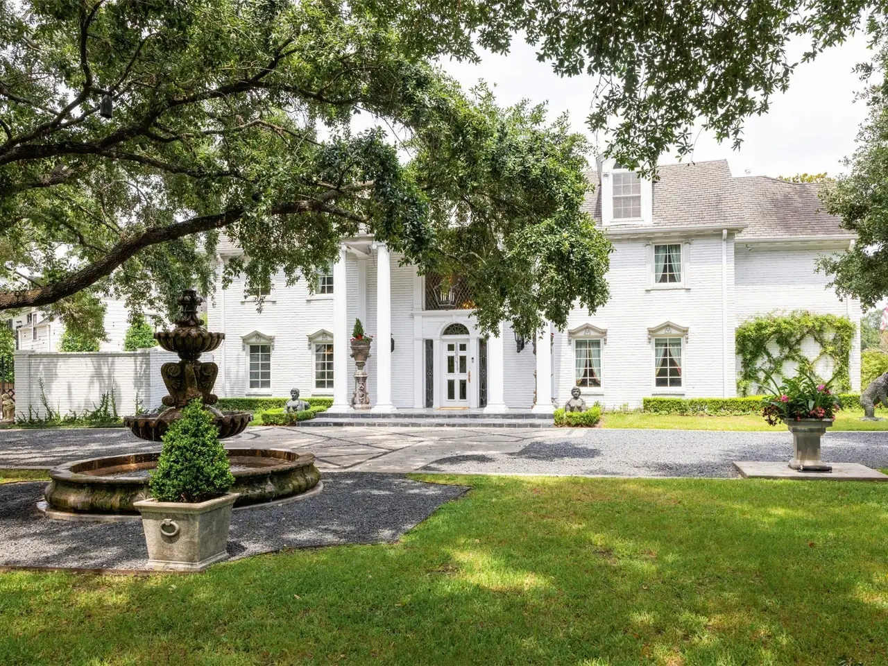 Iconic Colonial estate perfectly situated between Kirby Drive and Brentwood in Houston’s prestigious River Oaks. Fully gated and framed by vibrant azaleas and mature oaks, this timeless residence blends elegance, privacy, and comfort. Ideal for entertaining inside and out, the home features a formal dining room with a stone fireplace and a paneled living room with classic warmth. A sunlit study with leaded glass overlooks blooming Peggy Martin roses. The stunning ballroom—complete with wet bar, marble fireplace, and ceiling mural—is perfect for unforgettable gatherings. The chef’s kitchen opens to expansive family and breakfast rooms, with chilled wine storage and built-in espresso machine. Two powder rooms and a guest apartment behind the garage complete the first floor. Outside, lush gardens, a peaceful fountain, and pool create a serene oasis for al fresco entertaining. Upstairs features a spacious primary suite and two bedrooms; the third floor offers a fourth suite and fitness room.