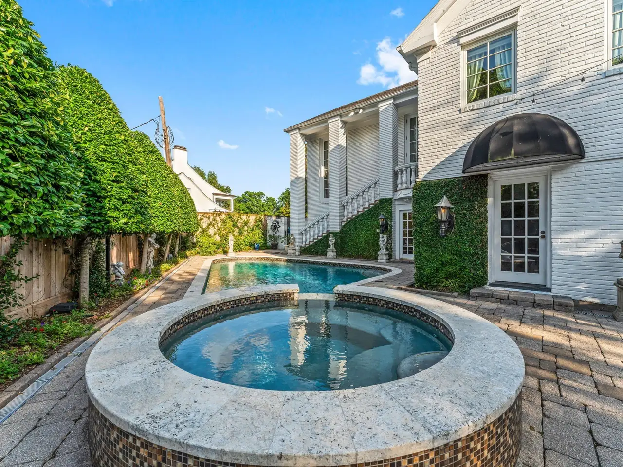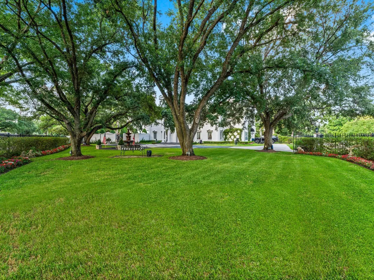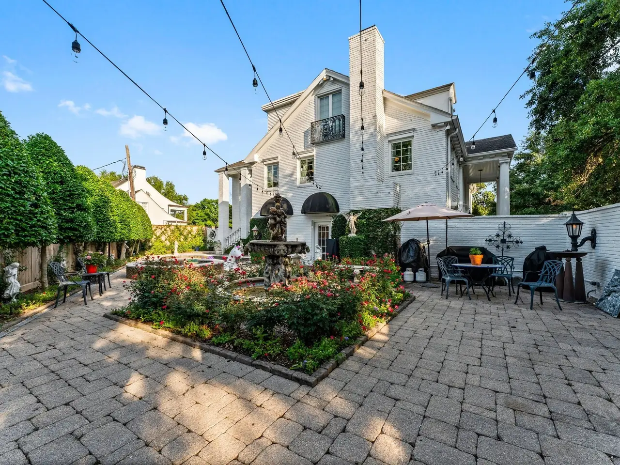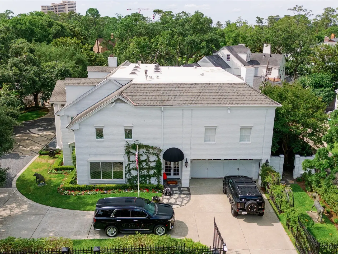 Iconic Colonial estate perfectly situated between Kirby Drive and Brentwood in Houston’s prestigious River Oaks. Fully gated and framed by vibrant azaleas and mature oaks, this timeless residence blends elegance, privacy, and comfort. Ideal for entertaining inside and out, the home features a formal dining room with a stone fireplace and a paneled living room with classic warmth. A sunlit study with leaded glass overlooks blooming Peggy Martin roses. The stunning ballroom—complete with wet bar, marble fireplace, and ceiling mural—is perfect for unforgettable gatherings. The chef’s kitchen opens to expansive family and breakfast rooms, with chilled wine storage and built-in espresso machine. Two powder rooms and a guest apartment behind the garage complete the first floor. Outside, lush gardens, a peaceful fountain, and pool create a serene oasis for al fresco entertaining. Upstairs features a spacious primary suite and two bedrooms; the third floor offers a fourth suite and fitness room.