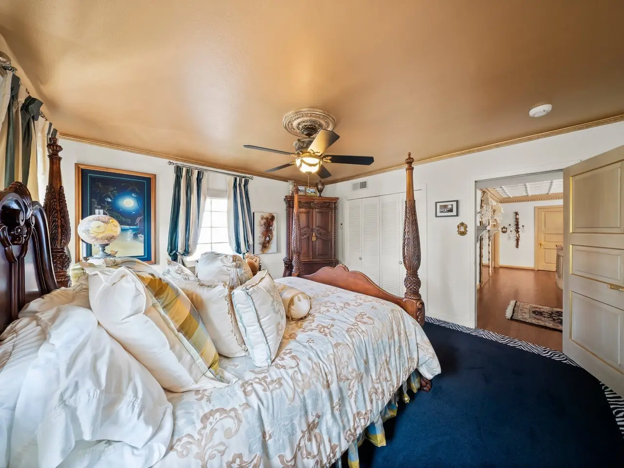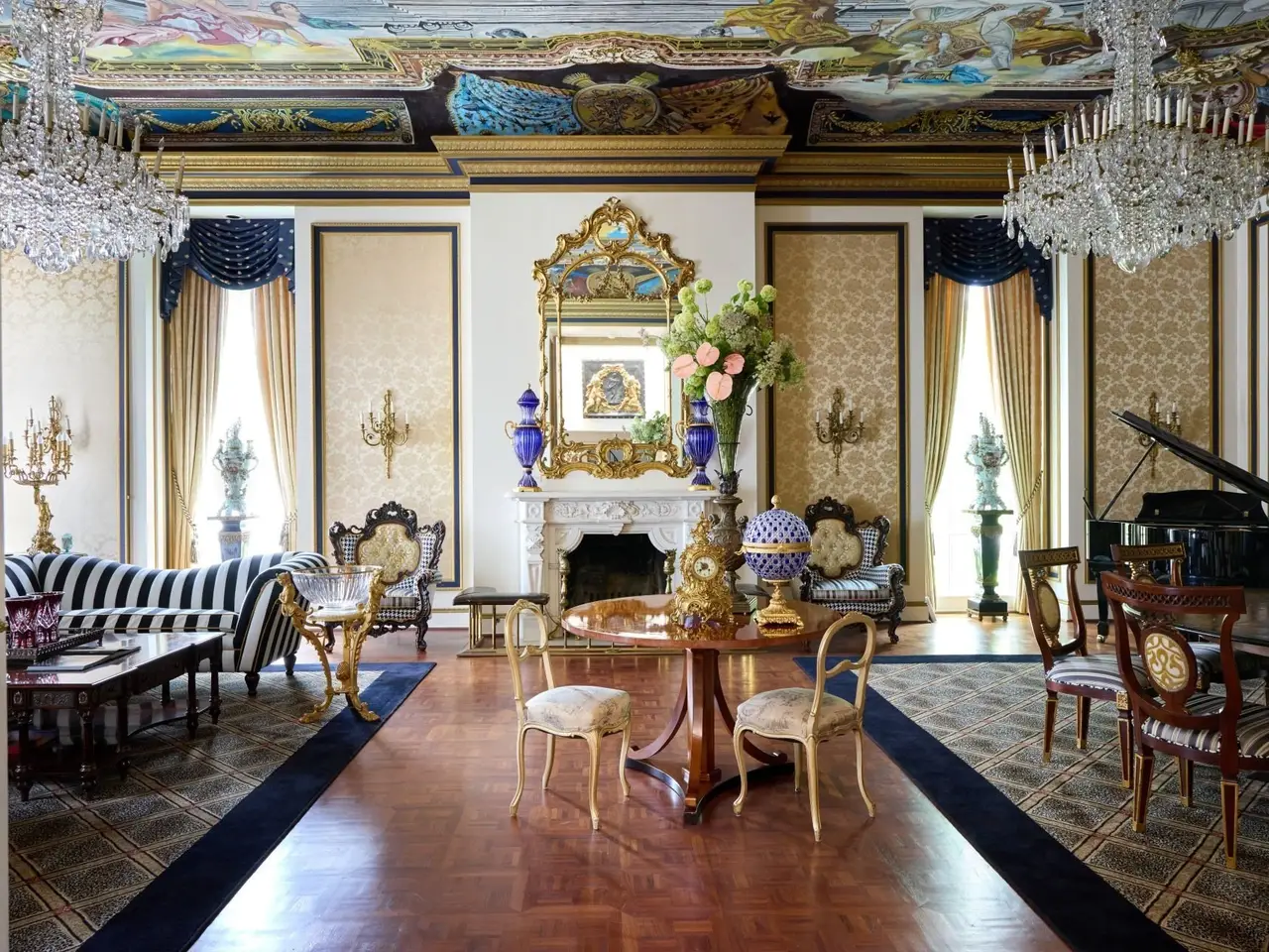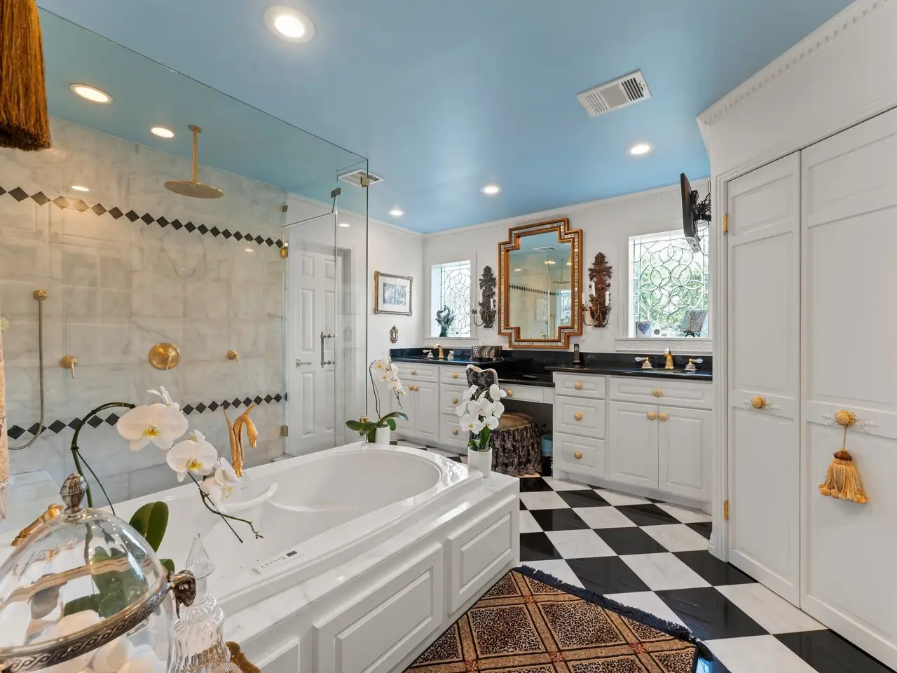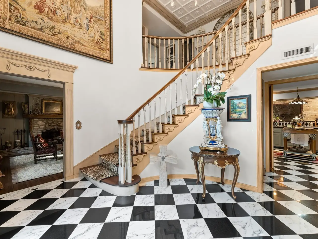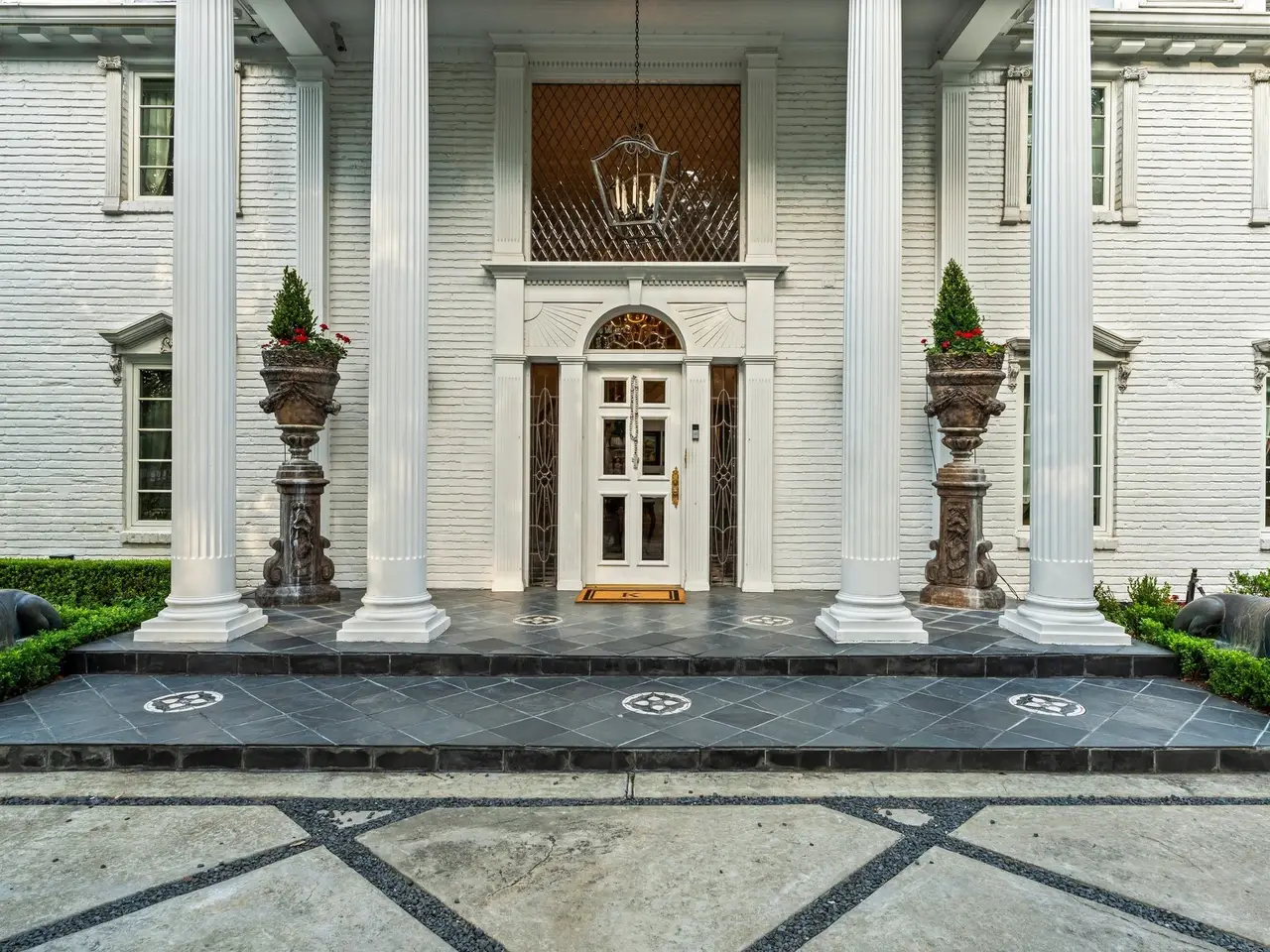 Iconic Colonial estate perfectly situated between Kirby Drive and Brentwood in Houston’s prestigious River Oaks. Fully gated and framed by vibrant azaleas and mature oaks, this timeless residence blends elegance, privacy, and comfort. Ideal for entertaining inside and out, the home features a formal dining room with a stone fireplace and a paneled living room with classic warmth. A sunlit study with leaded glass overlooks blooming Peggy Martin roses. The stunning ballroom—complete with wet bar, marble fireplace, and ceiling mural—is perfect for unforgettable gatherings. The chef’s kitchen opens to expansive family and breakfast rooms, with chilled wine storage and built-in espresso machine. Two powder rooms and a guest apartment behind the garage complete the first floor. Outside, lush gardens, a peaceful fountain, and pool create a serene oasis for al fresco entertaining. Upstairs features a spacious primary suite and two bedrooms; the third floor offers a fourth suite and fitness room.