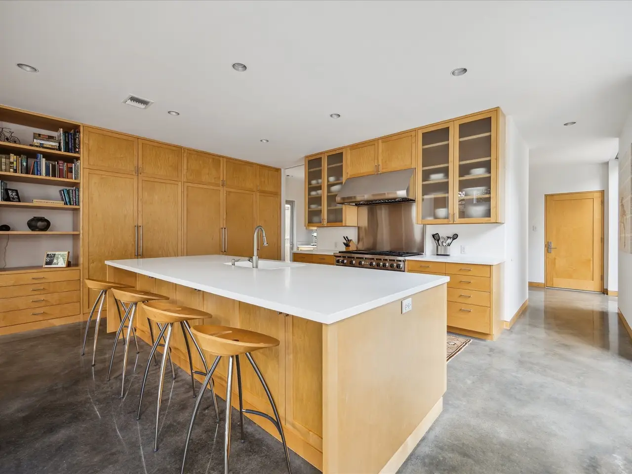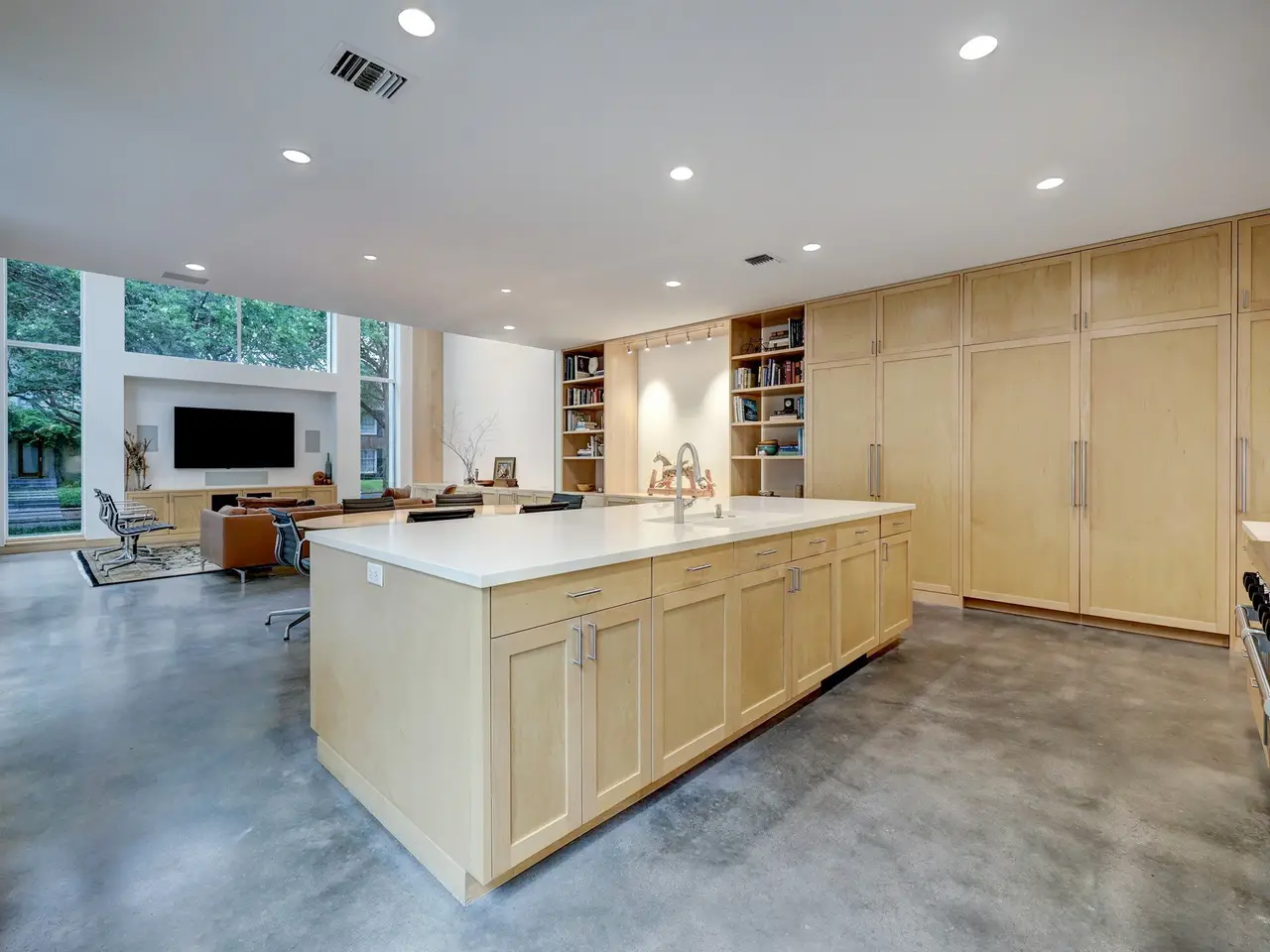 Tree top views from this lovely soft contemporary in Southampton Place. Three car garage/workshop, elevator, open living and dining, and courtyard with fountain and mature trees. Close proximity to Rice Village, Rice University and the Texas Medical Center. Well respected custom builder’s own home, this clean contemporary with extensive architectural millwork and a carefully designed floor plan, provides an easy living low-maintenance lifestyle. Sub-Zero refrigerator and freezer, wine refrigerator, Wolf range, tankless water heater, steam shower and climate-controlled storage closets in the garage for gear. Also featuring, two story ceilings, expansive windows that open to a courtyard, concrete floors throughout first floor and maple hardwoods on 2nd floor. The large study/project room has an amazing view for working at home. This home is one of kind and an exceptional offering. Per Seller