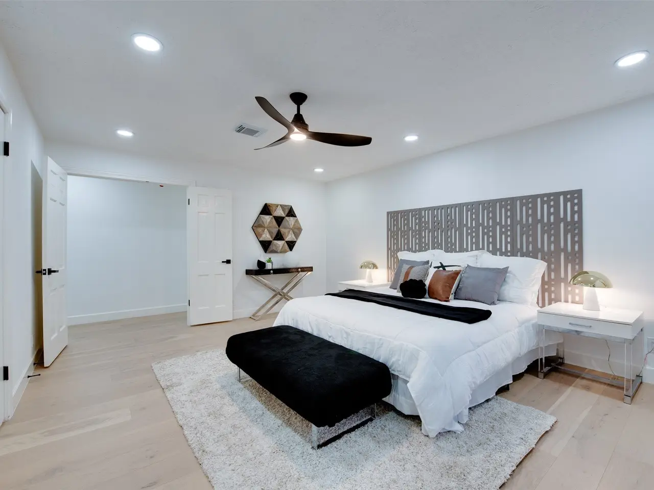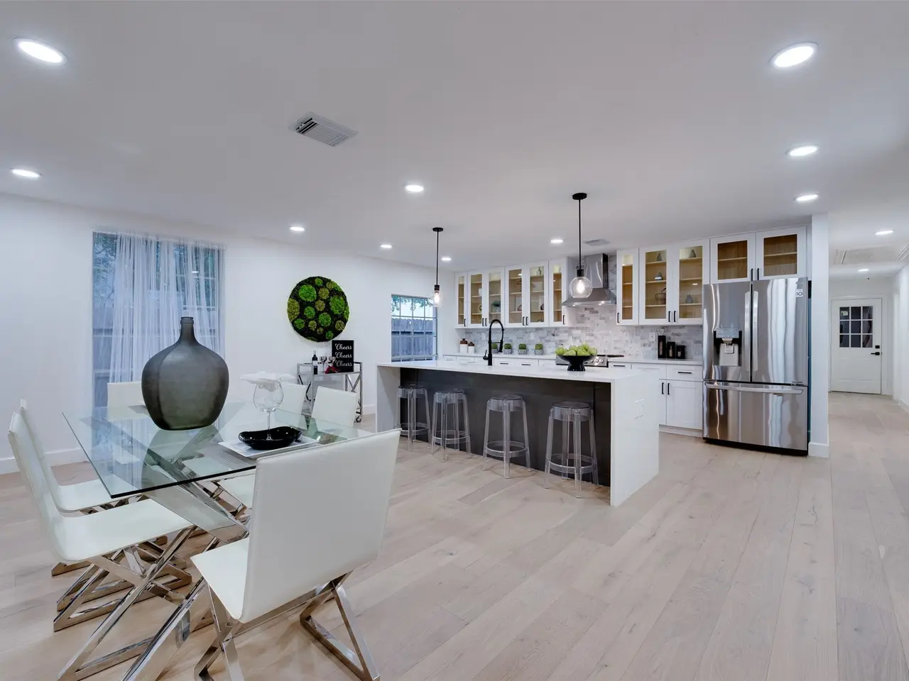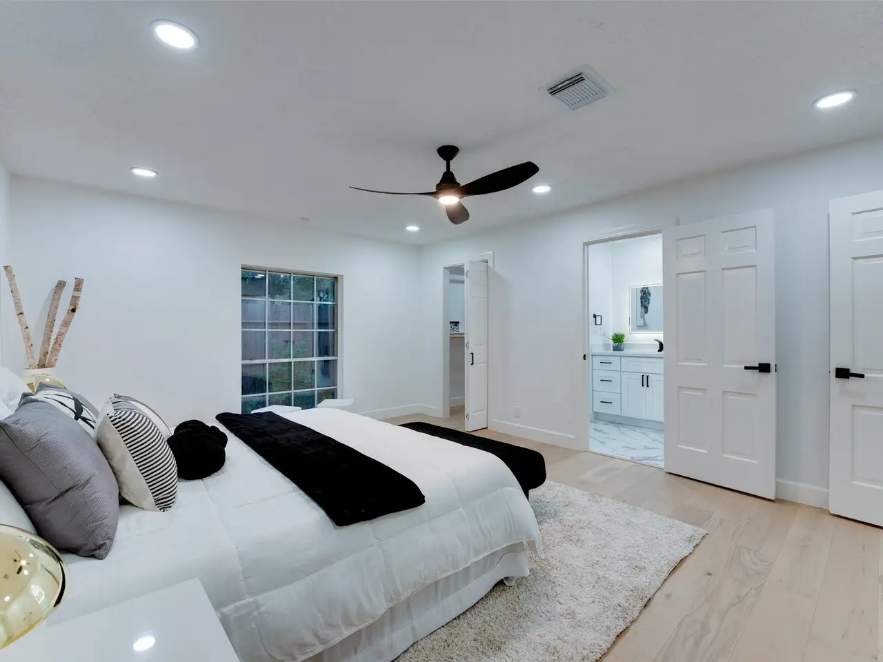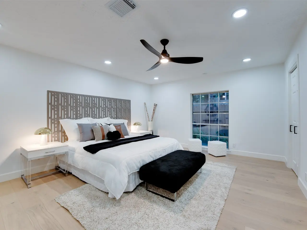 Rare one-story Bungalow near Rice Village, Museum District and Medical Center features 3 bedrooms, study and 2 baths. The home was renovated in 2023 with epoxy garage floor. Additional improvements in 2024; new roof, additional insulation and landscaping. Home features a generator as well as several accessibility features. Light filled home with open floor plan, fantastic kitchen features farm sink, stainless appliances, and breakfast bar seating. Wonderful Study/Office off living area, engineered wide plank wood floor throughout. Spacious primary bedroom with en-suite bath spacious walk-in shower. Secondary bedroom’s accessible to Jack & Jill bathroom and double sinks. Separate laundry room in house. All the modern comfort for easy living and entertaining. All per Seller