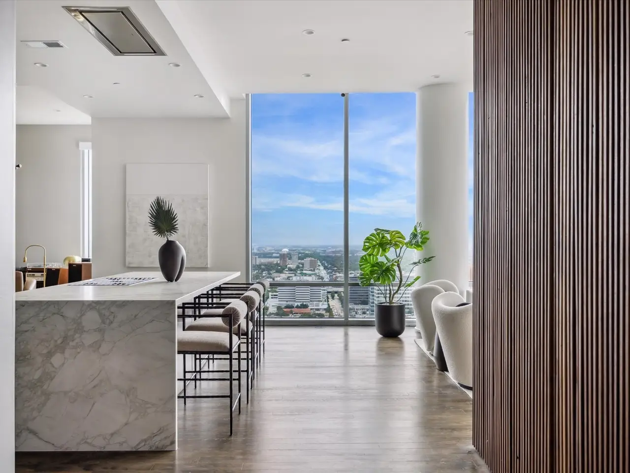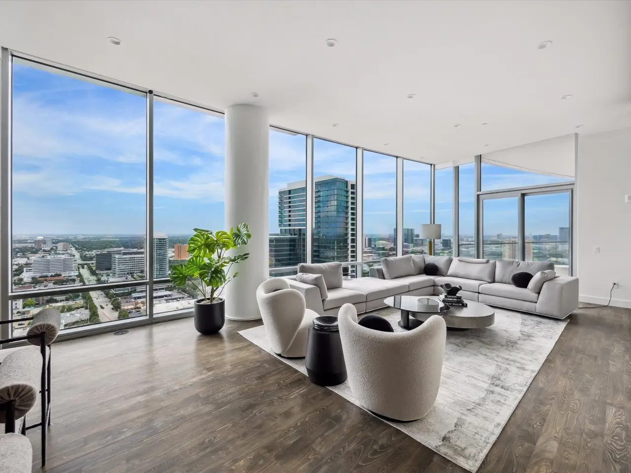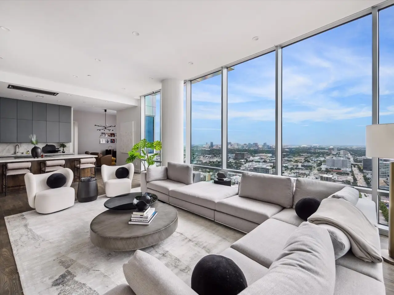 Understated elegance with breathtaking views from the 27th floor, Unit 27J has been recently renovated under the expert guidance of designer Nina Magon. Located in the heart of Upper Kirby, 2727 Kirby, Houston's premier high-rise building, includes valet, doorman, large balcony with grill, luxurious infinity heated pool, pool deck with summer kitchen, putting green, catering kitchen, two party rooms, wine room, fitness center with spa, steam rooms and is in close proximity to retail, restaurants and Whole Foods Market. Besides the 3,063 square feet (HCAD) of living space, including three spacious bedrooms and three and one-half baths, there is 300 square feet of terraces. Enjoy 12’ ceilings, floor-to-ceiling glass windows with breathtaking views on two private terraces and chic baths with custom walk-in closets. In addition to the fabulous primary suite, there are additional bedrooms with en-suite baths. All info per Seller.