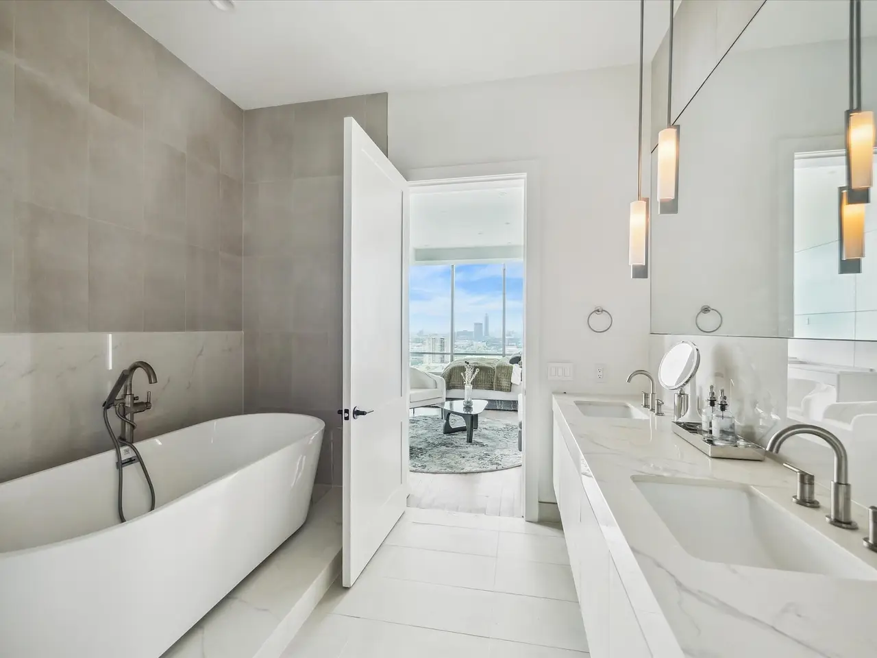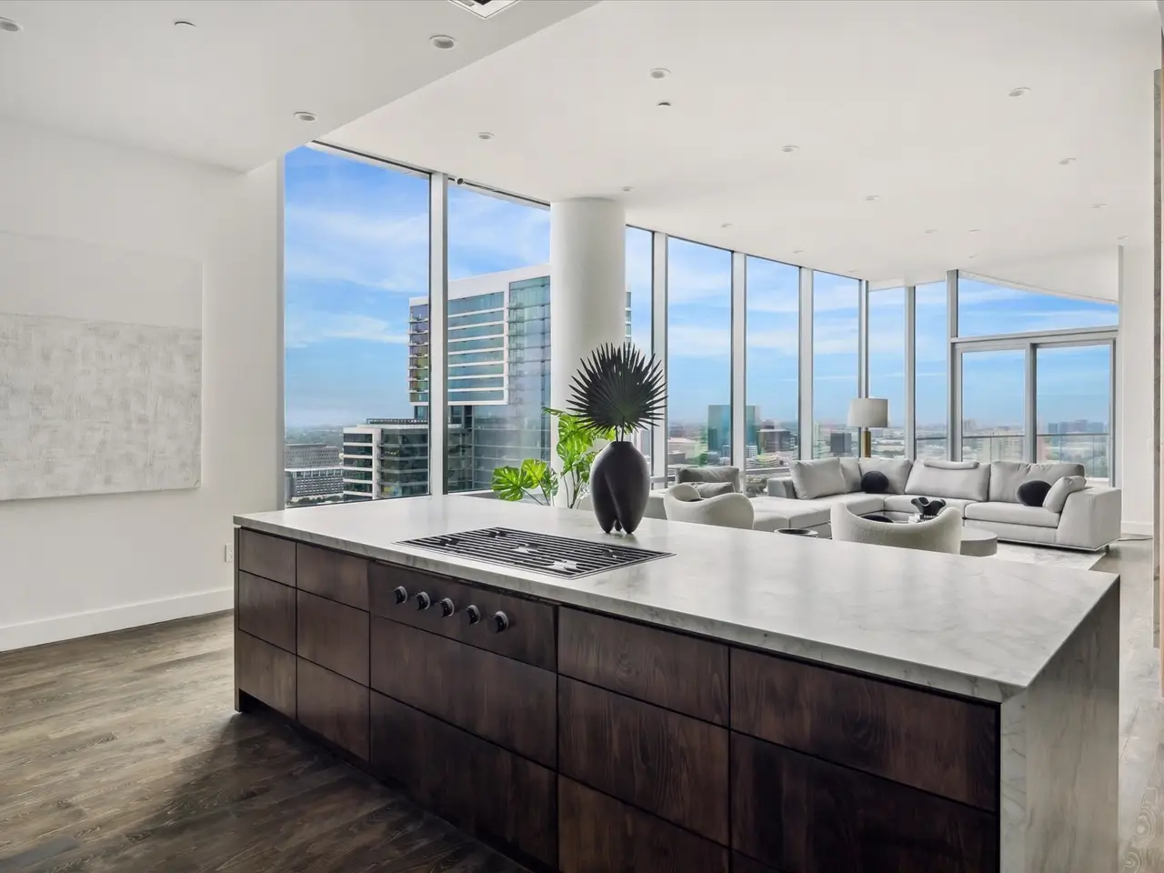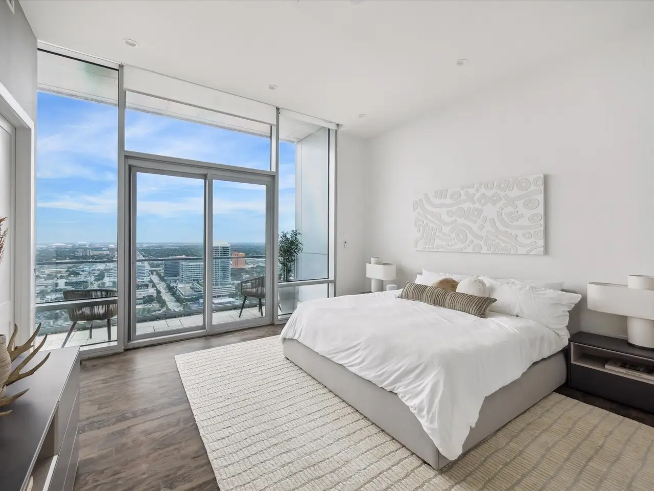 Understated elegance with breathtaking views from the 27th floor, Unit 27J has been recently renovated under the expert guidance of designer Nina Magon. Located in the heart of Upper Kirby, 2727 Kirby, Houston's premier high-rise building, includes valet, doorman, large balcony with grill, luxurious infinity heated pool, pool deck with summer kitchen, putting green, catering kitchen, two party rooms, wine room, fitness center with spa, steam rooms and is in close proximity to retail, restaurants and Whole Foods Market. Besides the 3,063 square feet (HCAD) of living space, including three spacious bedrooms and three and one-half baths, there is 300 square feet of terraces. Enjoy 12’ ceilings, floor-to-ceiling glass windows with breathtaking views on two private terraces and chic baths with custom walk-in closets. In addition to the fabulous primary suite, there are additional bedrooms with en-suite baths. All info per Seller.