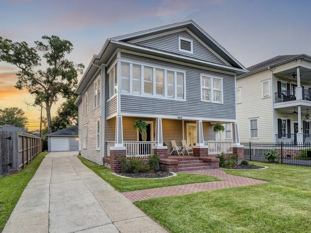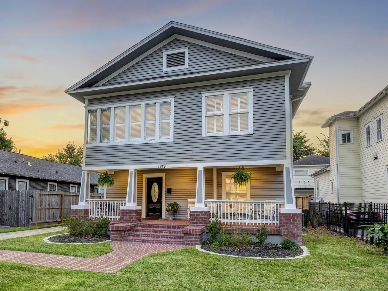 Located in the Houston Heights, 1819 Oxford is a beautifully renovated two-story Craftsman home with a garage apartment. Hardwood floors and striking fixtures enhance this 3-bedroom, 3-bath home, which also features a gameroom and sits on a 6,600 sq. ft. lot (per HCAD). The spacious front living room with fireplace is perfect for relaxation. The adjoining dining room includes a wet bar, wine cooler, and dinnerware storage. The stunning epicurean kitchen offers quartz countertops, stainless steel appliances, an island with counter seating, and abundant cabinet space. Downstairs also features a full bathroom with walk-in shower and an executive wine closet. Upstairs, the primary bedroom is a true suite with a large walk-in closet and a spa-like bath with quartz countertop, double sinks, vanity, clawfoot tub, and walk-in shower. Two secondary bedrooms, a hallway bath, flex-space gameroom, and laundry room complete the upper level. Additional highlights include a tankless water heater. The back covered porch overlooks the lush yard. A great bonus is the garage apartment, which includes living space, kitchen, bedroom, bathroom, and laundry hookup in the garage. Zoned to Field Elementary (buyer to verify eligibility). All information per seller.