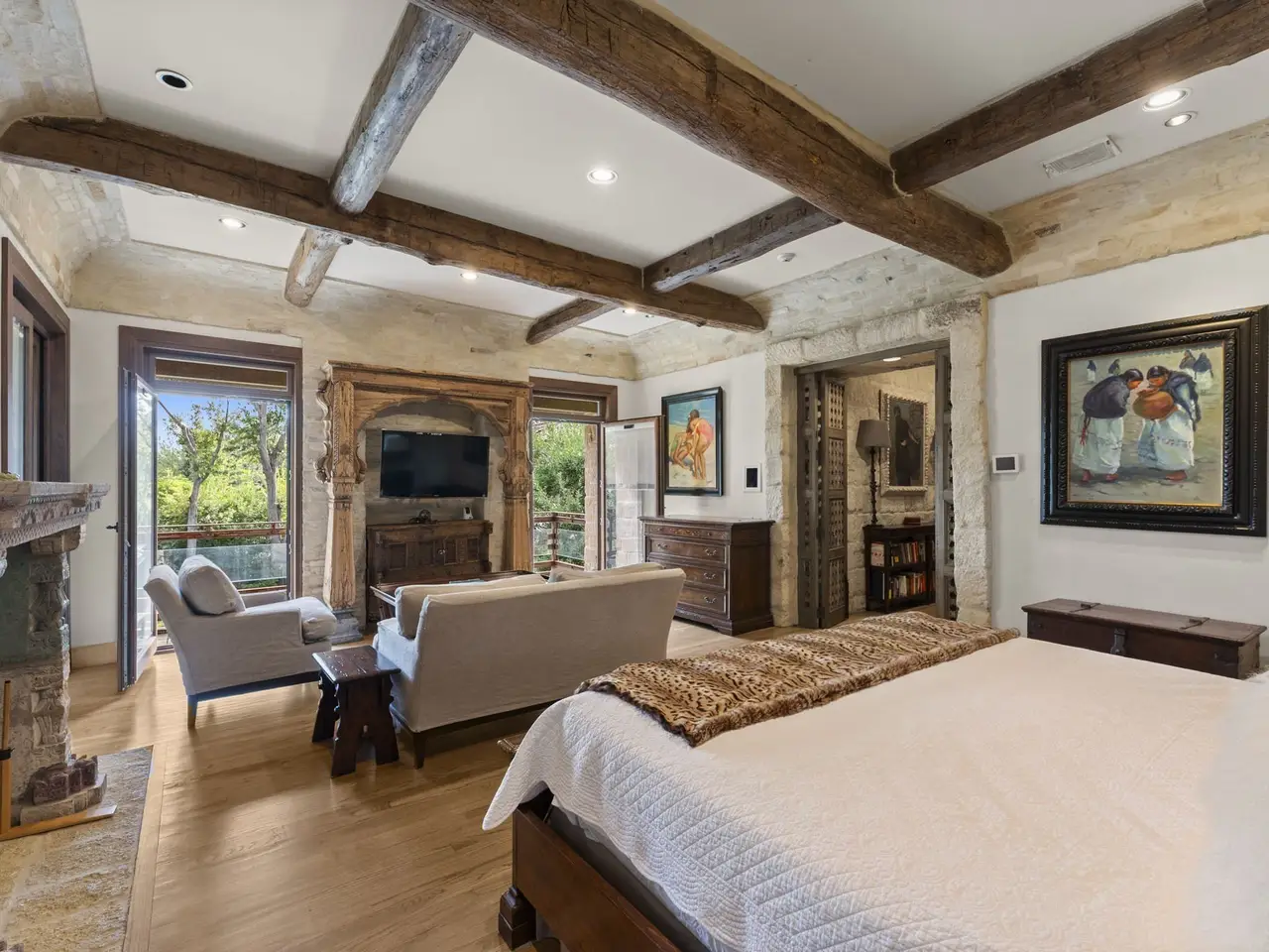 A rare opportunity to own a Tuscan-inspired masterpiece on Doliver Drive — an estate of timeless European craftsmanship and modern luxury. Enclosed by hand-built stone walls and wrought-iron gates from Italy, the home features antique marble fountains, a teak pool deck, venetian plastered walls, and custom Italian windows blending Corten steel and oak. Inside, an antique Indian door opens to floors of reclaimed marble from Provence and wide-plank French oak, with ceilings of hand-hewn beams. Four antique fireplaces from France and India anchor the living spaces. Every detail reflects global artistry — from Italian and German fixtures to Brazilian granite and hand-carved doors from Mexico and India. A true European retreat in the heart of the city, uniting old-world charm with contemporary sophistication.