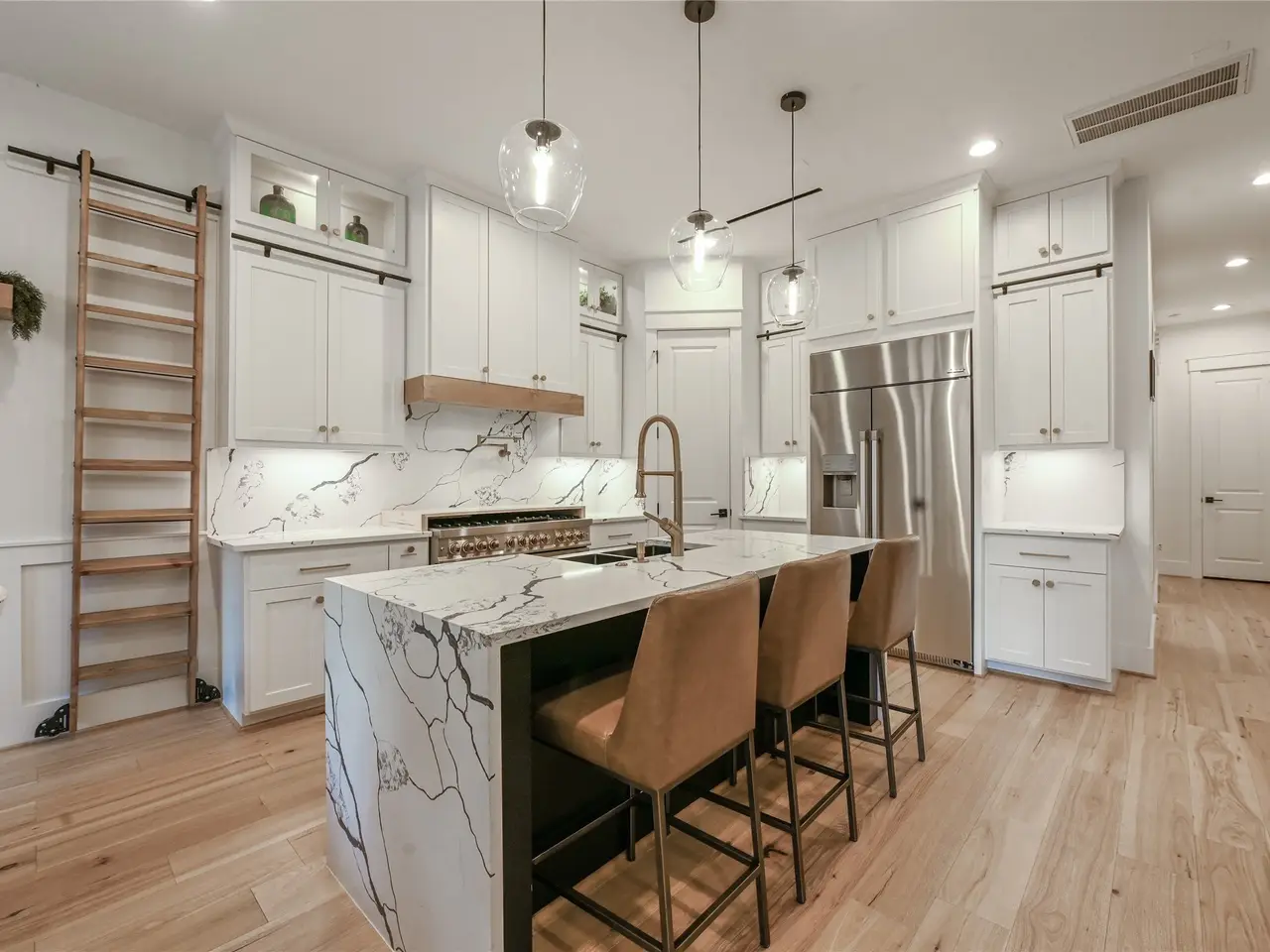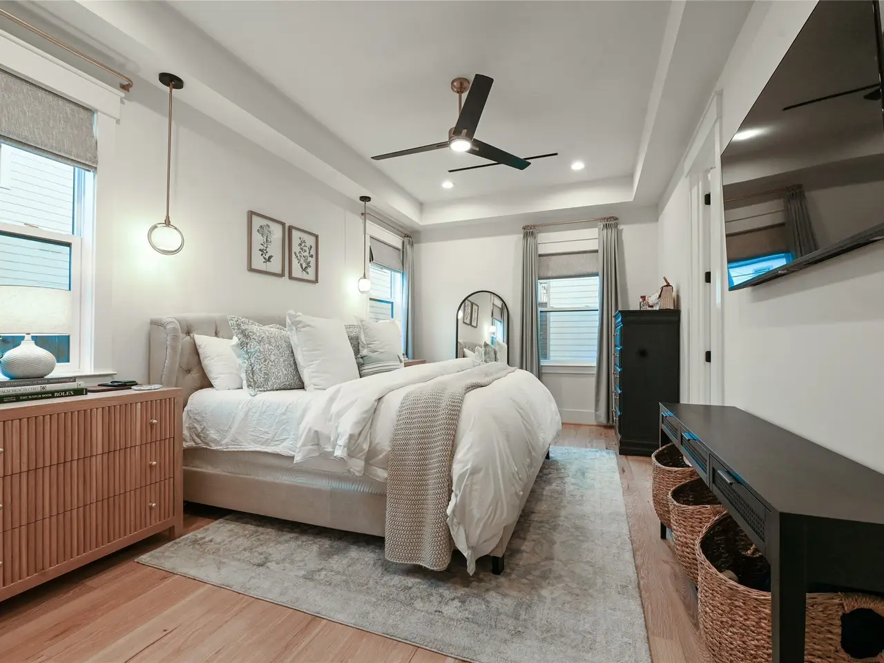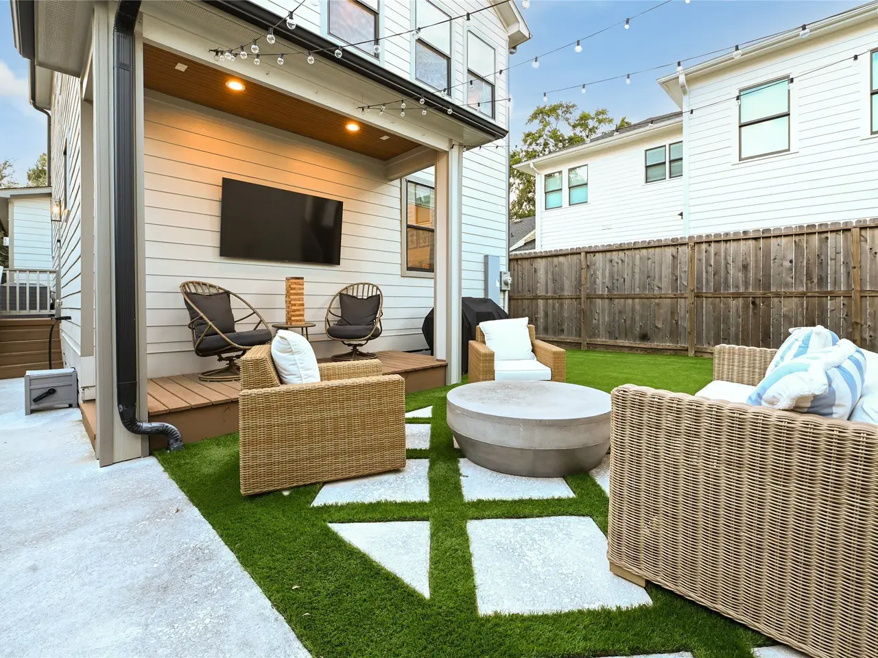 Located in the heart of the Houston Heights, this home was built in 2022, making it one of the last newer construction homes before becoming a historic neighborhood. This home showcases high-end luxury finishes throughout. Thoughtfully designed, the architecture complements the rich history of the Heights while offering modern sophistication. Inside, a private office provides the perfect space for work or creativity. The property also includes a fully functional detached one-bedroom, one-bath garage apartment—ideal for guests, rental income, or an in-law suite. The private backyard is perfect for entertaining, featuring turf and concrete pads for a sleek, low-maintenance outdoor retreat. Guest apartment is currently being leased out for $1,450 per month