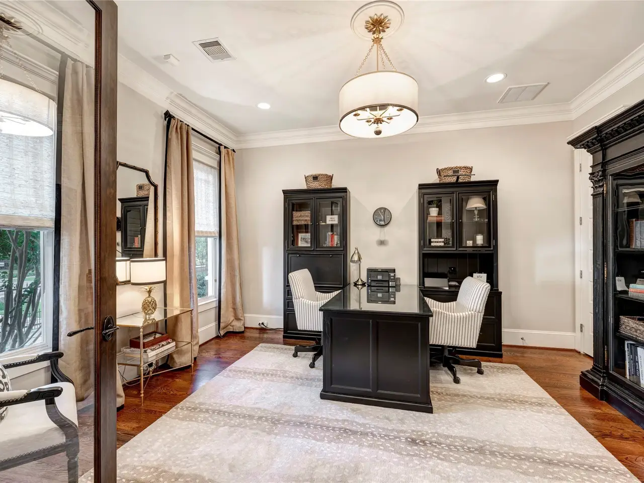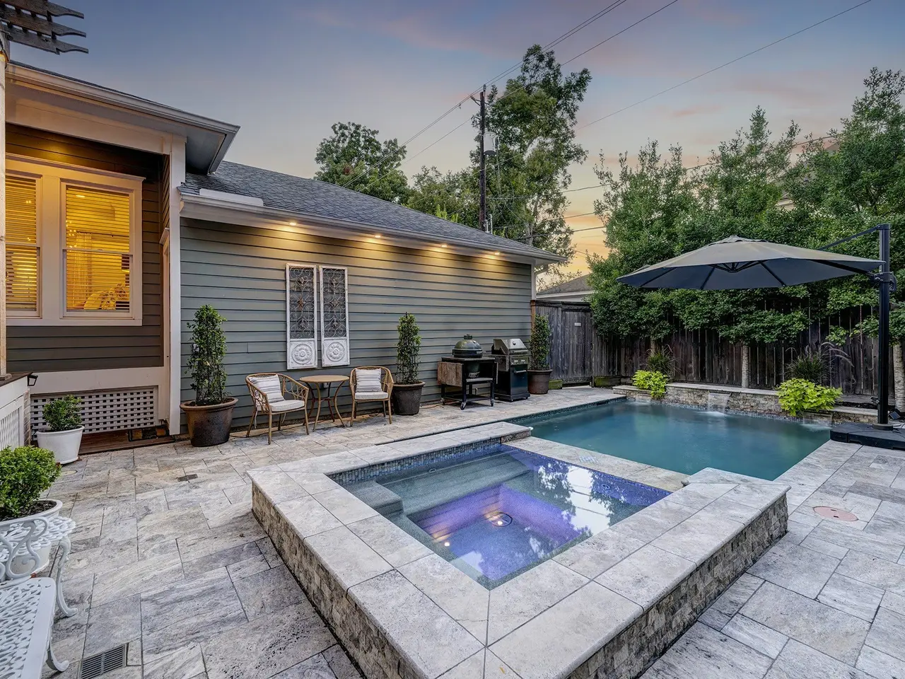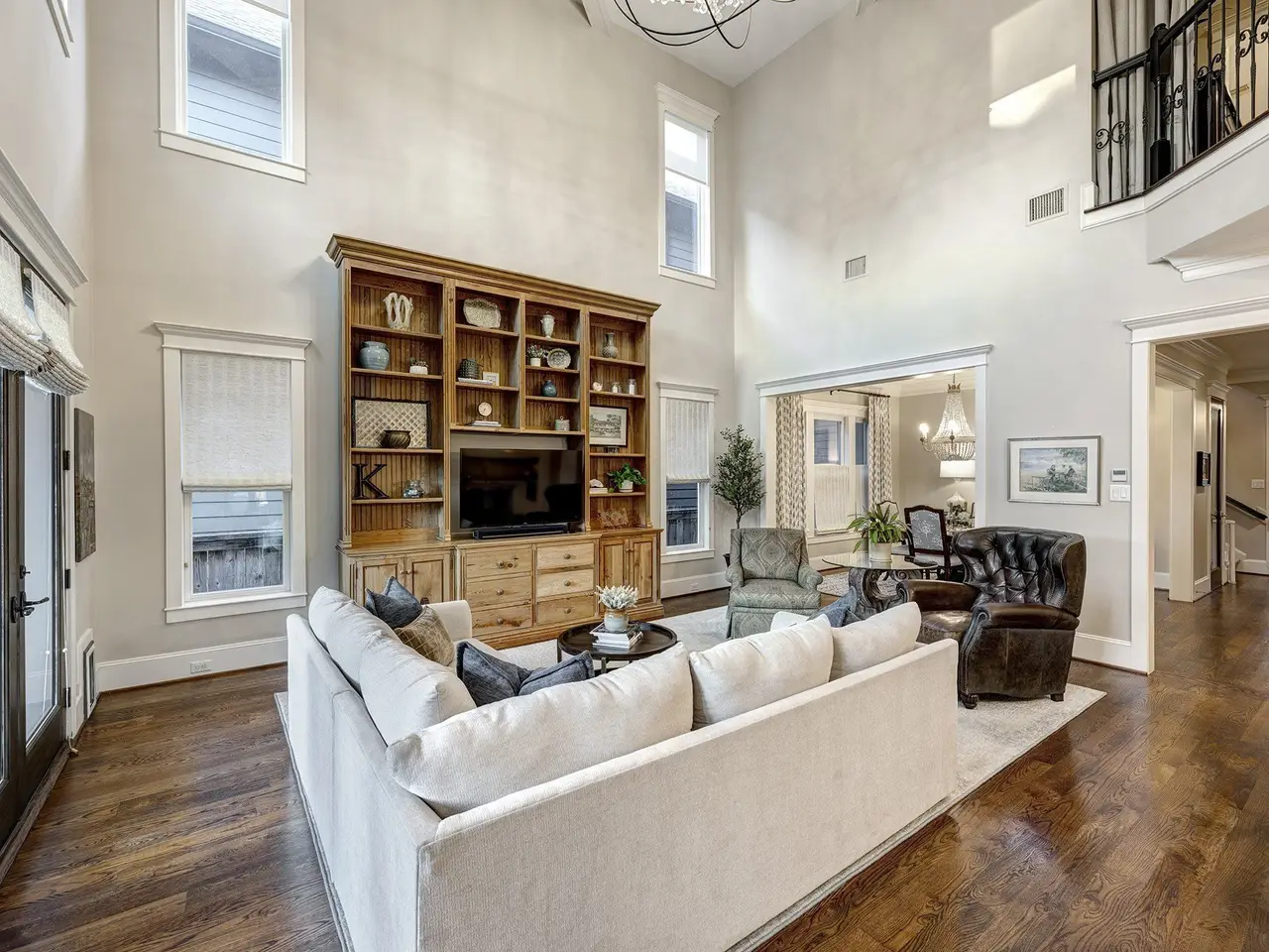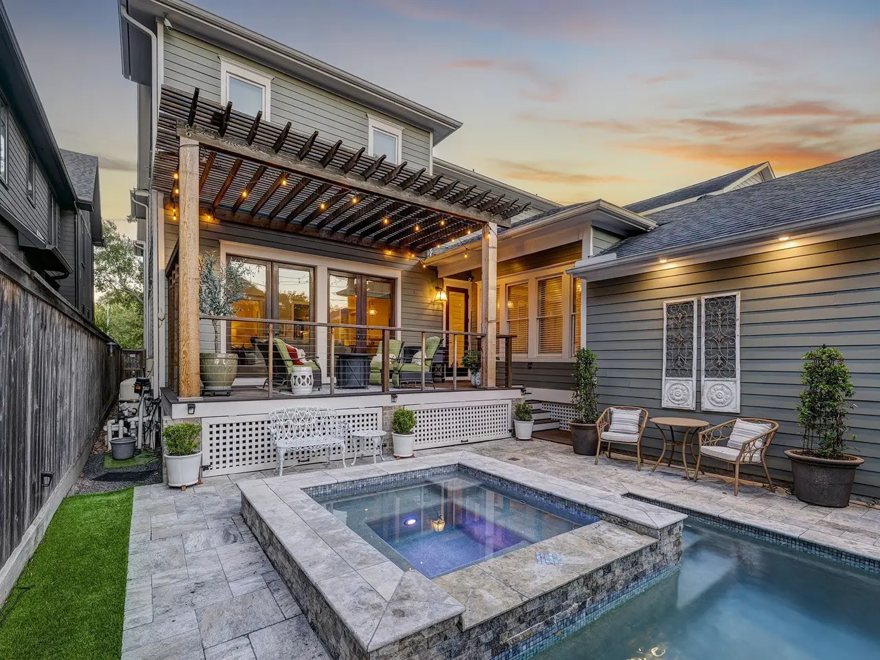 Spectacular Heights home features 4/5 bedrooms-4 baths, pool + primary bedroom down. Fully fenced. Hardwood floors, stunning light fixtures and plantation shutters/window treatments. Gourmet kitchen offers granite counters, island, s/s appliances and walk-in & butler pantries. Family room with vaulted ceiling is the perfect spot to enjoy everyday living. Dining room is set for holiday gatherings. Front living room is an ideal space to enjoy quiet conversations. Large study is a true home office. Primary bedroom suite with tray ceiling and sitting area is well-appointed with a spa-like bath with double sinks, soaking tub, walk-in shower and 2 two walk-in closets. Climate controlled wine cellar can house 300+ bottles. Upstairs includes a secondary bedroom with en suite bathroom, 2 other secondary bedrooms, hallway bath, gameroom with wet bar + media room. Backyard oasis with pool/spa, pergola/deck. Two car oversized attached garage. Extra off-street front parking w/ automatic gate.