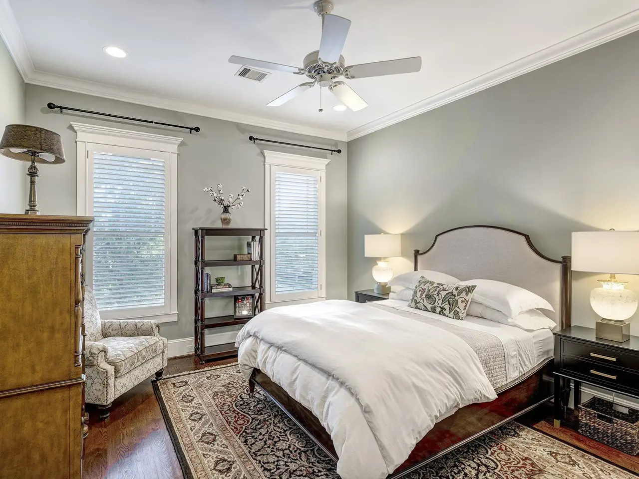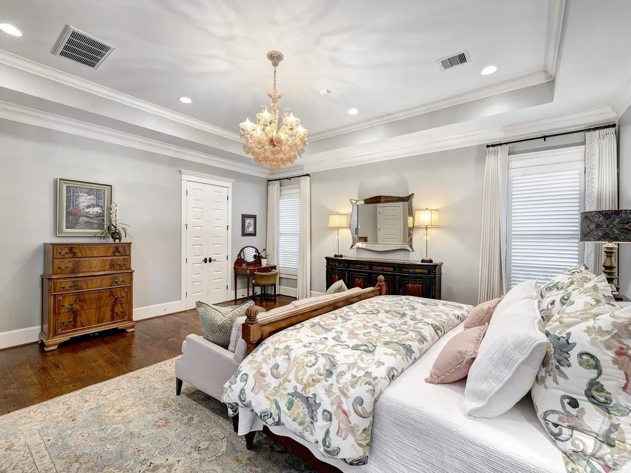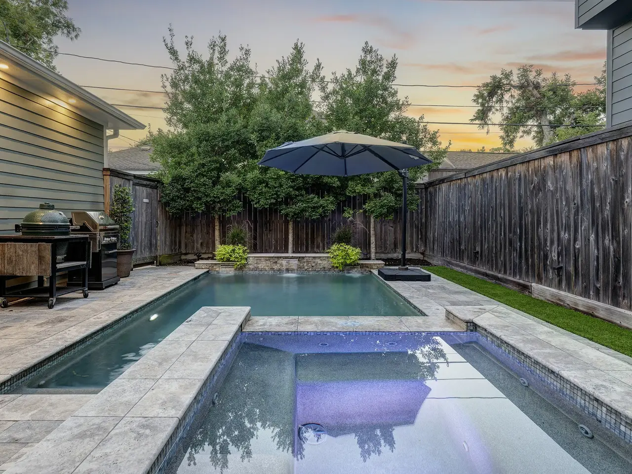 Spectacular Heights home features 4/5 bedrooms-4 baths, pool + primary bedroom down. Fully fenced. Hardwood floors, stunning light fixtures and plantation shutters/window treatments. Gourmet kitchen offers granite counters, island, s/s appliances and walk-in & butler pantries. Family room with vaulted ceiling is the perfect spot to enjoy everyday living. Dining room is set for holiday gatherings. Front living room is an ideal space to enjoy quiet conversations. Large study is a true home office. Primary bedroom suite with tray ceiling and sitting area is well-appointed with a spa-like bath with double sinks, soaking tub, walk-in shower and 2 two walk-in closets. Climate controlled wine cellar can house 300+ bottles. Upstairs includes a secondary bedroom with en suite bathroom, 2 other secondary bedrooms, hallway bath, gameroom with wet bar + media room. Backyard oasis with pool/spa, pergola/deck. Two car oversized attached garage. Extra off-street front parking w/ automatic gate.