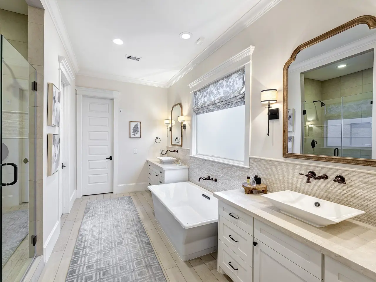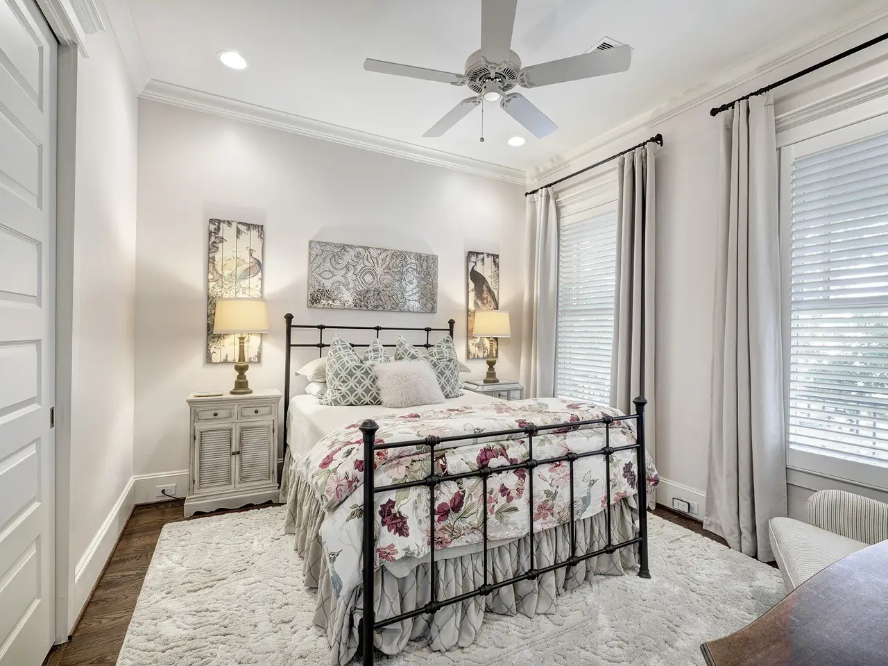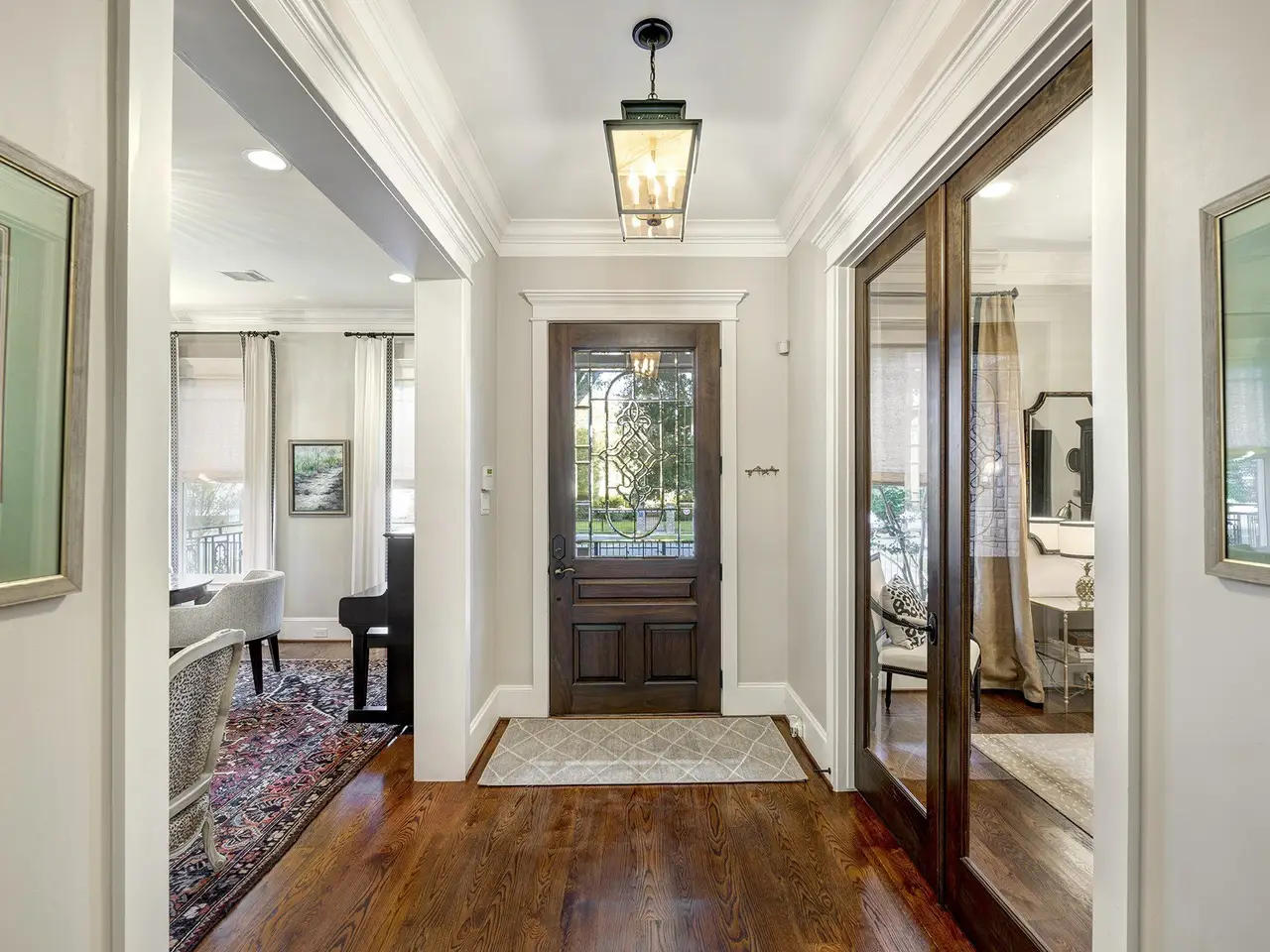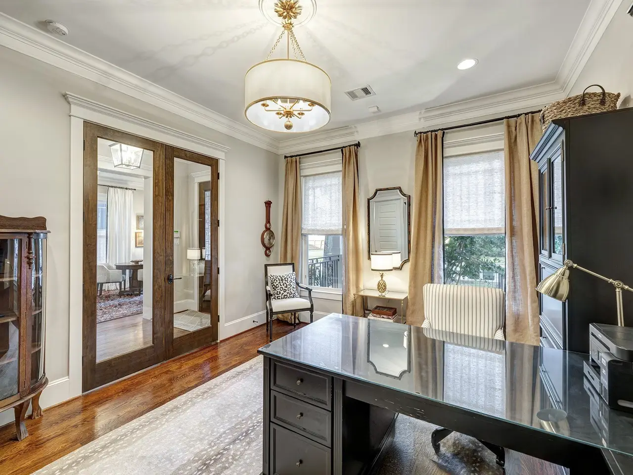 Spectacular Heights home features 4/5 bedrooms-4 baths, pool + primary bedroom down. Fully fenced. Hardwood floors, stunning light fixtures and plantation shutters/window treatments. Gourmet kitchen offers granite counters, island, s/s appliances and walk-in & butler pantries. Family room with vaulted ceiling is the perfect spot to enjoy everyday living. Dining room is set for holiday gatherings. Front living room is an ideal space to enjoy quiet conversations. Large study is a true home office. Primary bedroom suite with tray ceiling and sitting area is well-appointed with a spa-like bath with double sinks, soaking tub, walk-in shower and 2 two walk-in closets. Climate controlled wine cellar can house 300+ bottles. Upstairs includes a secondary bedroom with en suite bathroom, 2 other secondary bedrooms, hallway bath, gameroom with wet bar + media room. Backyard oasis with pool/spa, pergola/deck. Two car oversized attached garage. Extra off-street front parking w/ automatic gate.
