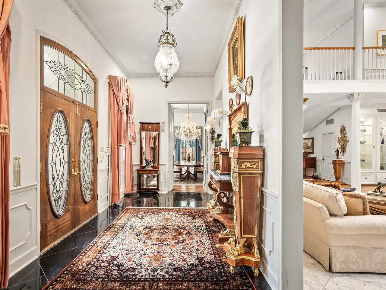 Stately, two story traditional home on a large 26,350 sqft(per HCAD) lot, ready for transformation. Expansive primary bedroom down with dual bathroom and closets. Formals, den, wet bar/butler's pantry, wine room with storage closet. Kitchen area has a large walk-in pantry, utility room, desk area and room for a dining table. Two staircases. Three bedrooms up, all with ensuite baths. Large game room(4th bedroom) up. Extra room up, could be home office/study. Swimming pool. Two driveways, enter and exit on Rocky River or Sage Rd. Parking court, 2 car garage, 2 car carport, extra parking. Private courtyards. Being sold in present condition. No repairs will be done. This is an opportunity to customize or create your dream home. All info per seller