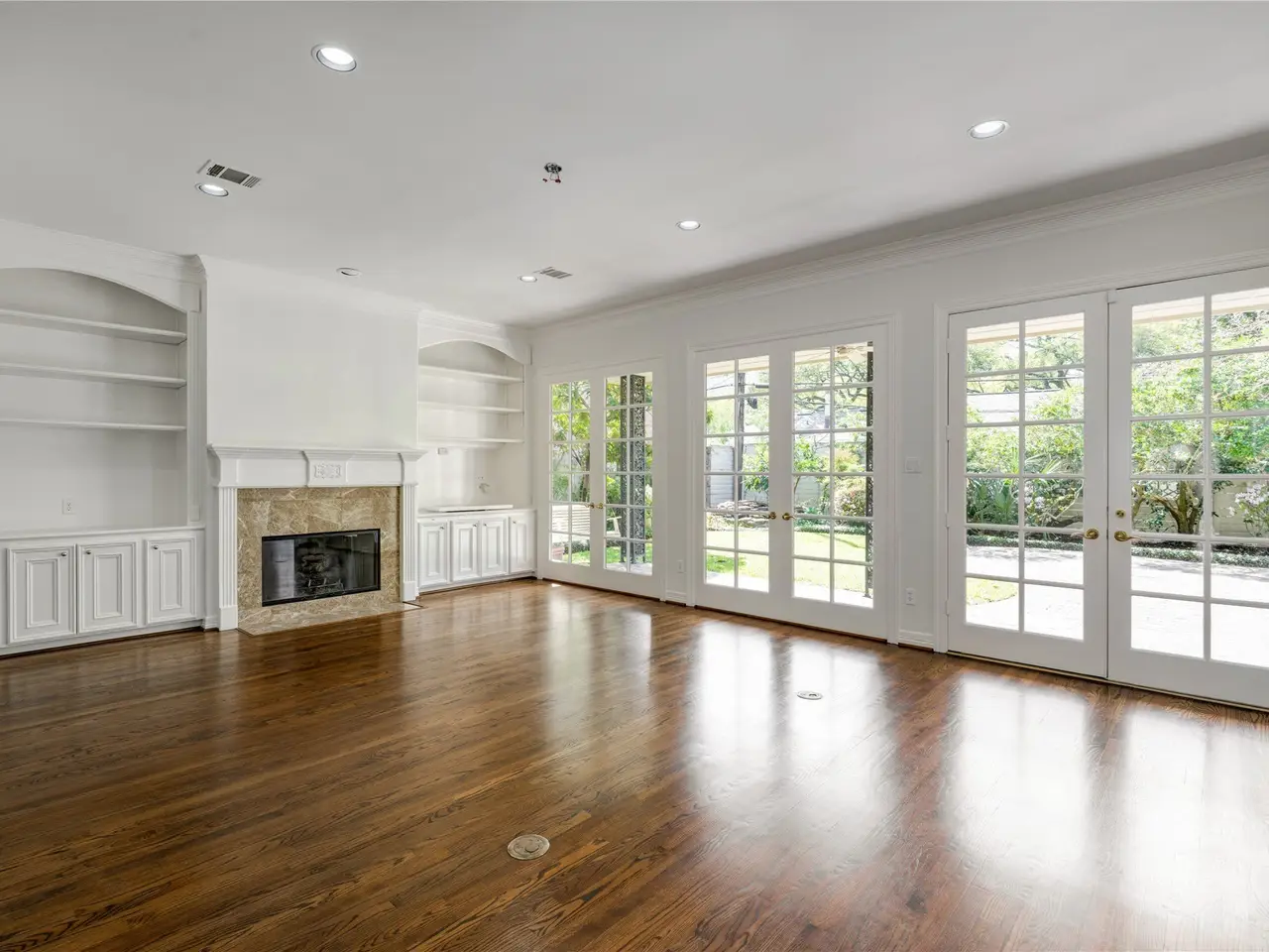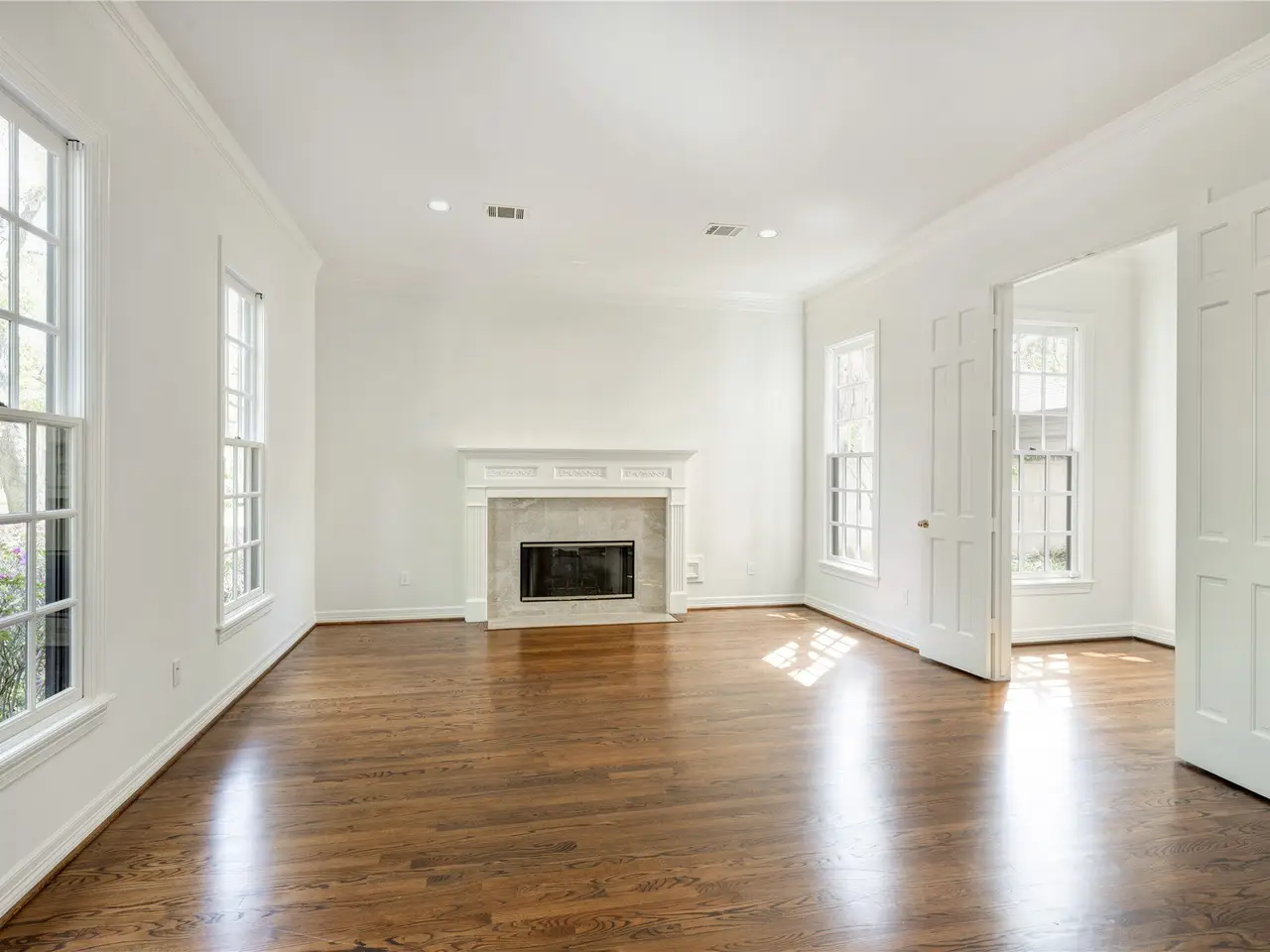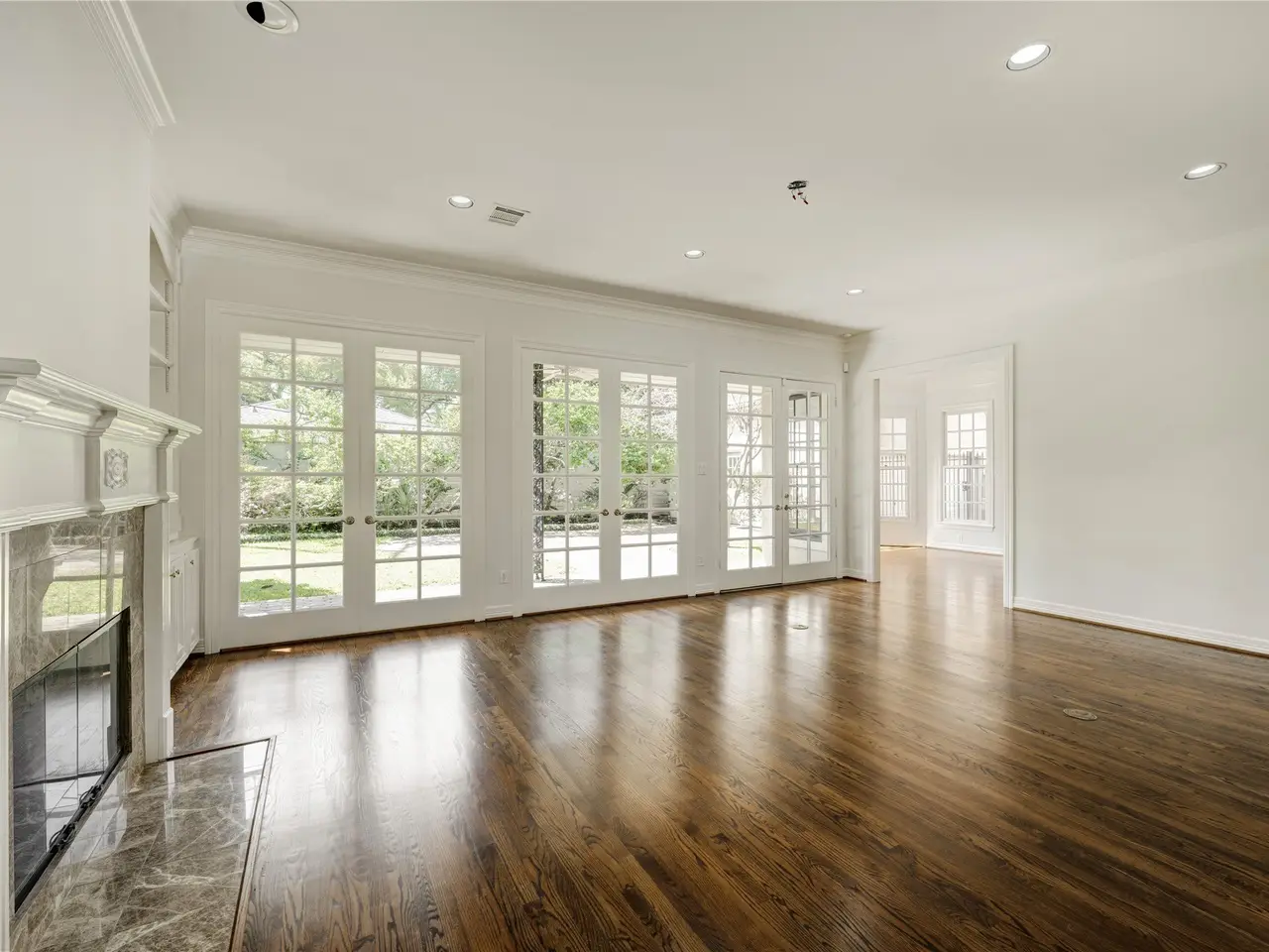 Floor-to-ceiling windows in family room