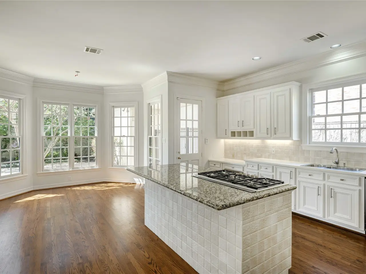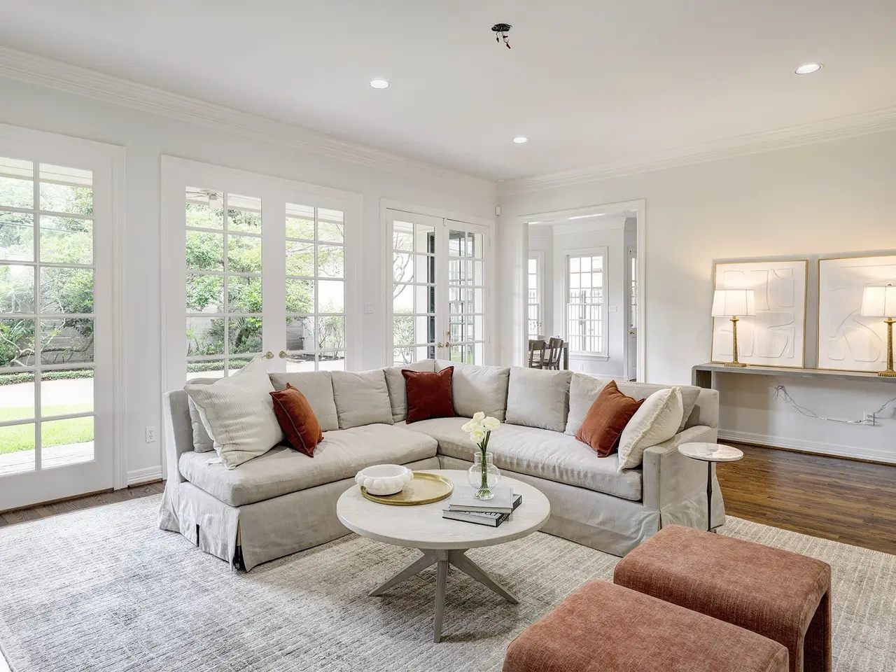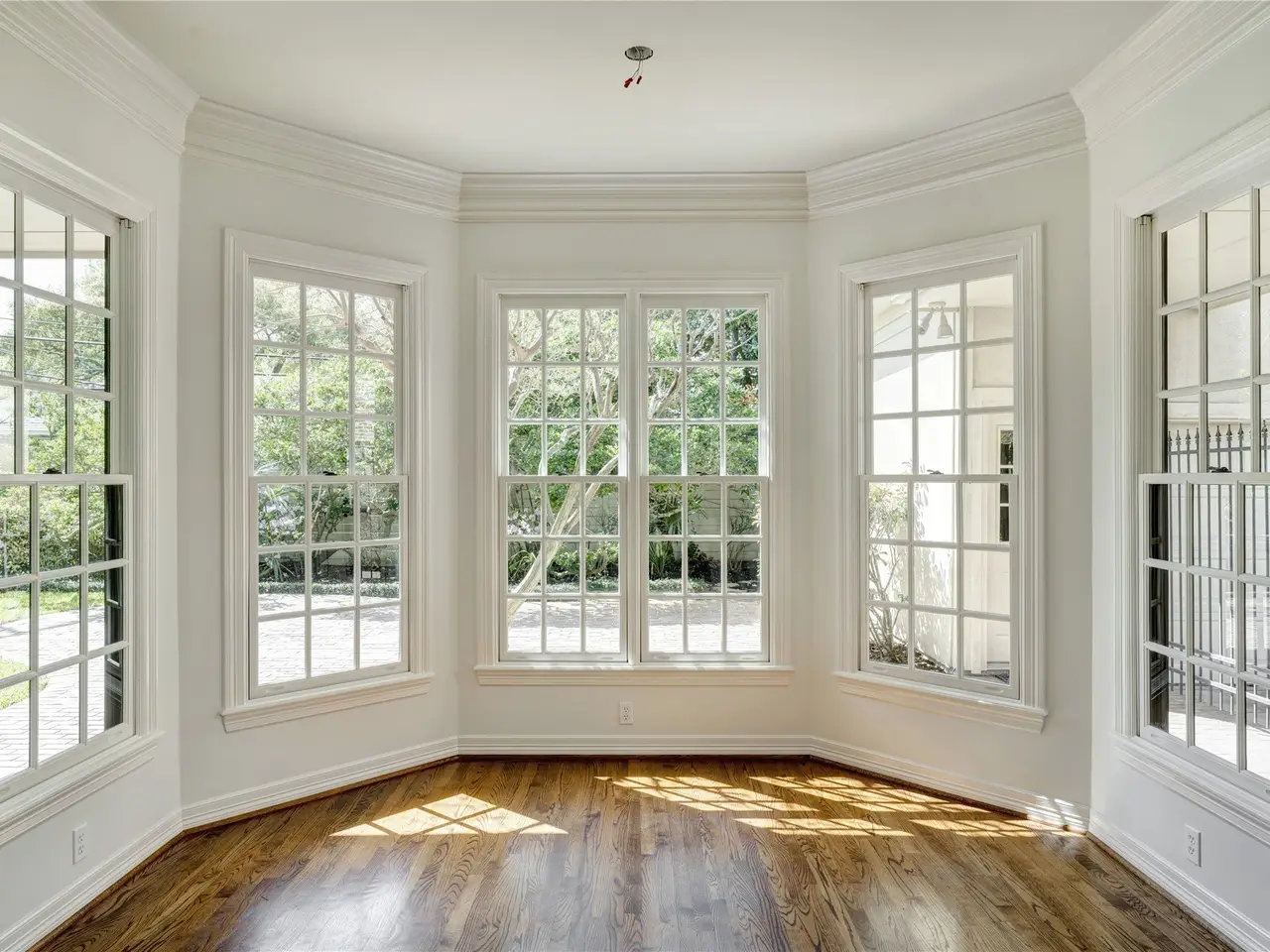 Floor-to-ceiling windows in family room