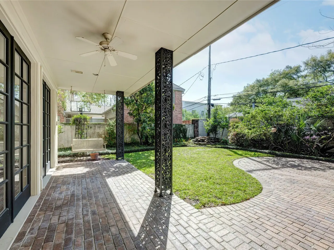 Spacious backyard with covered porch