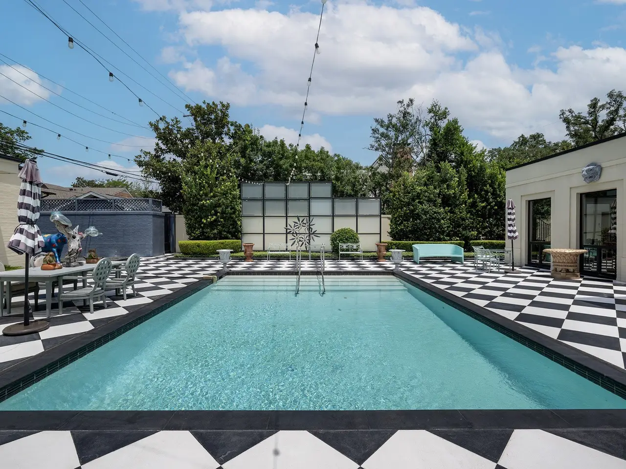 This stunning River Oaks home, initially designed by renowned architect John F. Staub, has been beautifully transformed. The first floor boasts light-filled rooms with expansive glass walls, offering views of lush gardens and an outdoor pool. The formal living and dining rooms are perfect for gatherings and feature ample wall space for art. The luxurious primary suite includes a spacious walk-in closet and dressing area. A sophisticated library and cozy sitting room provide quiet spaces, while the kitchen is discreetly tucked away. On the second floor, two additional bedrooms with en-suite baths ensure a welcoming environment for guests. The separate pool house features a full bath and a party room with an expanded bar, perfect for entertaining. The gardens are a masterpiece with lush turf, sparkling fountains, and whimsical ironwork sculptures. A private guest house with a mini kitchen and full bath adds convenience, and a full-house generator ensures peace of mind. All per Seller