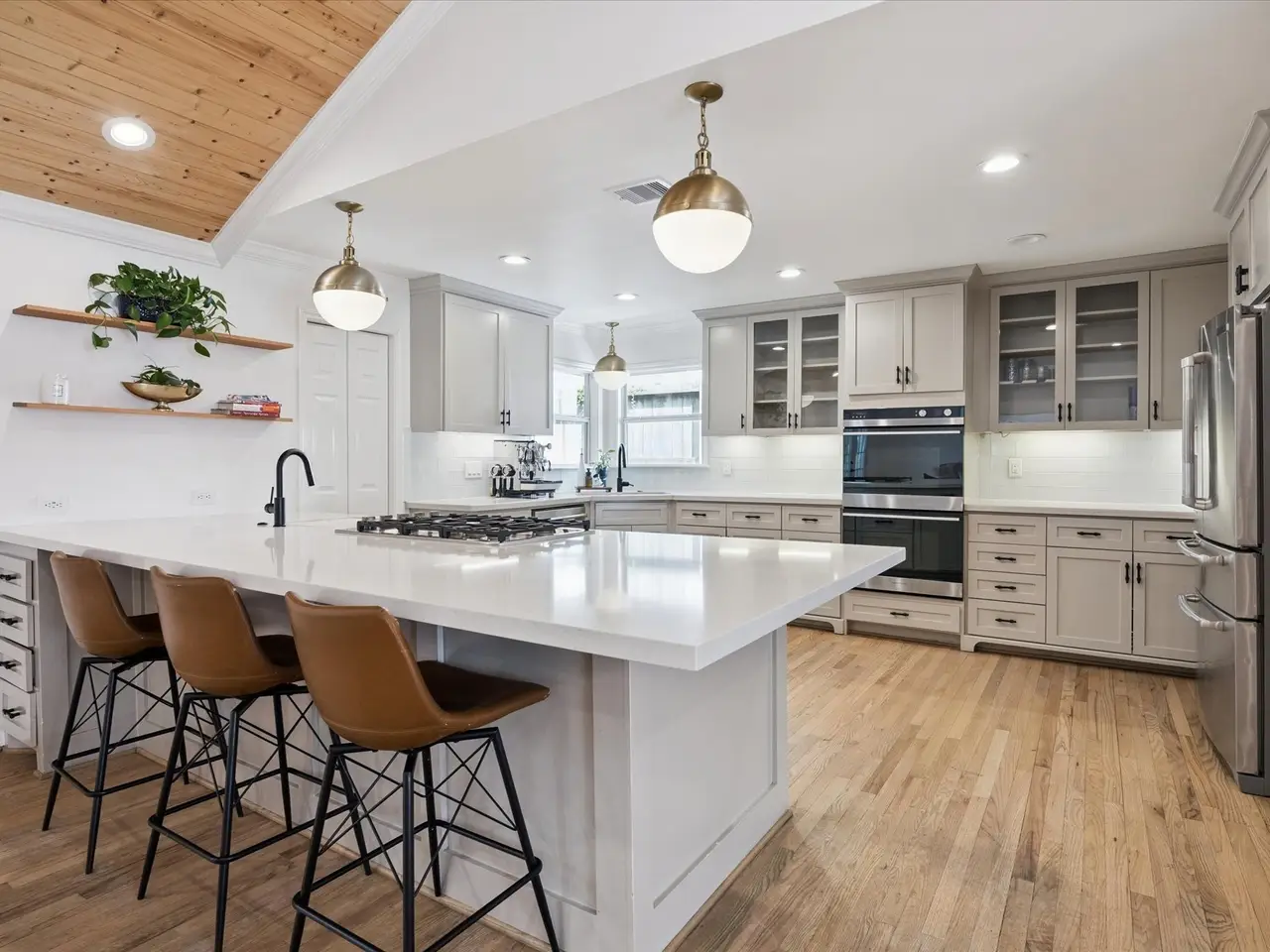Welcome to this stunningly re-imagined home in the heart of Timbergrove’s most popular section, situated in an idyllic community! Thoughtfully expanded, this home offers the perfect blend of modern style & timeless comfort. Open-concept layout w/ abundant natural light highlights the chef’s kitchen w/ double sinks & ovens, walk-in pantry & ample storage & counter space. The spacious living area & flexible bedroom space offer endless possibilities. Primary retreat features spa-like bath w/ storage & the 4 addtl room can be used for bedrooms, studio, flex or office space. Outdoor space offers room to relax or entertain & features outdoor kitchen w/ stone pizza oven. Low maintenance beautiful landscaping. Major renovations in 2022 include: plumbing, electrical, HVAC, roof, kitchen & roofline expansion. All info per Seller.