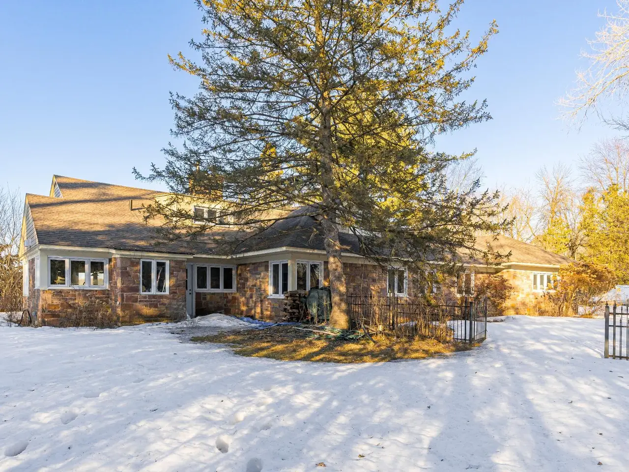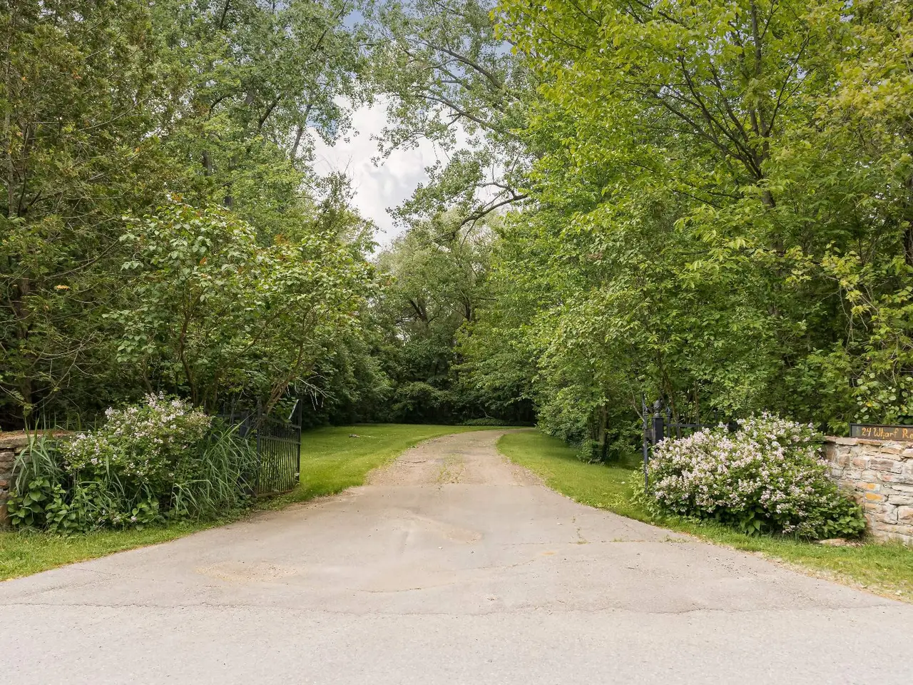 This 4 acre waterfront estate,offers an elegant 5-bedroom stone residence, and 257 feet of lakefront,with panoramic views overlooking the Hudson Yacht Club and Lake of Two Mountains.Nestled at the end of a quiet cul-de-sac,with a gated entrance and accessed via a long,winding,tree-lined drive,the property is within a short walking distance to the village.The residence has undergone $280,000 in renovations and features exquisite stone craftsmanship,hardwood flooring,panoramic windows,a grand wood-burning fireplace,designer kitchen,ground floor primary suite,professional landscaping & inground pool.The asking price is near municipal valuation.