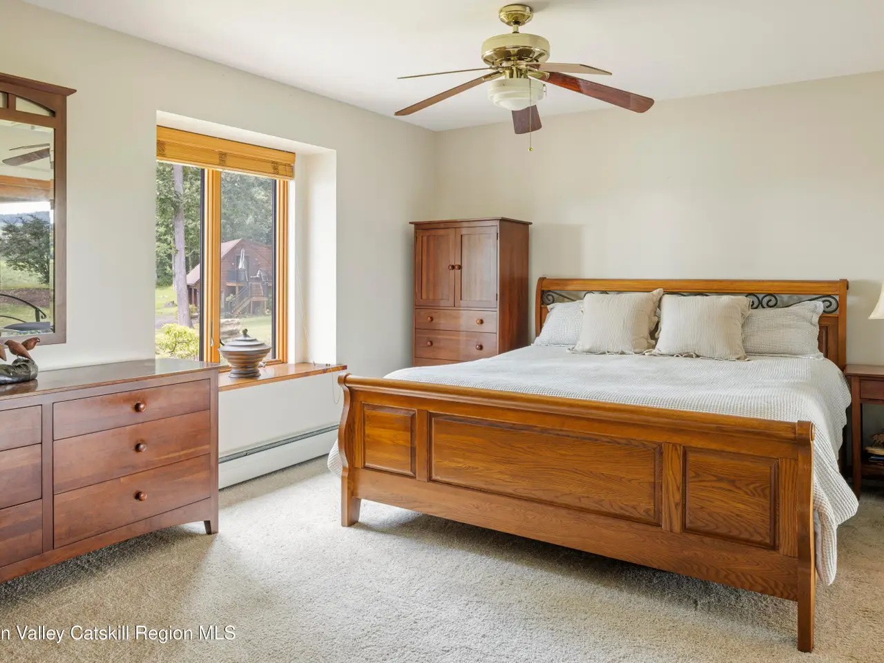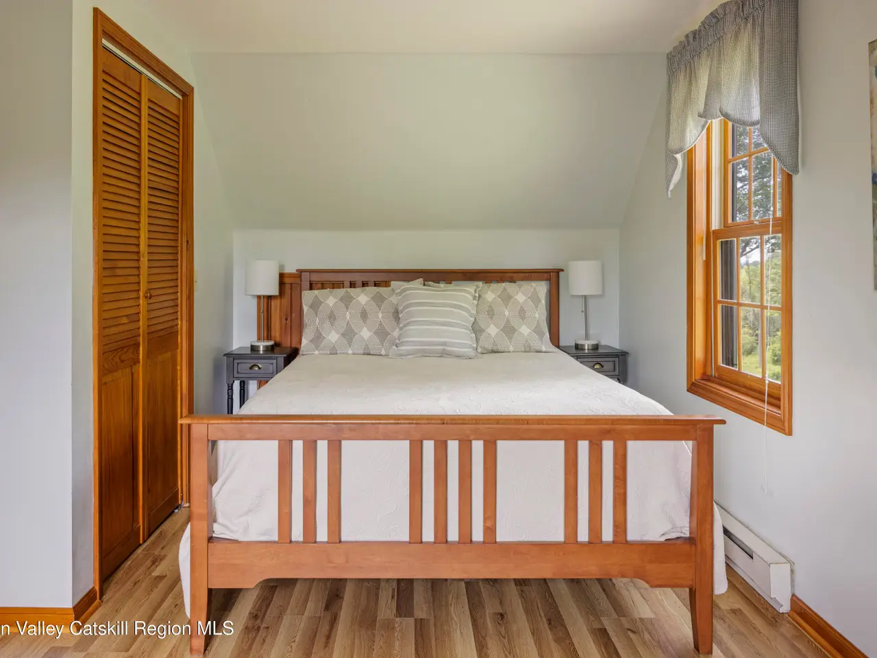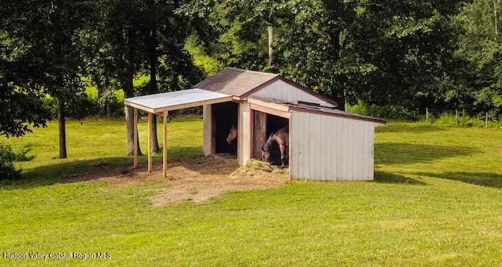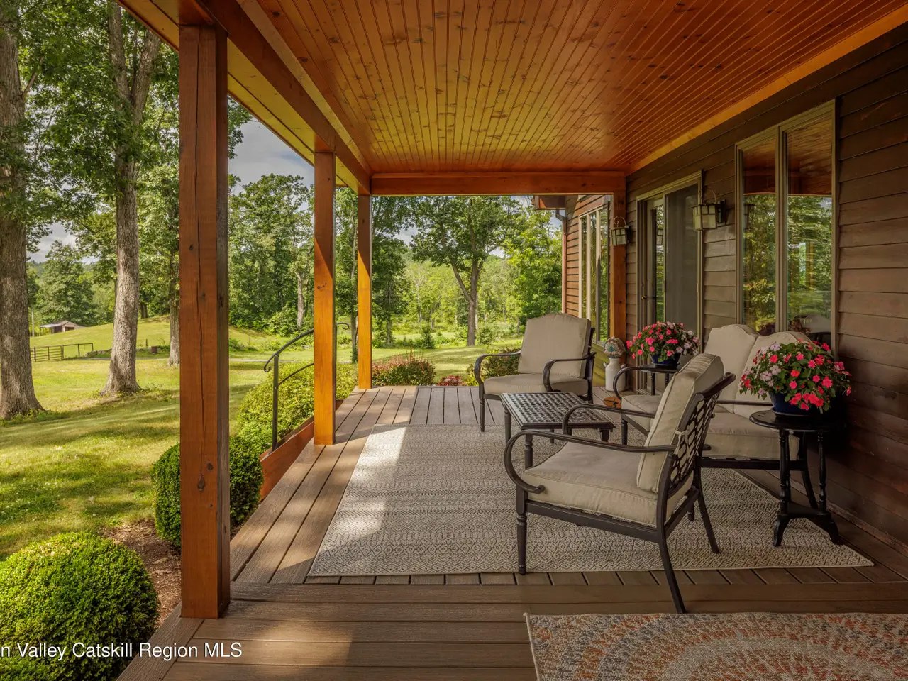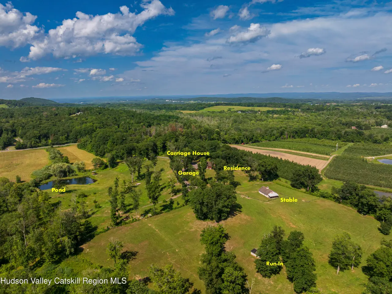 Introducing Long View Farm & Stable, a convenient yet tranquil Equestrian hide-way just minutes from the culture, shopping and dining of Hudson, New York. Long View Farm provides the perfect blend of Hudson Valley country serenity with an easy connection to Amtrak to New York City and Albany. A 1476,SF residence with detached two car garage, Coach house with a 576SF apartment and studio space, a six-stall stable, pastures and a picturesque swim pond with mountain and apple orchard views in all directions make this property exceptional. Situated at the crest of the 24-acre parcel is a 2-Bedroom, 2-Bath Adirondack contemporary residence with a ground level Primary Bedroom and Bath. Great open Living/Dining areas with wrap around windows, a soaring cathedral ceiling, and a wood burning stone fireplace with an overlook loft library. The two bedrooms are spacious and the dedicated Office/Library could easily be converted into a third bedroom. The surrounding land features mature perineal plantings and trees with a gently sloping lawn down to the pasture and barn. The panoramic ''pinch me'' views of the majestic Catskill Mountains and the surrounding rolling farmlands from every room are very captivating or take it all in with a morning coffee or relaxing at the end of day on the wrap-around porch taking in the view of the horses, ponds, surrounding orchards and the dazzling sunsets. Convenient detached 2-car garage for vehicles and gardening equipment. The separate Coach House offers 2.5 car garage with workshop, bathroom and laundry room on the ground level. Upstairs is a complete 1-Bedroom apartment that is currently used as an popularly booked AIRBNB.As a fully operational equestrian farm, Long View Farm & Stable boasts exceptional amenities including a 6-stall, 3200SF horse barn. Yellow Pine interior with two Cherry lined Stalls for foaling, four Oak lined stalls, a Yellow Pine interior tack room equipped with electric and water, Ample loft space for hay storage or office build out. There is also a double Run-In for shelter tucked away at the far end of the rolling pasture land. There is enough land for jumping, endurance or cross country courses, If you're an equestrian enthusiast looking for a versatile property with hospitality and boarding income opportunities, (or for an alpaca or llama enthusiast! ) Long View Farm & Stable offers unparalleled functionality, and charm. Come view this unique farm in one of Columbia Counties most sought after locations. And meet the current, very friendly, retired Thoroughbred residents, ''Renee'' and ''Queen of The Night''. Trailering convenience to HITS in Saugerties, Saratoga and Berkshire equestrian venues. Located under 2.5 hours from NYC.