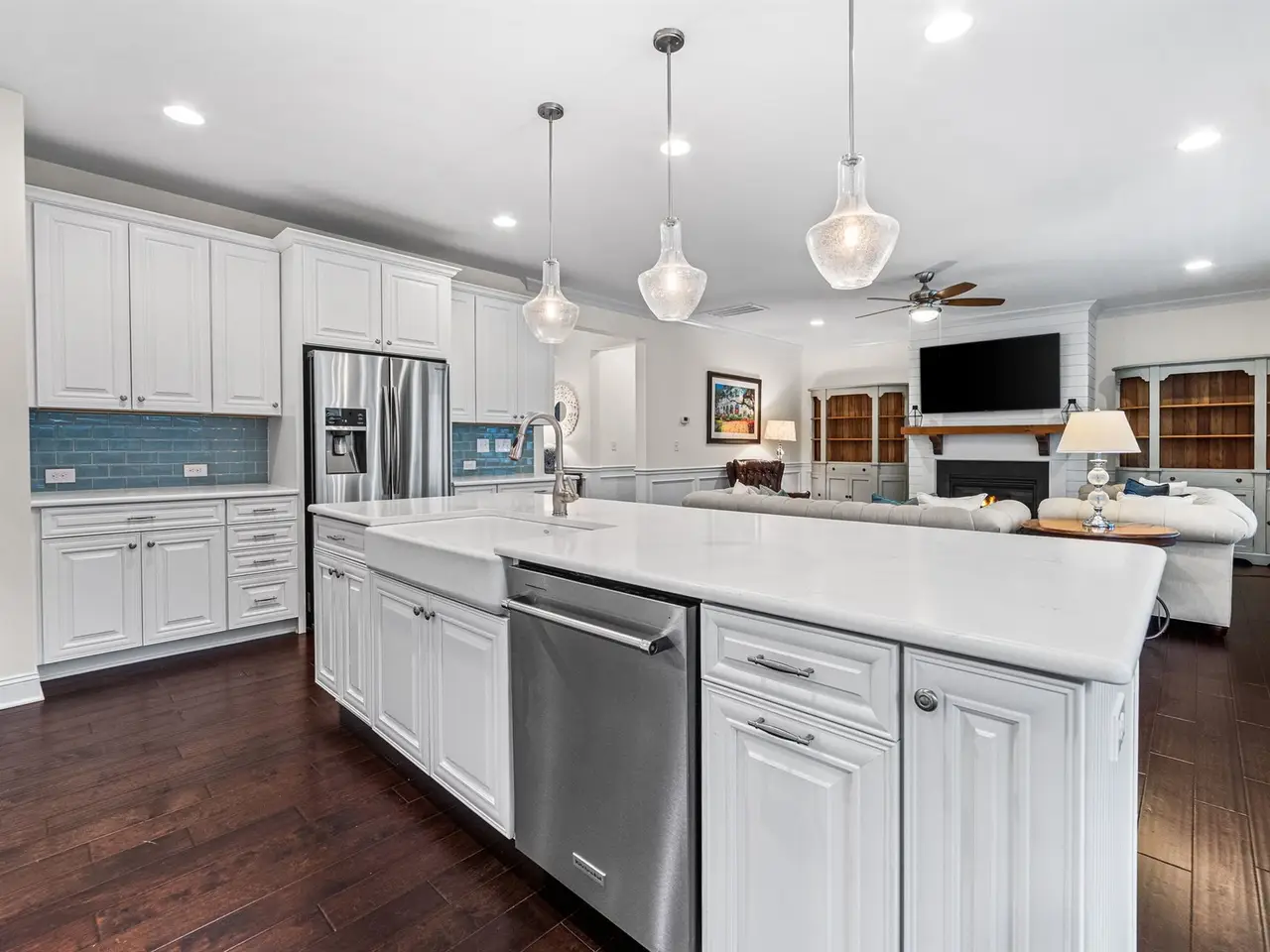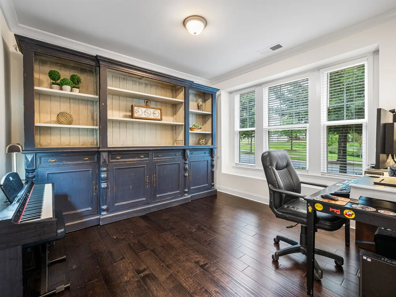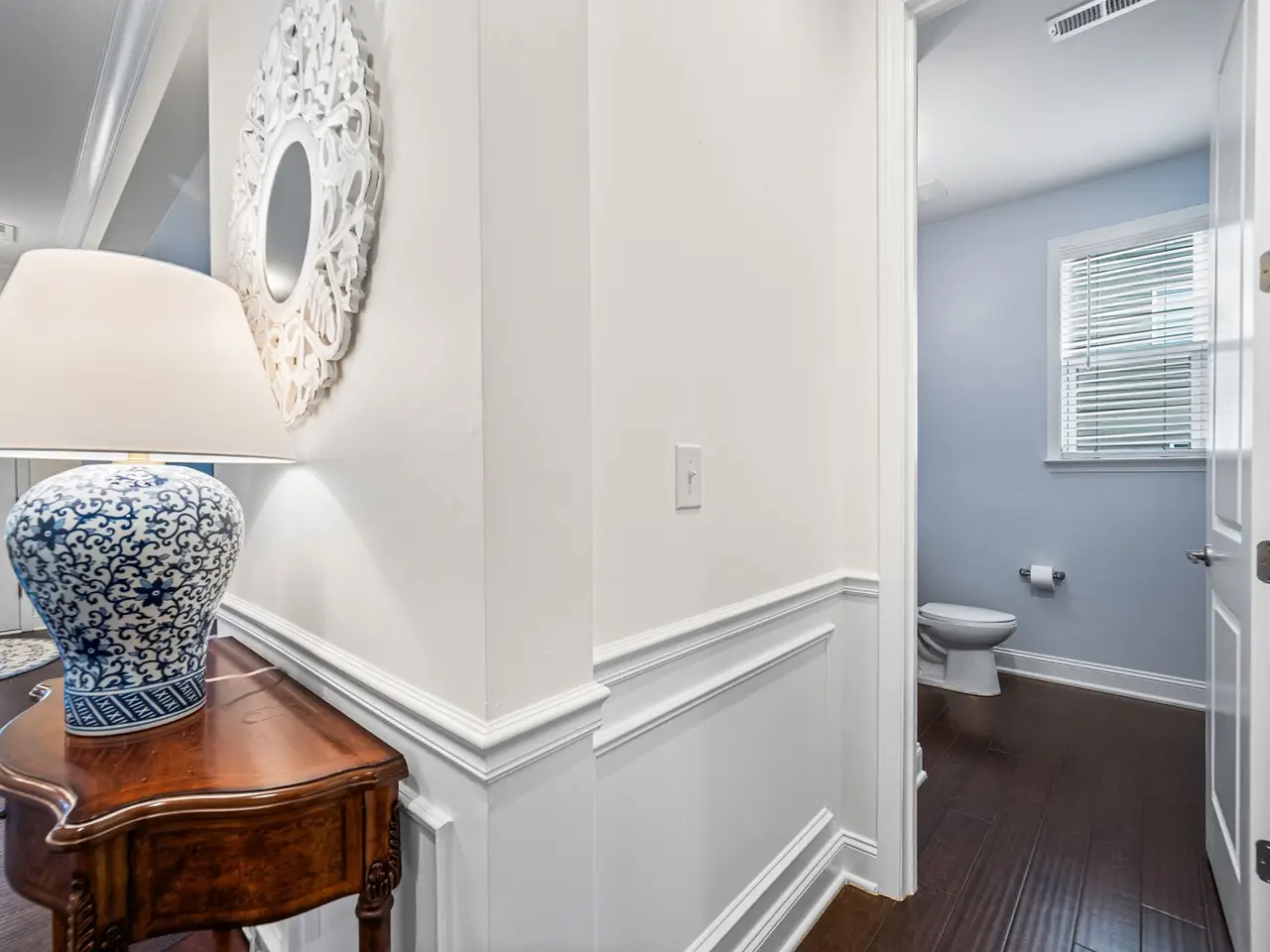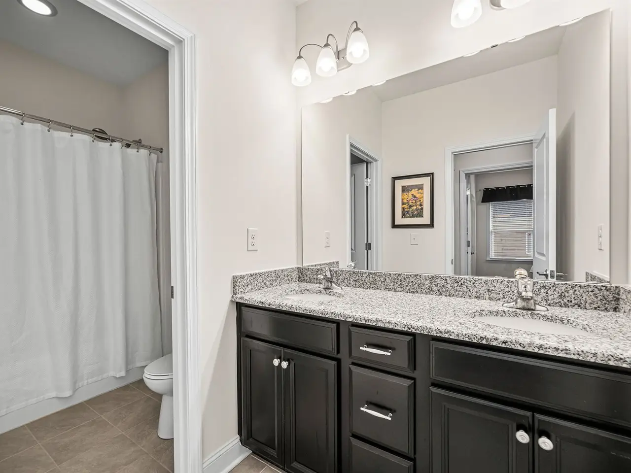 Gorgeous, meticulously maintained home in sought-after Cobblestone Manor! Premier lot backs to a serene common area with mature trees and sits directly across from the neighborhood pool. The open-concept layout offers a main-level guest suite, inviting great room, screened porch with patio access, dedicated office, drop zone, and a designer kitchen with oversized island, gas range, wall ovens, and walk-in pantry with custom glass door. High-end features include upgraded millwork, storm door, tankless water heater, in-wall pest system, extended front driveway and rear patio, custom fireplace with shiplap and mantel, fire pit, and sizable closets. Luxurious primary suite upstairs features dual walk-in closets, double vanities, and a soaking garden tub. Three additional bedrooms, including one with private en-suite, plus a spacious loft offer versatility. Exceptional outdoor living and refined interiors make this a rare opportunity in a prime location!