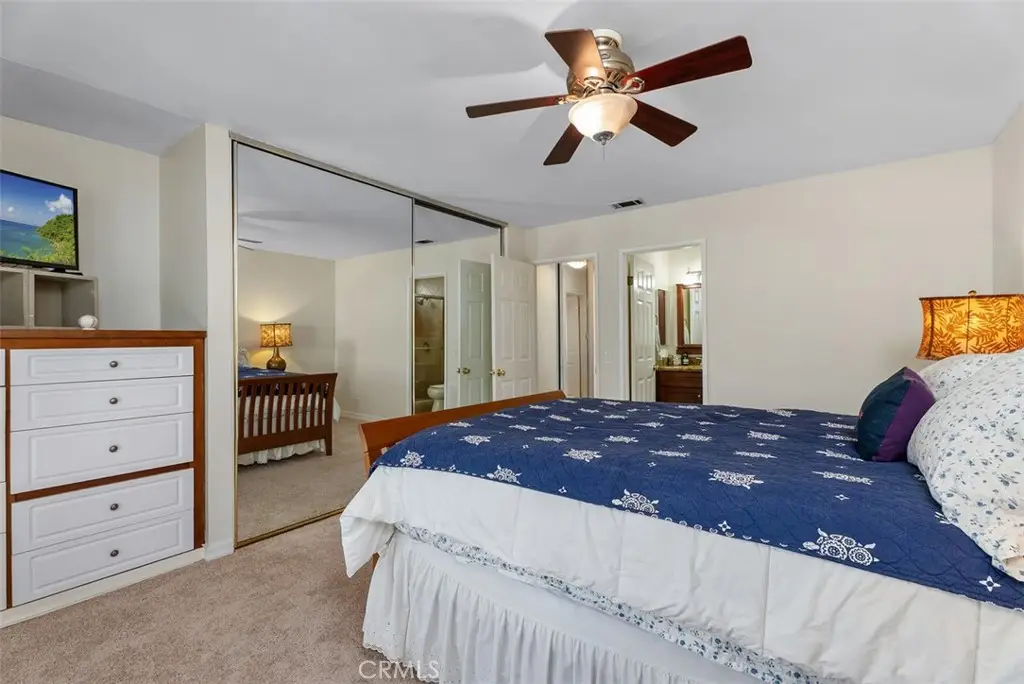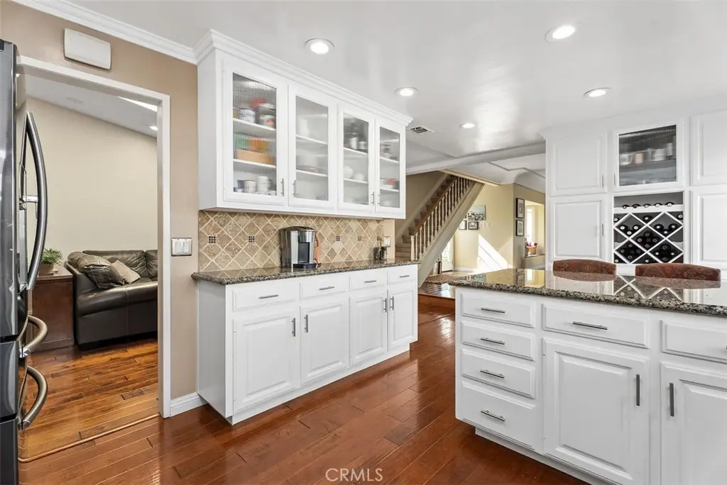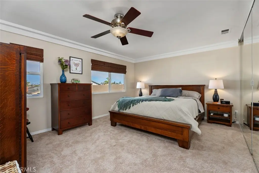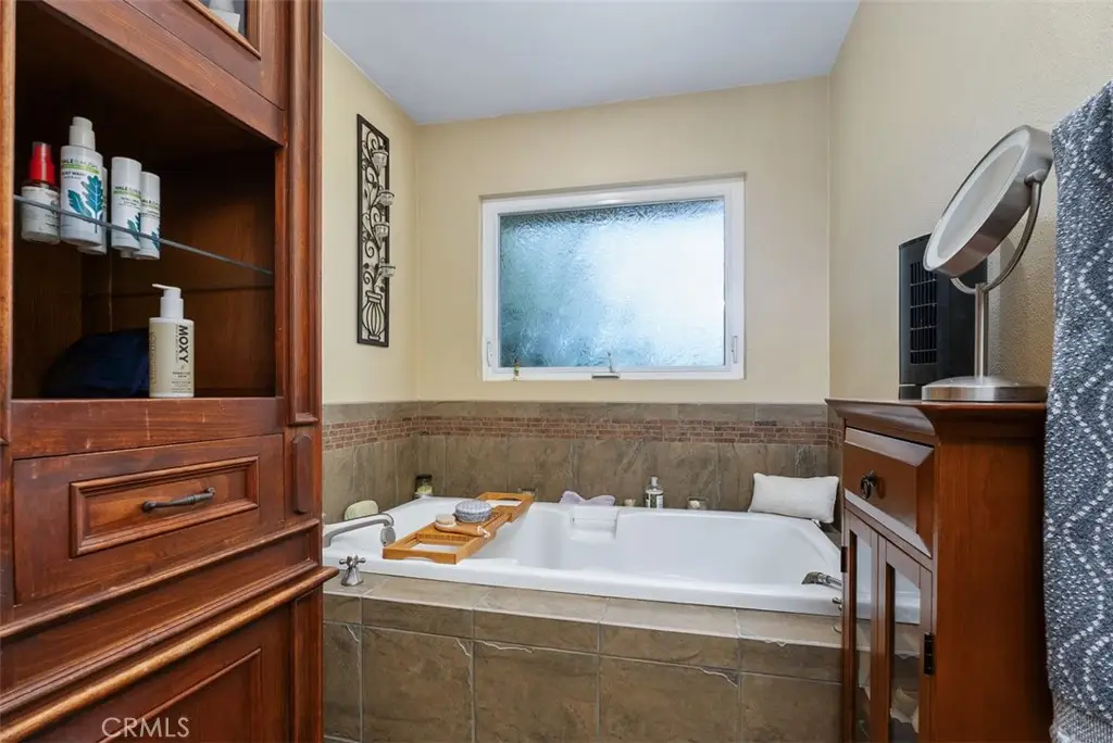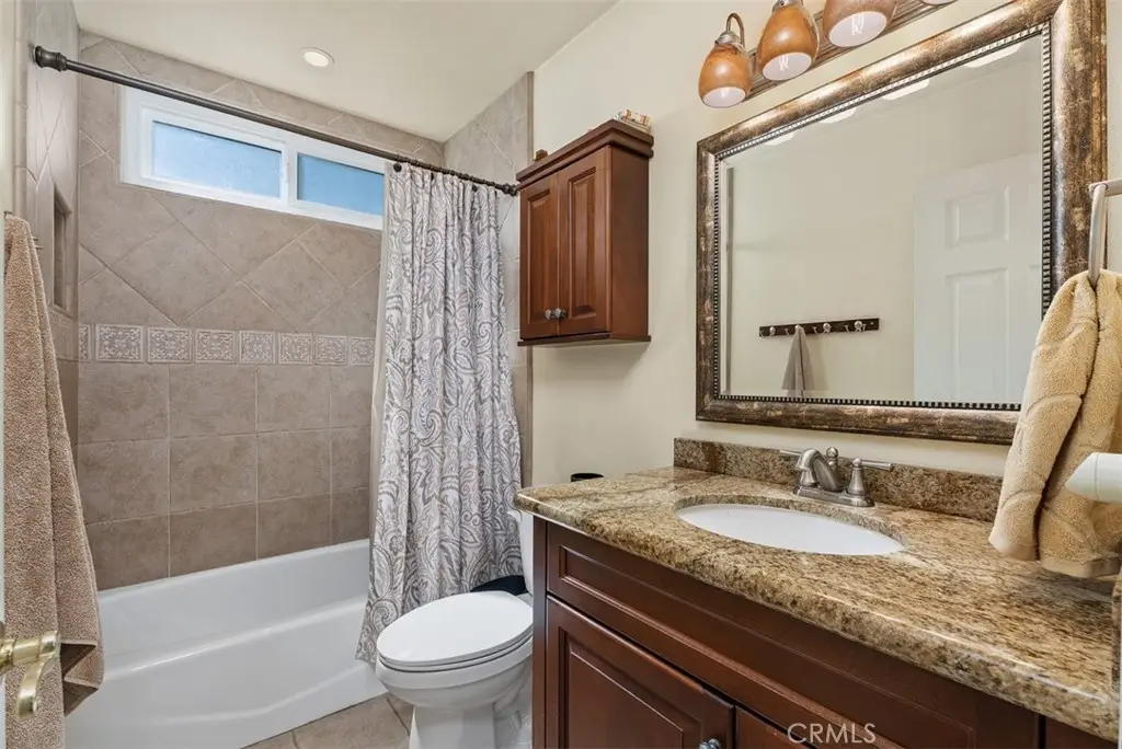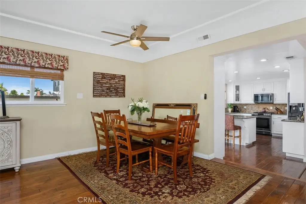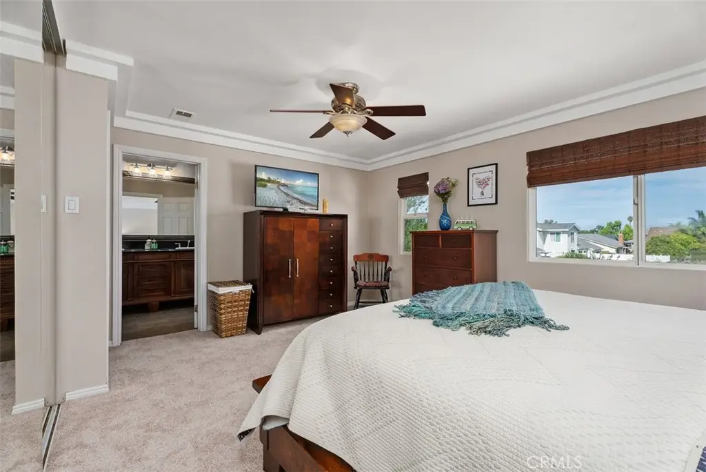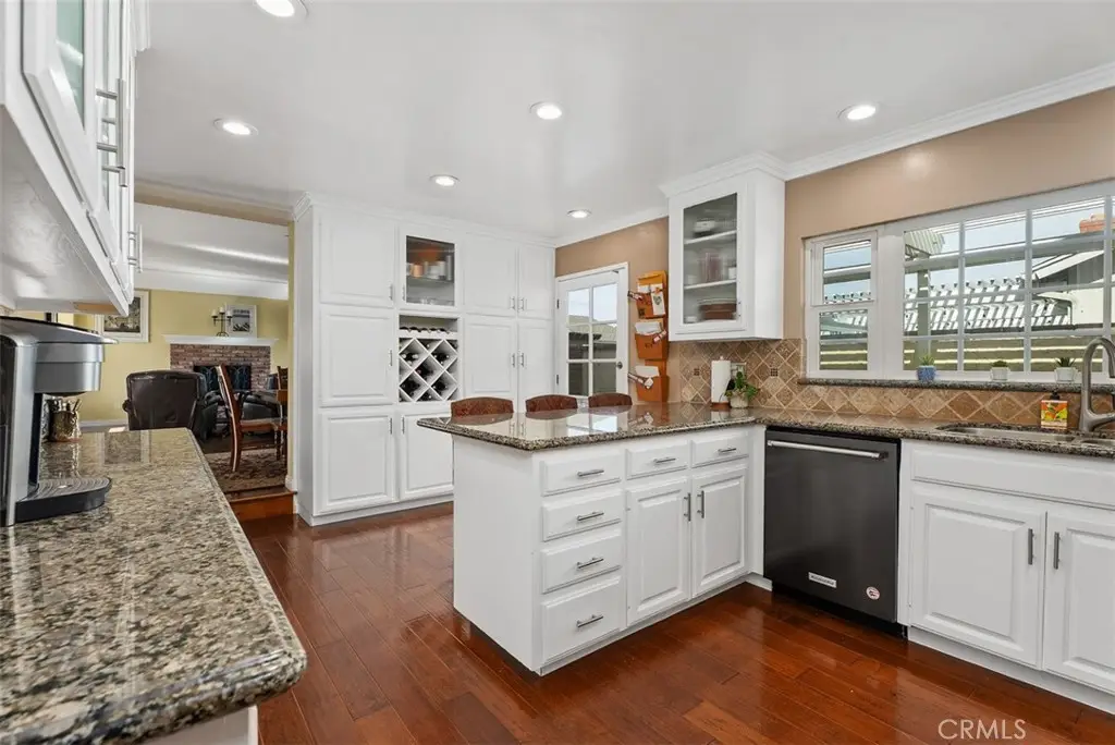 Welcome to Marilyn Drive, a home in the "Cal Classics" Community, offering the perfect blend of Coastal Charm and Multi-Gen function. Double-door entry onto the foyer opens up to Living area with soaring ceiling with skylight, gorgeous hardwood flooring and fireplace. Dining area off of kitchen flows onto Family Room, with another fireplace and door to the backyard. Large kitchen with granite countertops, white cabinetry complete with built-in wine storage, Five-Burner Range and so much space to cook, allowing for your inner culinary genius to shine. Kitchen Door to side yard allows for convenient al-fresco dining and year-round barbecues. The original layout was single-story, so there are Three Bedrooms and Two Bathrooms on first level- a home in and of itself, with a beautiful primary Bedroom suite with French Doors leading to covered backyard patio, complete with lighting and ceiling fan. But wait!! ... Stairs lead to a fabulous Upstairs Primary Bedroom Suite with walk-in closet and stunning spa-like bathroom with Custom-built double vanity, walk-in shower and separate air-soaking air-jet bathtub. This is a perfect home for Multi-Generational Living. Situated on a cul-de-sac, there are no HOA's, and home is Solar equipped. This neighborhood is praised for its peaceful streets and close proximity to schools, beaches, Bolsa Chica Wetlands, Meadowlark Golf Course and Huntington Harbor. This home and this hood... the boxes are all checked!