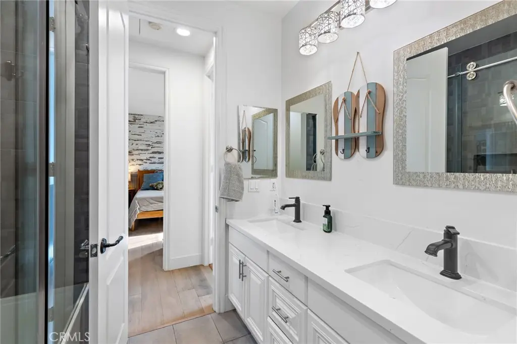 This stunning home, nestled at the end of a quiet cul-de-sac in a desirable gated community, offers unparalleled privacy and tranquility. With 4 spacious bedrooms and 3.5 bathrooms, the home provides the perfect balance of comfort and functionality. The open-concept family room, bathed in natural light, features a sleek, built-in entertainment center, ideal for relaxing or entertaining. High ceilings and large windows enhance the bright, airy feel throughout. Two primary suites offer private retreats, each with its own ensuite bathroom. The property backs directly to Greer Park, with no neighboring properties next to it, ensuring a serene and secluded environment. The two-car attached garage adds convenience and extra storage. Outside, enjoy an expansive backyard with an in-ground spa, firepit, and towering trees that enhance your privacy. Residents also have access to the community's association pool, completing this luxurious, private retreat.