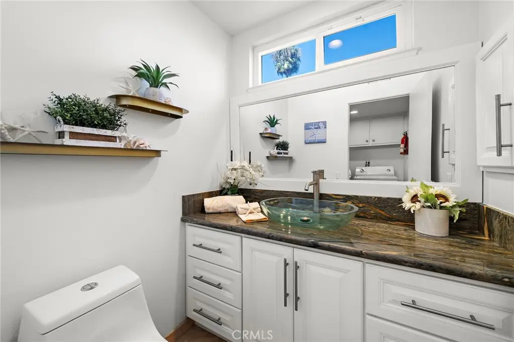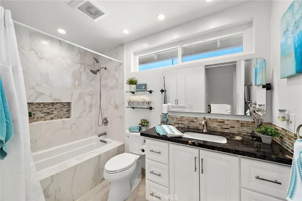 Beach-Close and Beautifully Upgraded! Nestled on a Spacious 7,222 sq. ft. corner lot, this 4-bedroom, 2.5-bath home offers 1,943 sq. ft. of Inviting Living Space designed for Comfort and Style. From the moment you enter, you're welcomed by Soaring Vaulted Ceilings in the Living Room, including several Possini Italian Light Fixtures all that create an Open, Airy feel leading to the Spacious Dining Room and 4th Bedroom which is currently used as an office/den. The thoughtfully Remodeled Kitchen features Rich Custom Wood Cabinetry, Brazilian Quartz Countertops, and High-End Bosch built-in appliances + Wine Cooler--perfect for the home chef and ideal for entertaining. Every bathroom in the home has been Updated with Modern finishes including Quartz/Granite Countertops, Soaking Tub with Custom Surround, Custom Vanities & Cabinetry & Dual Shower Heads. The Primary Suite feels like a Spa Retreat, complete with Dual Vessel Sinks set in Granite, Sleek Fixtures, and a Custom Tile Walk-in Shower with Frameless glass enclosure. The additional Upstairs Bedrooms feature all New Carpeting, Mirrored closet doors and tons of Natural light. The Outdoor Space is just as impressive. The Private backyard is surrounded by lush, mature landscaping that provides a tranquil setting for gatherings or quiet relaxation. The Oversized driveway adds incredible flexibility with the potential for RV storage, extra cars, or space for your favorite toys. Located just minutes from the beach, community garden, shopping, dining, and top-rated schools, this home blends everyday convenience with coastal living.