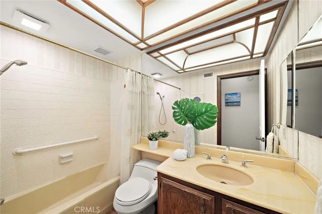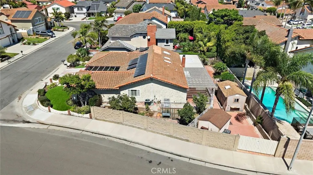 Welcome to this highly sought-after Goldenwest Estate single-story home nestled on a prime 7,200 sq ft corner lot just minutes from the beach. With 3 bedrooms, 2 bathrooms, and approximately 1,765 sq ft of living space and paid-off solar panels installed 2016! Step through the gated front courtyard, an inviting space perfect for morning coffee or quiet evenings, and into the spacious open-concept floor plan. The living space is lined in Mexican style tile and creates continuity of indoor and outdoor living. Vaulted ceilings and skylights fill the large living room with natural light, while an arched fireplace creates a warm centerpiece for gatherings. The adjacent family room / flex space is ideal for a home office, playroom, or hobby area, giving you the flexibility to make the space your own. The generous kitchen granite countertops, new gas range cook top, tons of work space including a separate utility sink. The kitchen and dining room provide plenty of room for customization and flow seamlessly to the outdoor living area, making this home an entertainer's dream. Step outside to your private backyard retreat featuring lush landscaping, a covered patio, and a built-in BBQ served by natural gas -- perfect for hosting evening dinners or weekend get-togethers. Beyond the main yard, you'll find unique features that set this property apart: a gated RV driveway with electric gate, a work shed equipped with electricity, and even a wine-making shed along with fruit producing mandarin orange, lime and persimmon trees. You'll find a large side yard perfect for gardening or playset, the possibilities are endless! - truly a rare find. Inside, all three bedrooms are generous in size, while the primary suite offers direct access to the backyard, a spacious walk-in closet, and a custom bathroom complete with a Japanese style bathtub and shower. Additional highlights include central A/C, dual pane windows and sliders, new roof 2016, termite tenting Aug. 2025 and direct garage access with laundry hookups for ultimate convenience. Located on a quiet interior street, this home offers the perfect balance of comfort and convenience. Enjoy being within walking distance to the neighborhood park, just a short drive to world-class beaches, and minutes from top-rated schools, shopping, dining, and entertainment.
