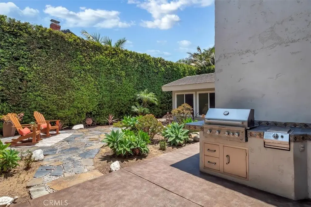 Welcome to this spacious 5-bedroom, 3-bathroom, 2-story home close to the beach, the Wetlands and the harbor. A private entry courtyard offers a tranquil oasis to relax and unwind. As you step through the double door entry, you'll be greeted by soaring high ceilings and an abundance of natural light. The main level features one bedroom and a full bathroom, complemented by a gracious living room, formal dining area with french doors to the backyard and built in BBQ, a chef-inspired kitchen boasting a large island and breakfast nook, both with ample storage and a wall of pantry with convenient pull-out shelves. The kitchen seamlessly opens to a cozy family room with a fireplace, perfect for gatherings. Additionally, this home includes a generously sized bonus room on the main floor, offering versatility for use as a media room, play area, home gym or a 6th bedroom if needed. Upstairs, discover the primary bedroom retreat complete with a walk-in closet and an en-suite bathroom featuring double sinks, a soaking tub, and a separate walk-in shower for ultimate relaxation. There are 3 more bedrooms on this level with the two front bedrooms offering access to a spacious balcony that extends gracefully over the 3-car garage, providing even more outdoor space. This thoughtfully designed home with spacious layout and prime location is ideal for comfortable living and entertaining both indoors and outdoors.