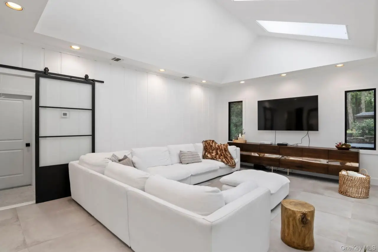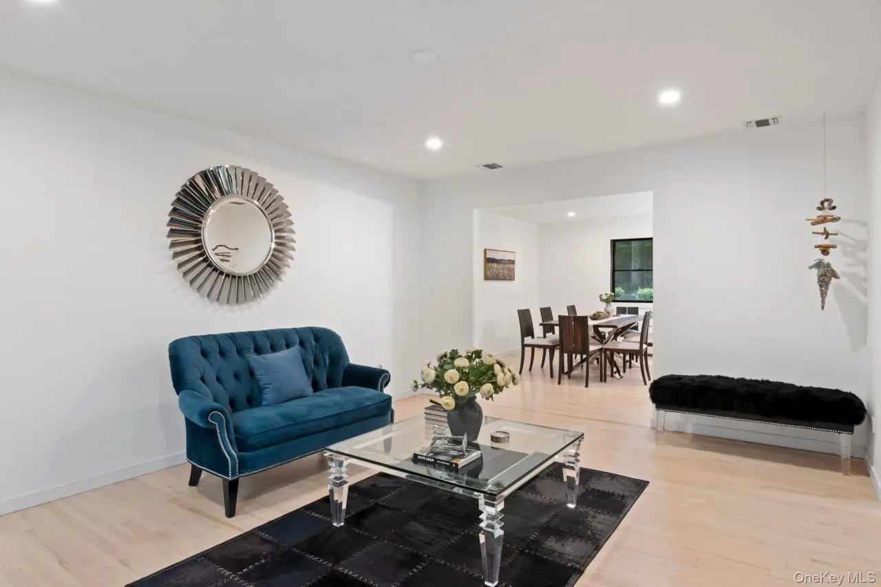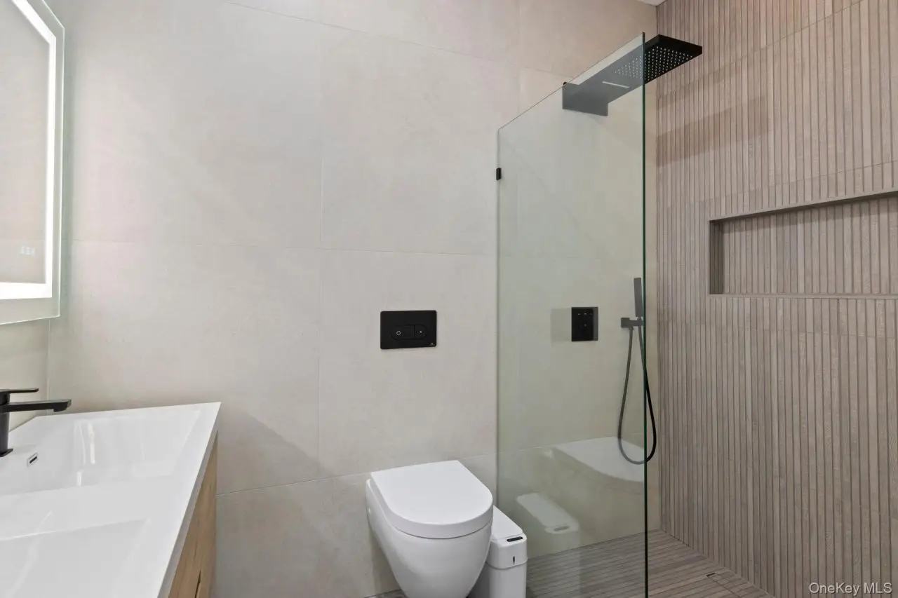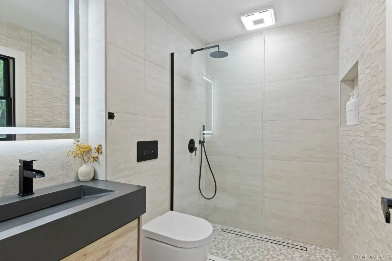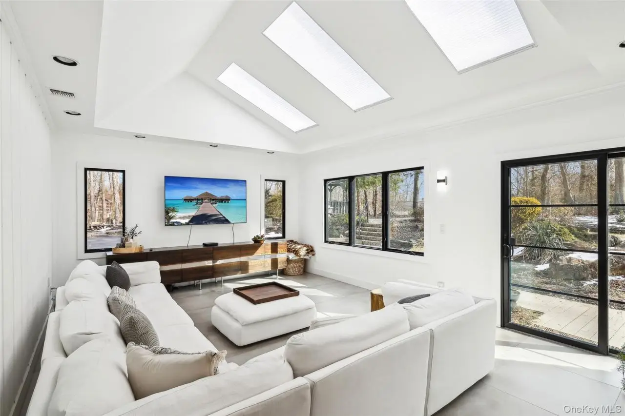 Newly renovated Modern ranch sitting on 1.2 acres offers a perfect blend of privacy and contemporary charm. Sweeping driveway lined with mature trees and lush greenery gradually reveals the home. Radiant heated polished concrete finish-flooring throughout, High quality elements chosen for its beauty, functionality. Executive Gourmet kitchen is a chef's dream, complete with flat front custom cabinetry, stainless steel appliances, and a large center island that's perfect for both meal prep and casual dining. Large windows and four sliding glass doors blur the line between indoor and outdoor living, opening onto a grand private backyard decks and patio. The spacious family living area, with dramatic ceiling height and 3 skylights, offers a perfect spot to unwind, while French sliding glass doors lead to a large patio-ideal for entertaining or enjoying quiet moments overlooking the sprawling, manicured grounds surrounded by specimen trees and shrubs. Spa like Bathrooms, designed to evoke a sense of calm and luxury, these bathrooms feature floor-to-ceiling custom porcelain tiles, textured stone accents add depth and a natural touch. The walk-in showers, complete with horizontal linear drains and no doors, offer an open, airy feel. Built-in shelving provide convenient storage, keeping your space organized and clutter-free peaceful retreat from the stresses of daily life. Adding to the modern aesthetic are wall-hung toilets with sleek wall-mounted push-button flush systems. Fog less LED mirrors with built in Bluetooth above the walnut vanities ensure a clear reflection at all times. The lower level boasts 8 Ft ceilings and beautifully finished ample living space, ideal for an entertainment media area, large gym and a private guest suite with a modern bathroom that exudes spa-like tranquility with sleek fixtures including a heated towel warmer and a luxurious Jacuzzi tub, its the perfect place to unwind after a workout with separate service entrance. Central Vac System throughout. Oasis outdoor living and future expansion potential. Come home to one level + of all new renovated Modern elegance in a secluded setting of Luxury, privacy. Close to beaches, transportation, parks, highways, village, schools, restaurants and unlimited shopping location. You have arrived in unparalleled Luxury, location, design and space here. Appearance is Diamond at this residence.