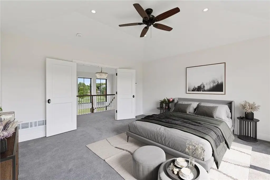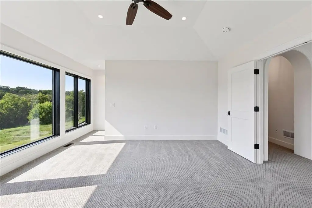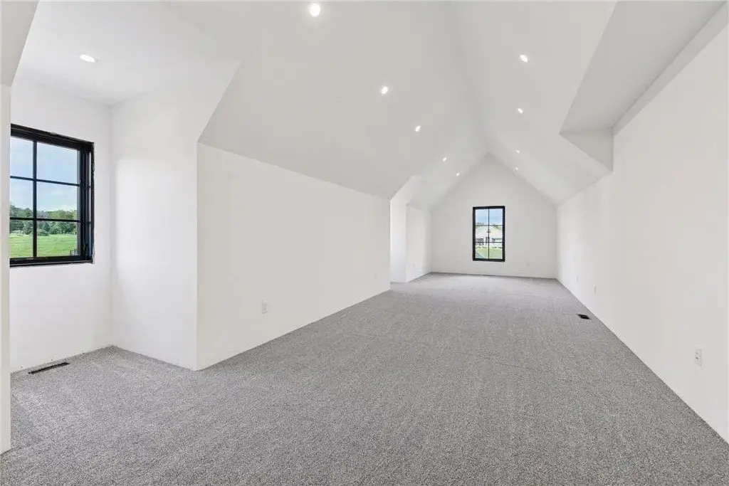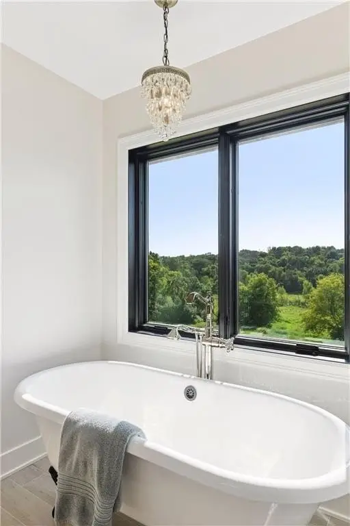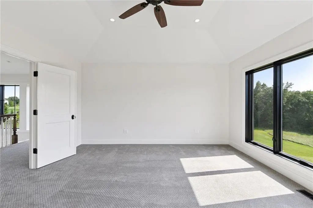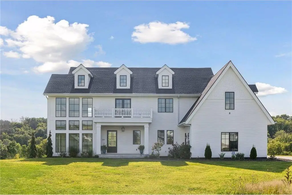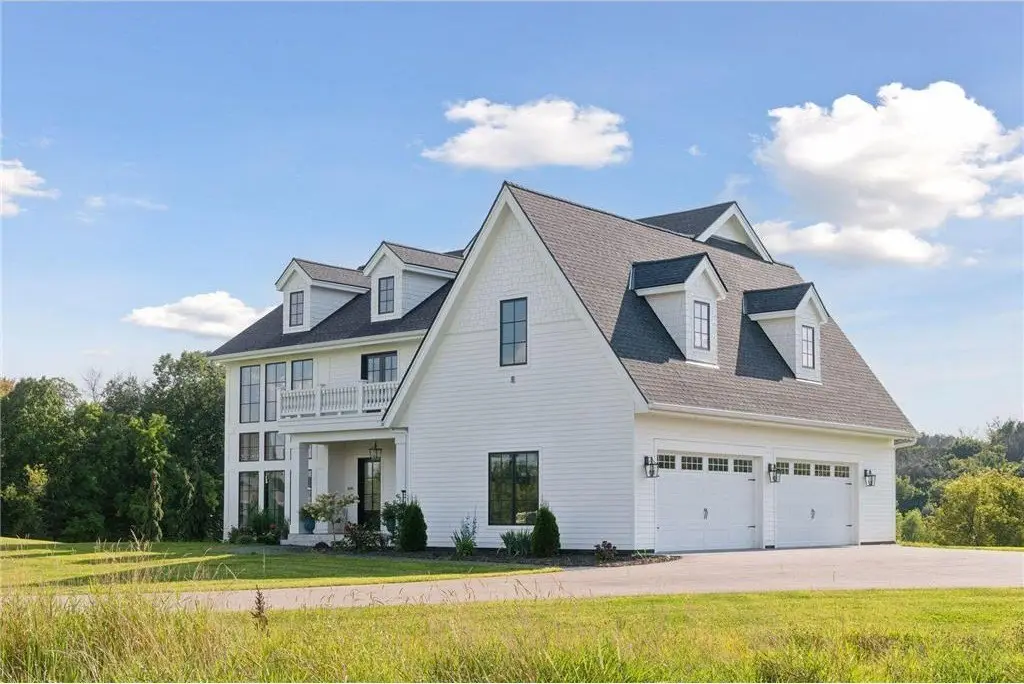 This custom-built home is a traditional style home with modern features. Custom arched wood casings are found throughout the home. Kitchen features a six-burner range with a large hood, pot filler, and two ovens. A large refrigerator and freezer and center island with seating. The support kitchen is equipped with a microwave/convection oven combo, additional dishwasher, sink, beverage refrigerator and coffee bar. A walk-in pantry sits conveniently between the 2 kitchens. Off the kitchen is a dining area, mudroom, and powder room. The living room boosts a spectacular view, a gas fireplace with a custom-built mantel, niches, and a grand Victorian staircase that takes you to the upper floor. The owner's suite includes double sinks, tub, walk in shower with 3 shower heads and one wand, private toilet area with bidet. Large walk-through closet. Three more bedrooms, one with a balcony that could be used as an office/studio. Additional full bathroom. Upper-level laundry room with sink. Very large hidden room behind the bookcase at the end of the grand hallway. Garage has four oversized stalls with two large linear floor drains, has a large workspace for your outside hobby storage, plumbed for dog wash station, includes EV Station. Basement is unfinished. Has walk-out double doors and plumbed for a bathroom. Property is situated on just under 7 acres. Boasts an unmatchable view that looks over grassland, woods, and a marsh.