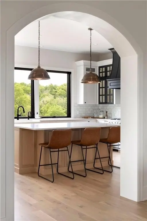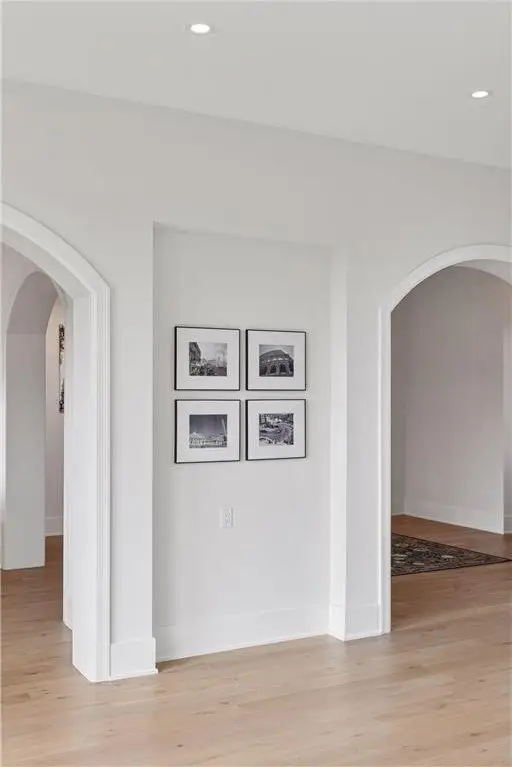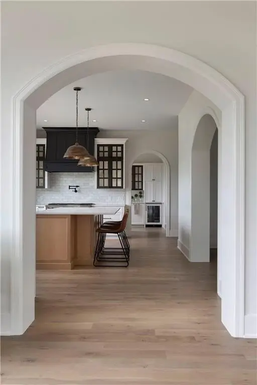 Custom arched wood casings throughout