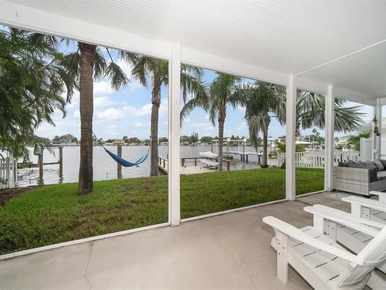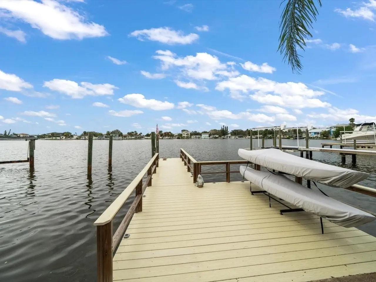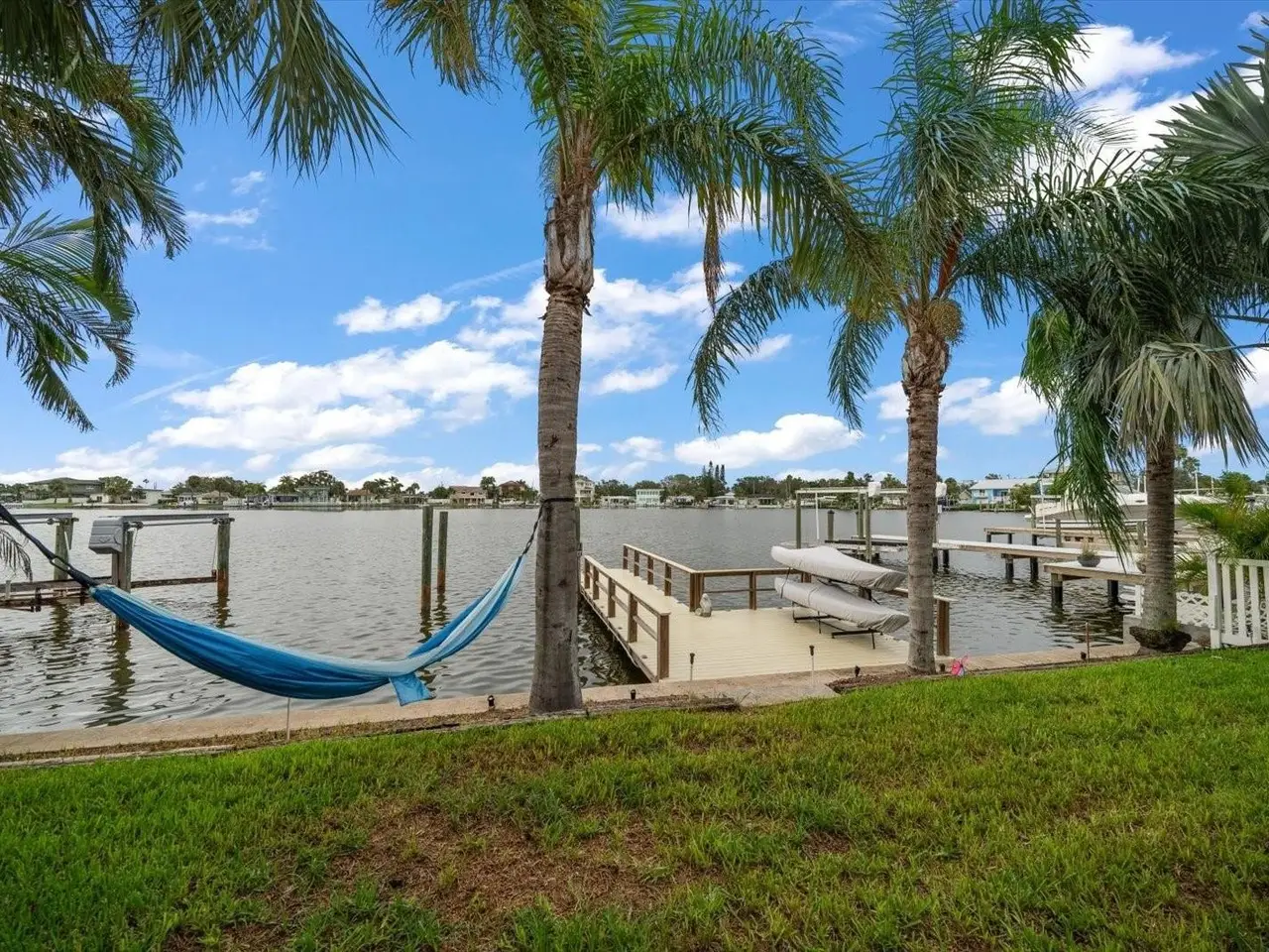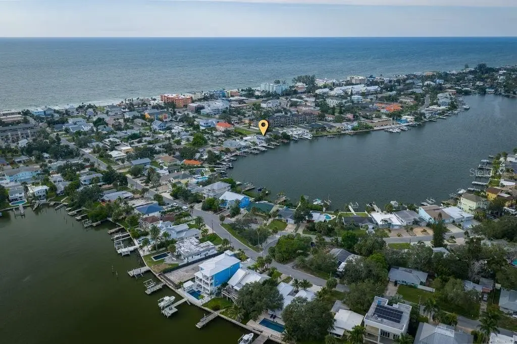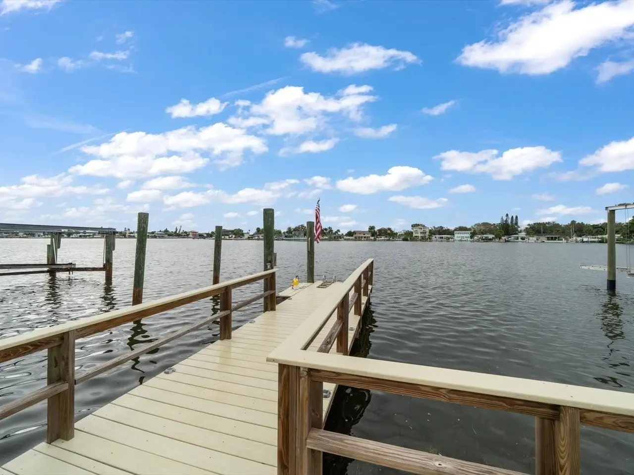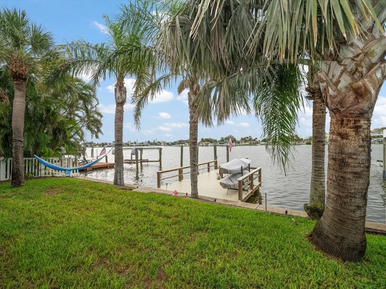 Beautifully remodeled and COMPLETELY furnished beach home located on a lovely protected cove offering wide water views from multiple areas. This is truly a beach charmer! Perfect location in the popular city of Indian Rocks Beach, known for its small-town atmosphere and pedestrian friendly environs, the spacious and open layout features two bedrooms, two full baths and additional living areas designed for easy carefree living! Exquisite kitchen! Chef’s will love this newer kitchen with neutral finishes, gleaming quartz counters, stainless appliances, large pantry and lots of cabinetry. Gathering with family or friends in the spacious dining area will create memories to last a life time with its captivating views. Appreciate the private dock area for fishing, launching your kayak or jumping on your paddle board, this charming beach property is also a fantastic investment with its sought-after community location that allows for short-term rentals, and its easy 2 minute walk to gorgeous beaches. This is not only a wonderful primary home but an ideal vacation retreat that can generate income thereby offsetting expenses where all the work is done! State of the art Nano folding doors, gorgeous ceramic tile flooring, beautifully remodeled kitchen, baths and impressive furnishing. Additional attributes include tankless hot water, oversized one car garage with laundry area and EV charger, plenty of additional parking for up to 6 vehicles in the low maintenance attractive driveway finished with pavers, and a completely fenced yard.