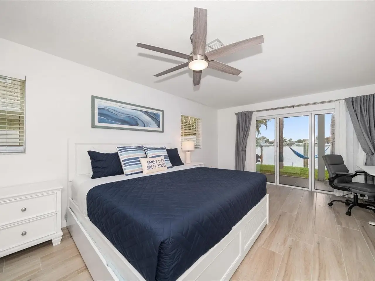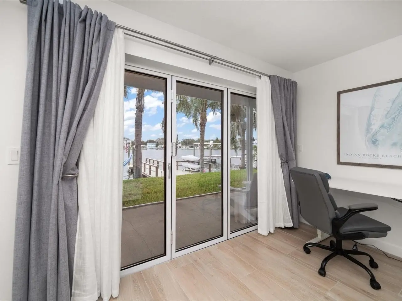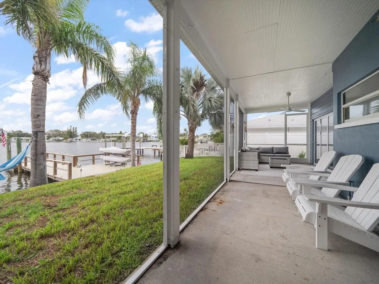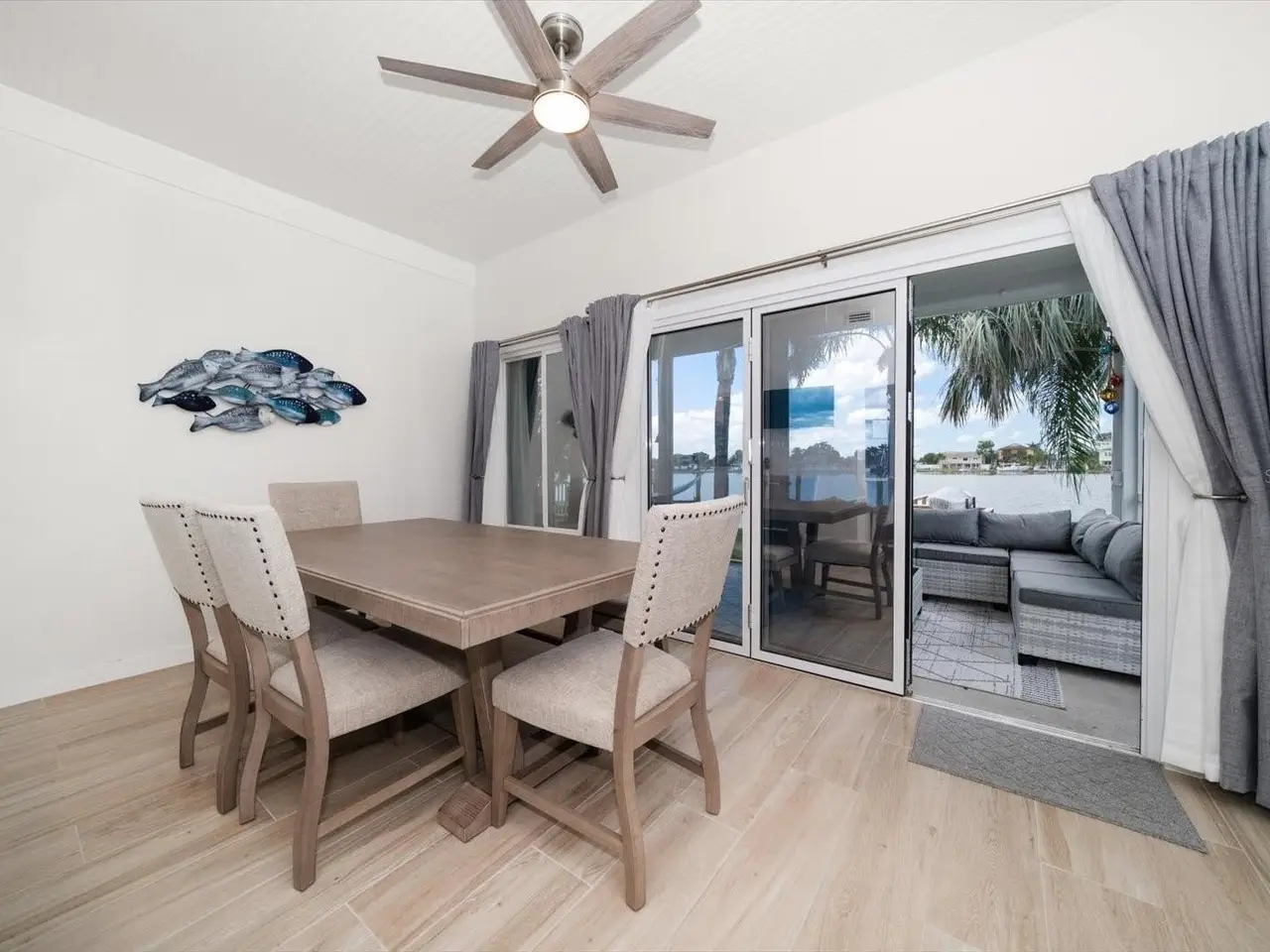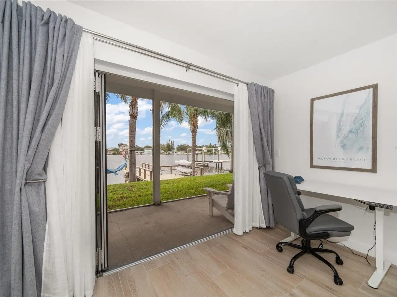 Beautifully remodeled and COMPLETELY furnished beach home located on a lovely protected cove offering wide water views from multiple areas. This is truly a beach charmer! Perfect location in the popular city of Indian Rocks Beach, known for its small-town atmosphere and pedestrian friendly environs, the spacious and open layout features two bedrooms, two full baths and additional living areas designed for easy carefree living! Exquisite kitchen! Chef’s will love this newer kitchen with neutral finishes, gleaming quartz counters, stainless appliances, large pantry and lots of cabinetry. Gathering with family or friends in the spacious dining area will create memories to last a life time with its captivating views. Appreciate the private dock area for fishing, launching your kayak or jumping on your paddle board, this charming beach property is also a fantastic investment with its sought-after community location that allows for short-term rentals, and its easy 2 minute walk to gorgeous beaches. This is not only a wonderful primary home but an ideal vacation retreat that can generate income thereby offsetting expenses where all the work is done! State of the art Nano folding doors, gorgeous ceramic tile flooring, beautifully remodeled kitchen, baths and impressive furnishing. Additional attributes include tankless hot water, oversized one car garage with laundry area and EV charger, plenty of additional parking for up to 6 vehicles in the low maintenance attractive driveway finished with pavers, and a completely fenced yard.