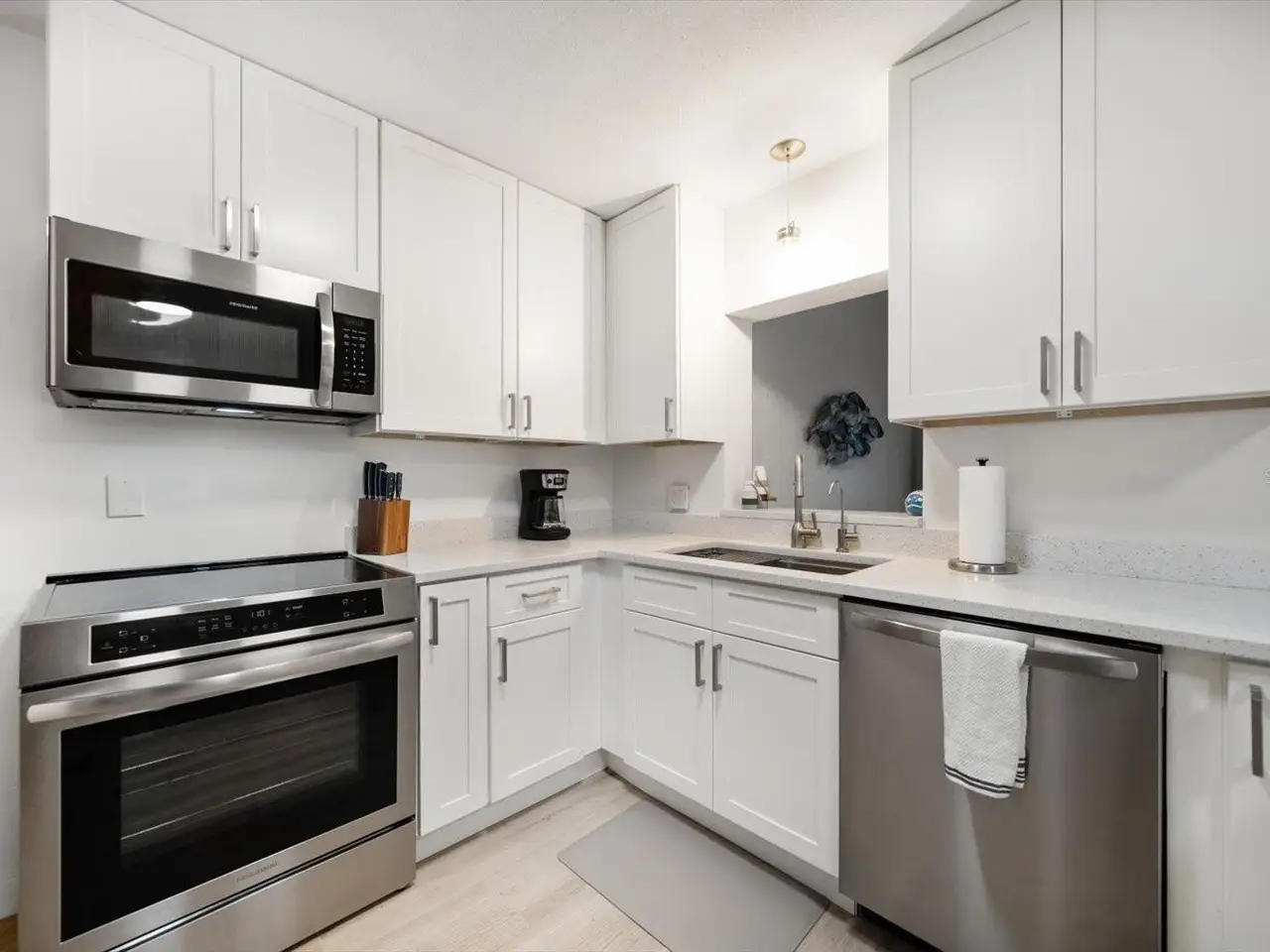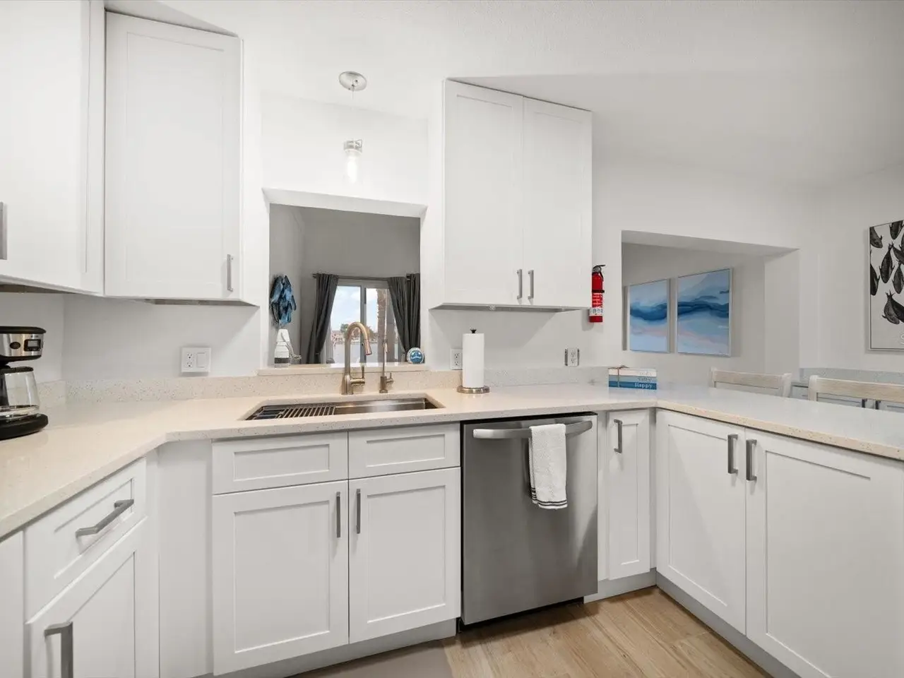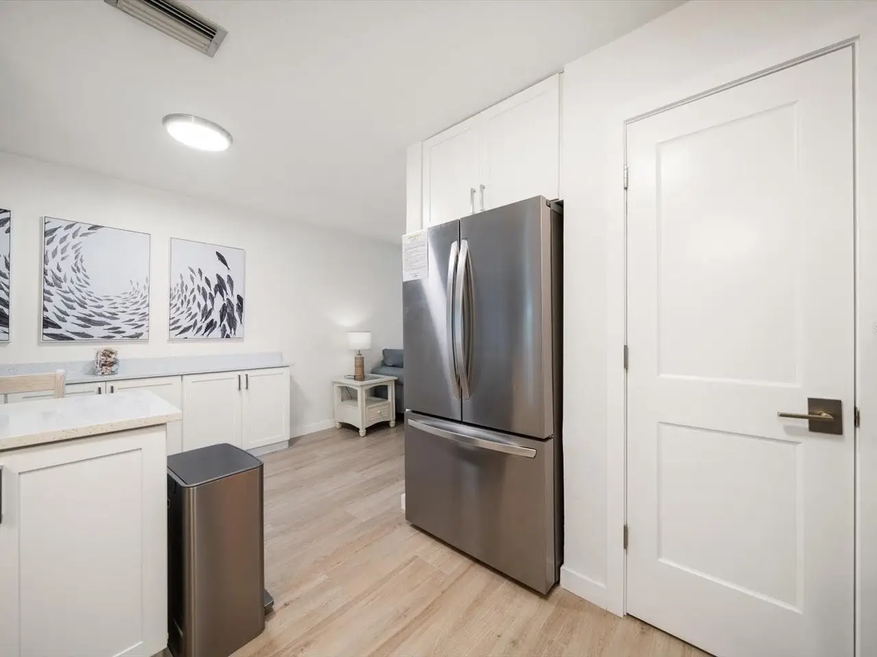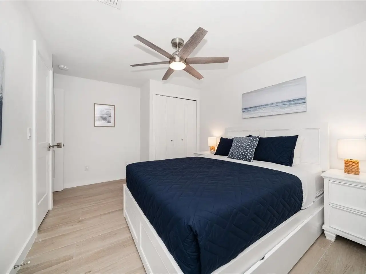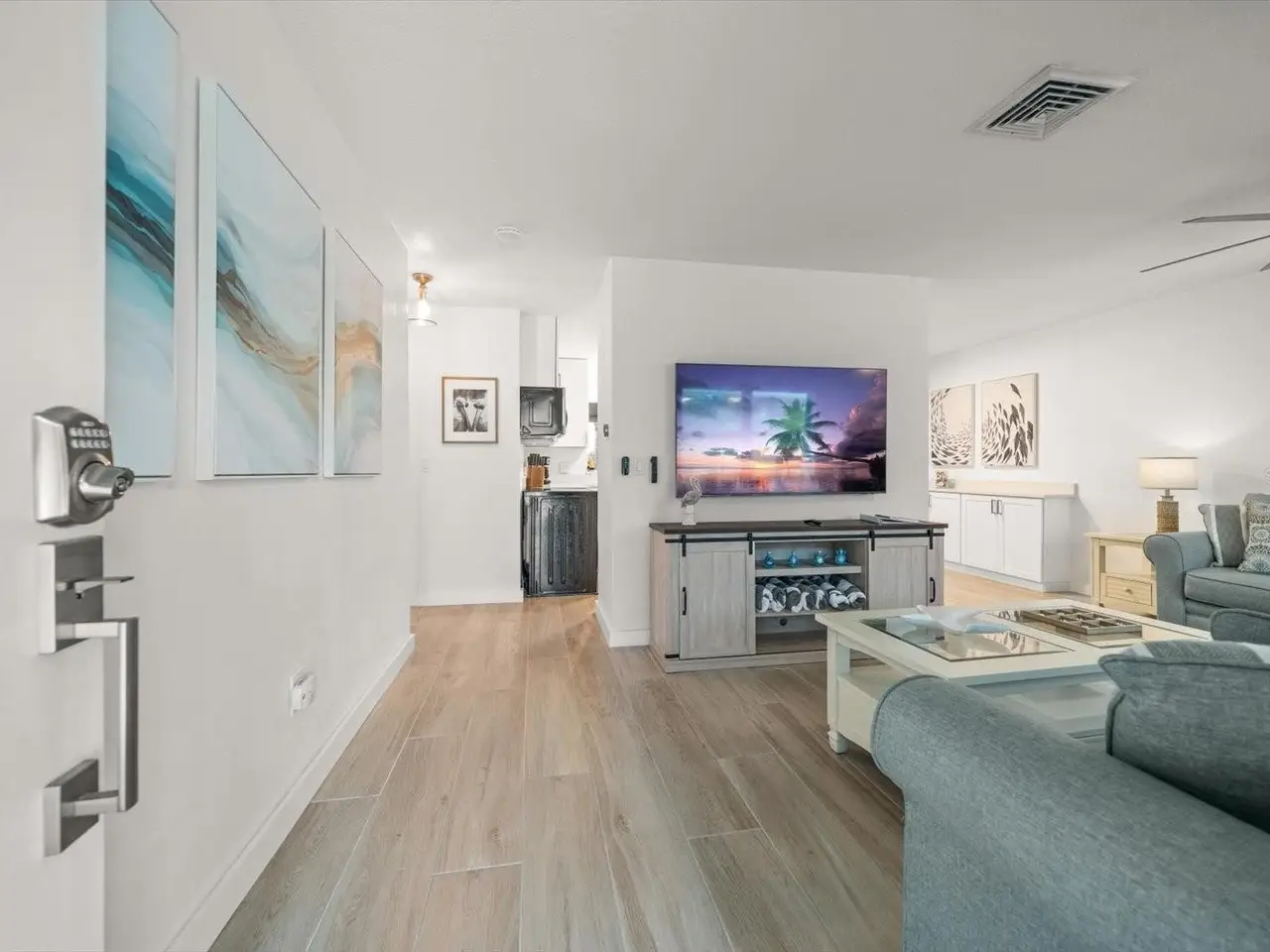 Beautifully remodeled and COMPLETELY furnished beach home located on a lovely protected cove offering wide water views from multiple areas. This is truly a beach charmer! Perfect location in the popular city of Indian Rocks Beach, known for its small-town atmosphere and pedestrian friendly environs, the spacious and open layout features two bedrooms, two full baths and additional living areas designed for easy carefree living! Exquisite kitchen! Chef’s will love this newer kitchen with neutral finishes, gleaming quartz counters, stainless appliances, large pantry and lots of cabinetry. Gathering with family or friends in the spacious dining area will create memories to last a life time with its captivating views. Appreciate the private dock area for fishing, launching your kayak or jumping on your paddle board, this charming beach property is also a fantastic investment with its sought-after community location that allows for short-term rentals, and its easy 2 minute walk to gorgeous beaches. This is not only a wonderful primary home but an ideal vacation retreat that can generate income thereby offsetting expenses where all the work is done! State of the art Nano folding doors, gorgeous ceramic tile flooring, beautifully remodeled kitchen, baths and impressive furnishing. Additional attributes include tankless hot water, oversized one car garage with laundry area and EV charger, plenty of additional parking for up to 6 vehicles in the low maintenance attractive driveway finished with pavers, and a completely fenced yard.