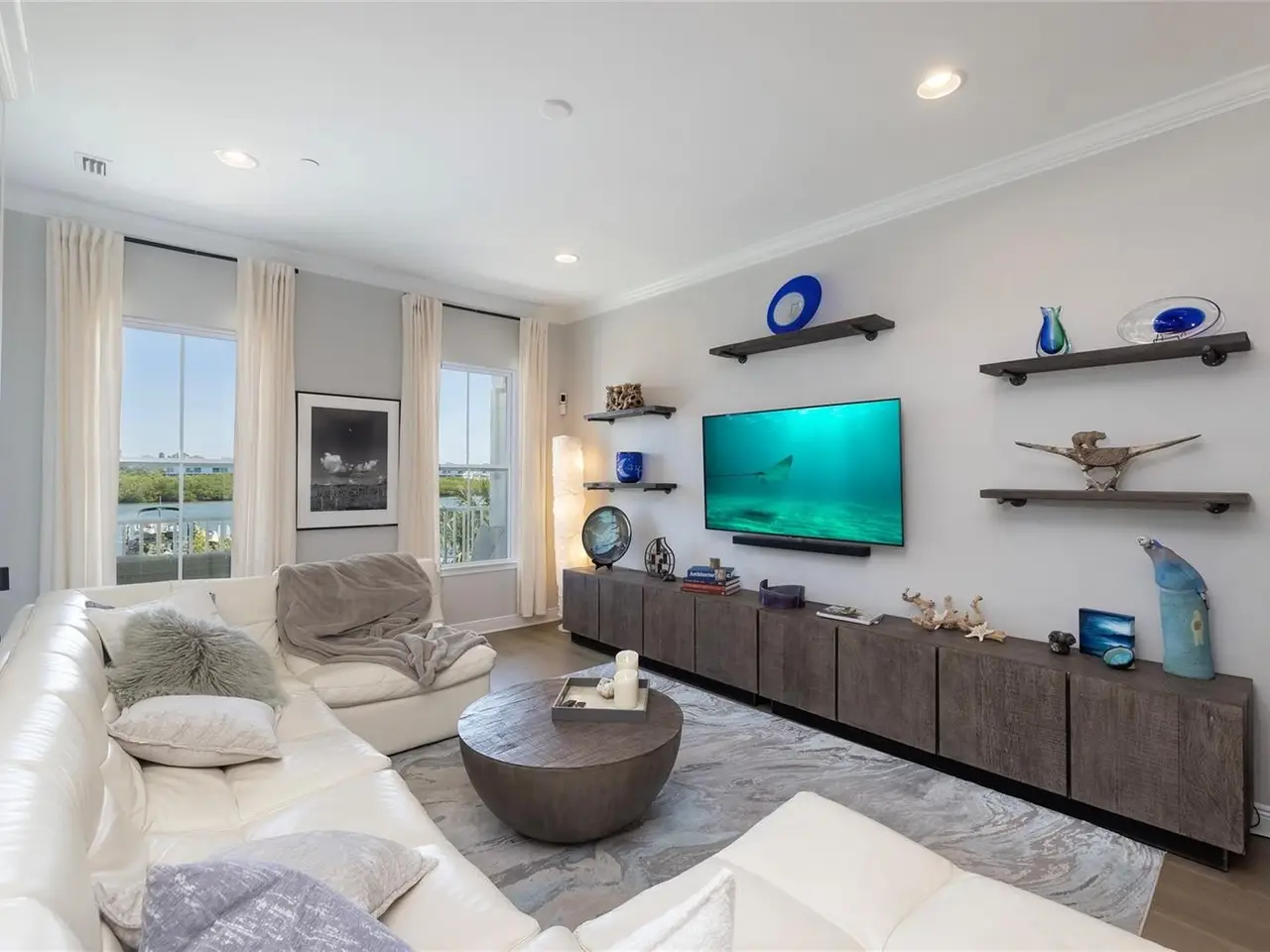 Your dream come true awaits!! Located steps from the sand, this stunning home offers shimmering water views as soon as you walk to the front door. The bright and beautiful living area welcomes you into the home, featuring crown moulding and high ceilings. The spacious kitchen overlooks the living and dining rooms, providing ample space for large gatherings. It is the heart of the second story, boasting a Sub-Zero Refrigerator, and premium Wolf range, oven, and microwave. This "social" level also includes a separate half-bathroom designated for guests. An extended kitchen with custom cabinetry and high-end fixtures, including a sink “hot shot” which offers instant boiling water, has all the extra storage that we always wish we had! Gorgeous views pour in from the balconies on each floor, all providing un-obscured views up and down the Intracoastal Waterways. Moving upstairs, you'll find the primary bedroom and its large, en-suite primary bathroom. There are two generous walk-in closets — one is currently being used as an office space, stretching 7 ft by 5 ft. The other walk-in closet is even larger, 8.5 ft by 4.5 ft! The primary bathroom features dual-sinks and an oversized shower. The third-level balcony is accessed from the primary bedroom, providing the promise of natural light to pour in each day. Down the hall, you'll find the second bedroom, also with its own en-suite bathroom. There are built-in shelves that provide an abundance of storage for books, games, knick-knacks, whatever your heart desires! The closets in both bedrooms also offer custom built-in shelving and drawers. A large hallway linen closet and the tidy laundry room are in the perfect location on the third floor to make the task of laundry as simple as can be! One more level up, you'll find the third bedroom — or office, library, workout room, you name it! This room can be used in so many ways! Need an in-home office that feels separate from home? Save your work for the upstairs level and leave it behind when you go downstairs! Need a quiet retreat to gather your thoughts? This level houses the most private balcony in the entire home. With expansive space and its own en-suite bathroom, you can transform this level into whatever you need it to be! There are luxury hardwood floors throughout, wood-look ceramic tile in the bathrooms and laundry room, as well as tastefully painted hardwood staircases. The newly-painted large garage is big enough to comfortably house three vehicles, while still leaving plenty of room for storage. A brand-new water-softener and whole-house filtration system was just installed. There are 2 years left on the HVAC warranty, and the unit just had a new coil installed. Every floor is accessible from a built-in elevator, so mobility is never an issue. With breath-taking, 180-degree views of the Intracoastal Waterways, the opportunity to purchase a private boat slip, and a walk across the street to the sugar sand beaches of the idyllic Indian Shores community, this home offers what Florida-living is all about!